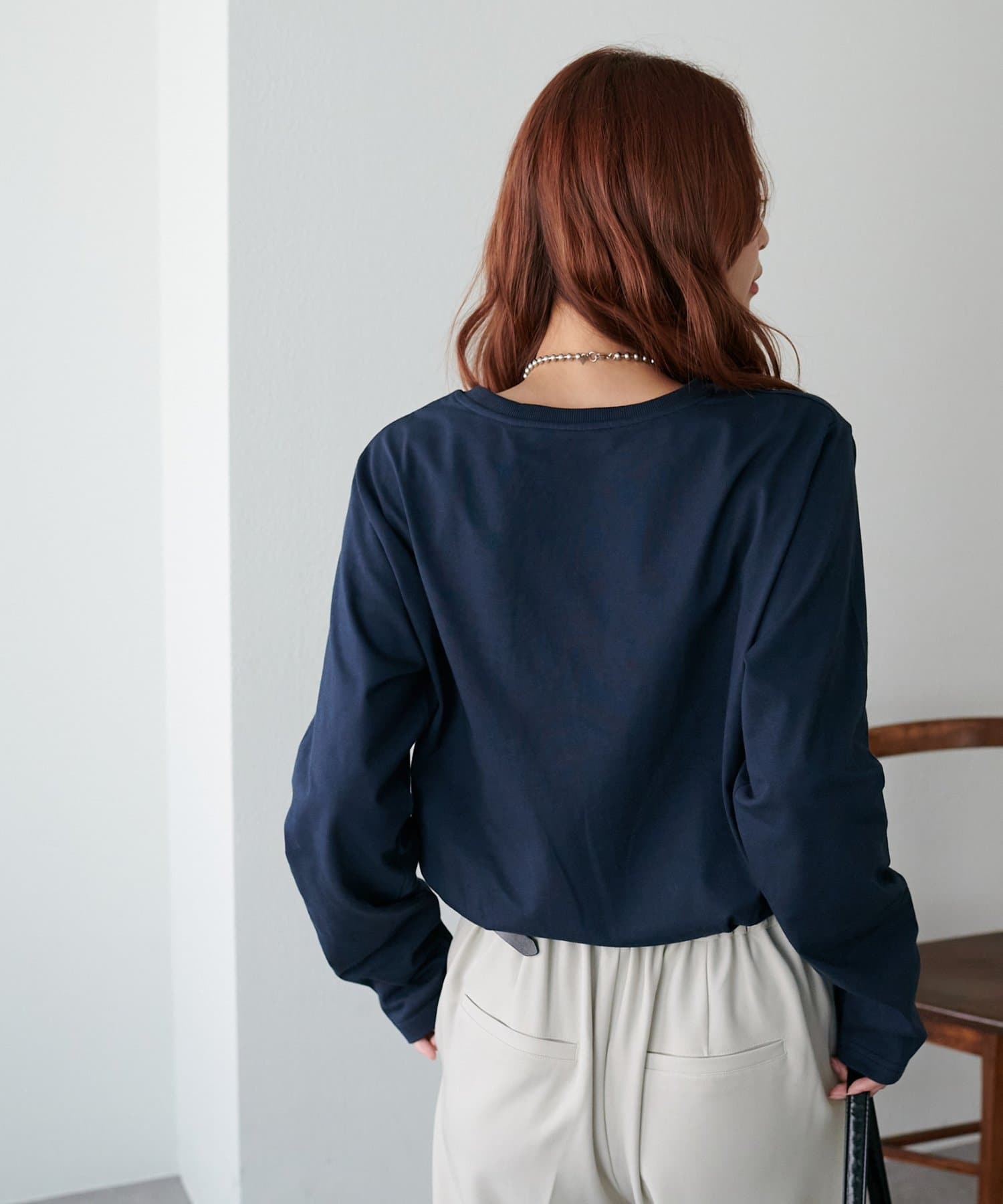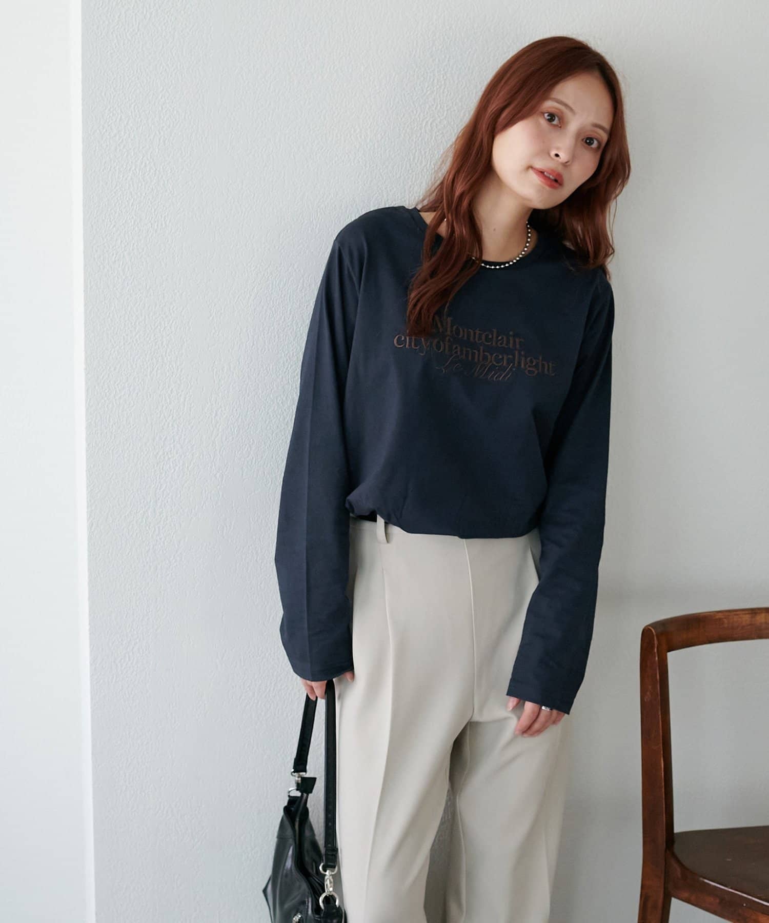 シンプルなロンTながら、胸元に施された存在感のあるロゴ刺繍がアイキャッチになり、コーディネートに洒落感をプラスする一枚です。