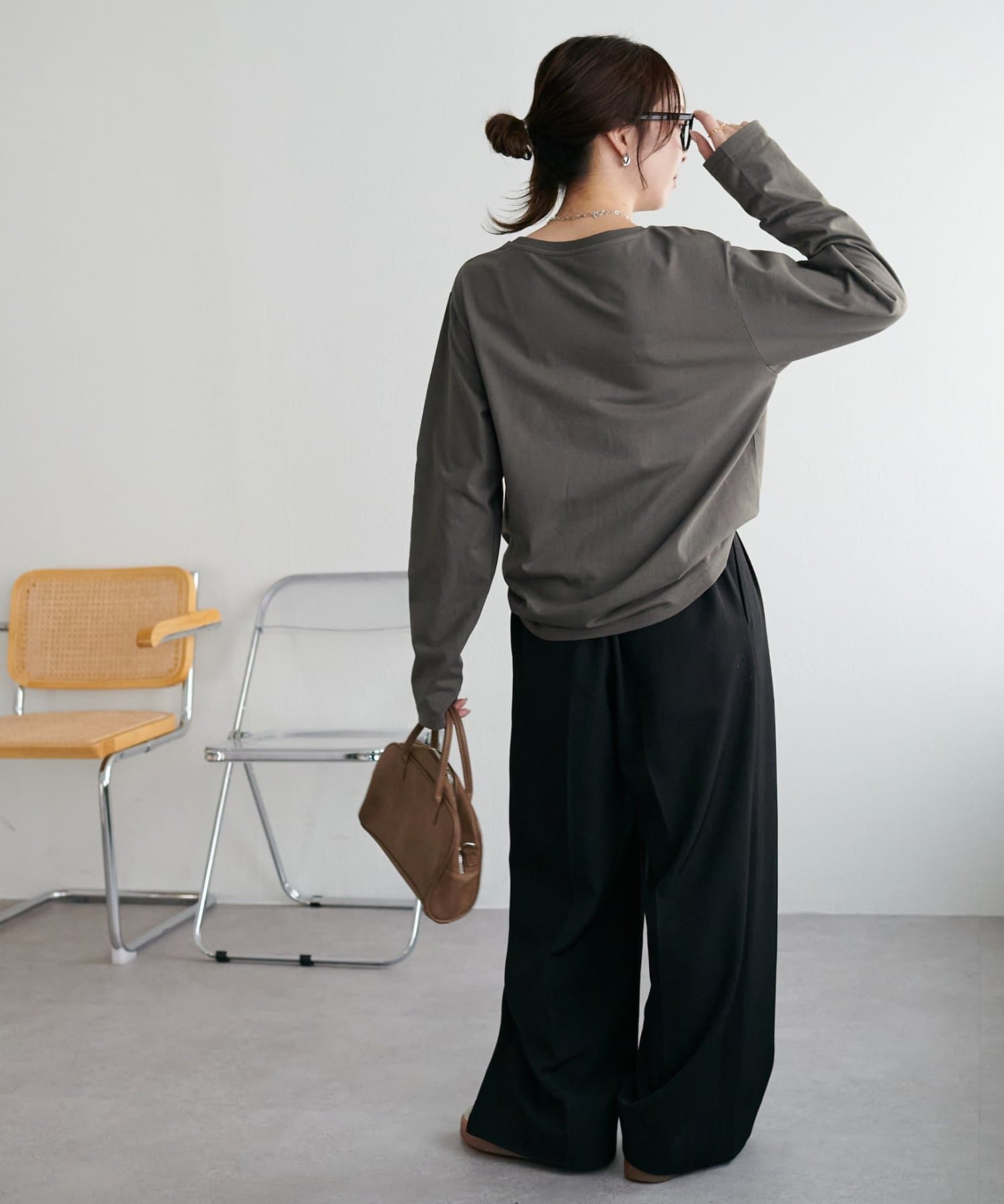 デニムやチノパンと合わせてカジュアルにまとめるのはもちろん、スラックスやナロースカートに合わせればきれいめに仕上がります。ジャケットやカーディガンのインナーとしても相性抜群です◎