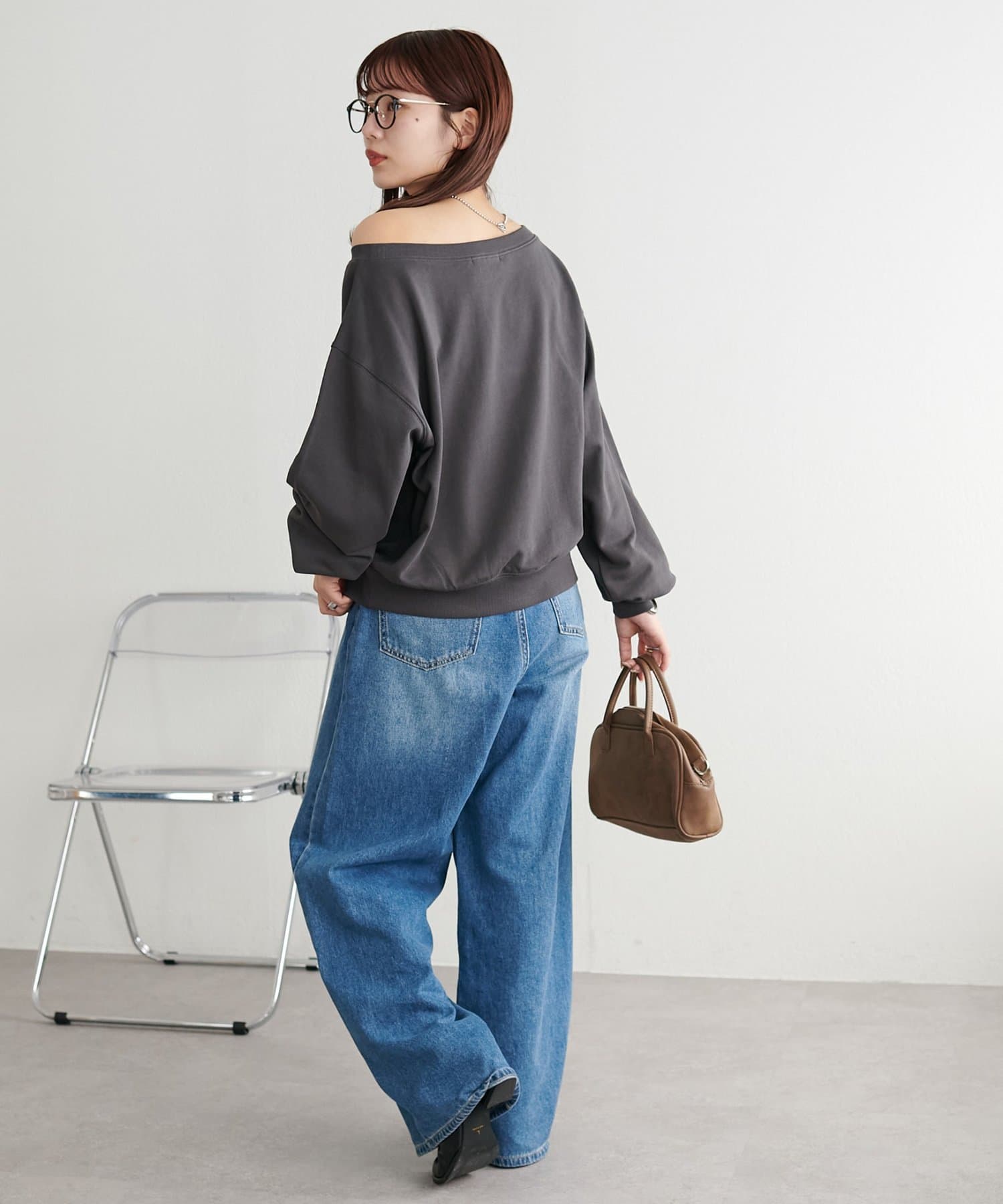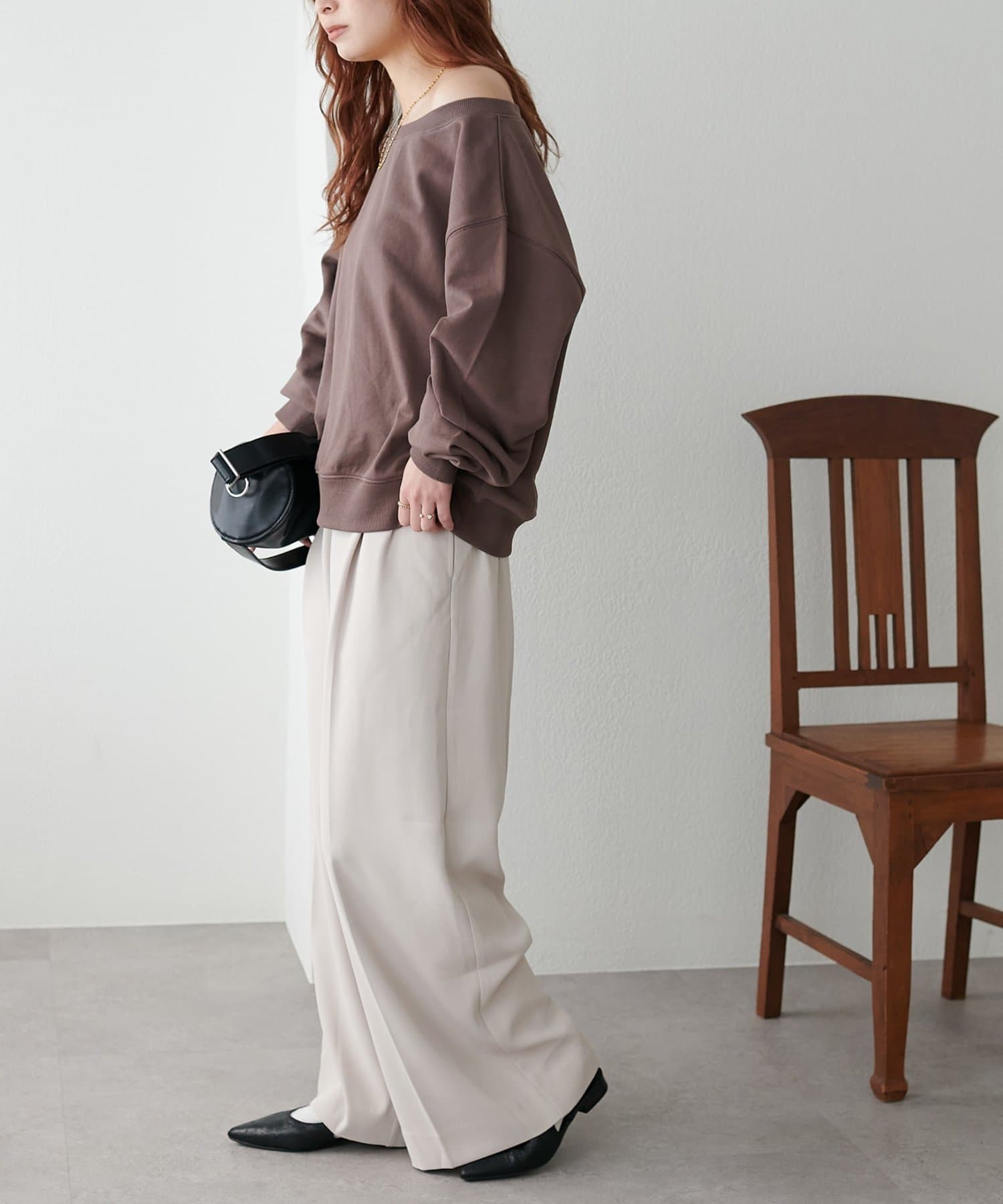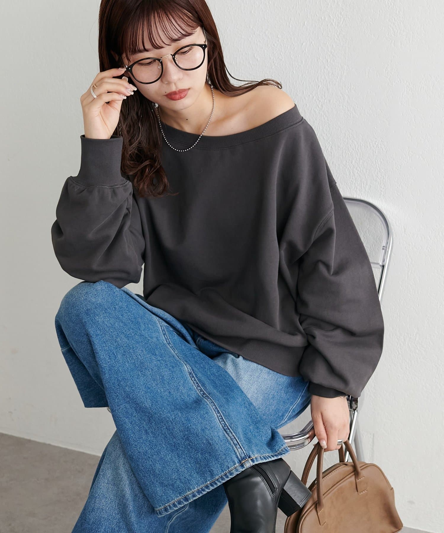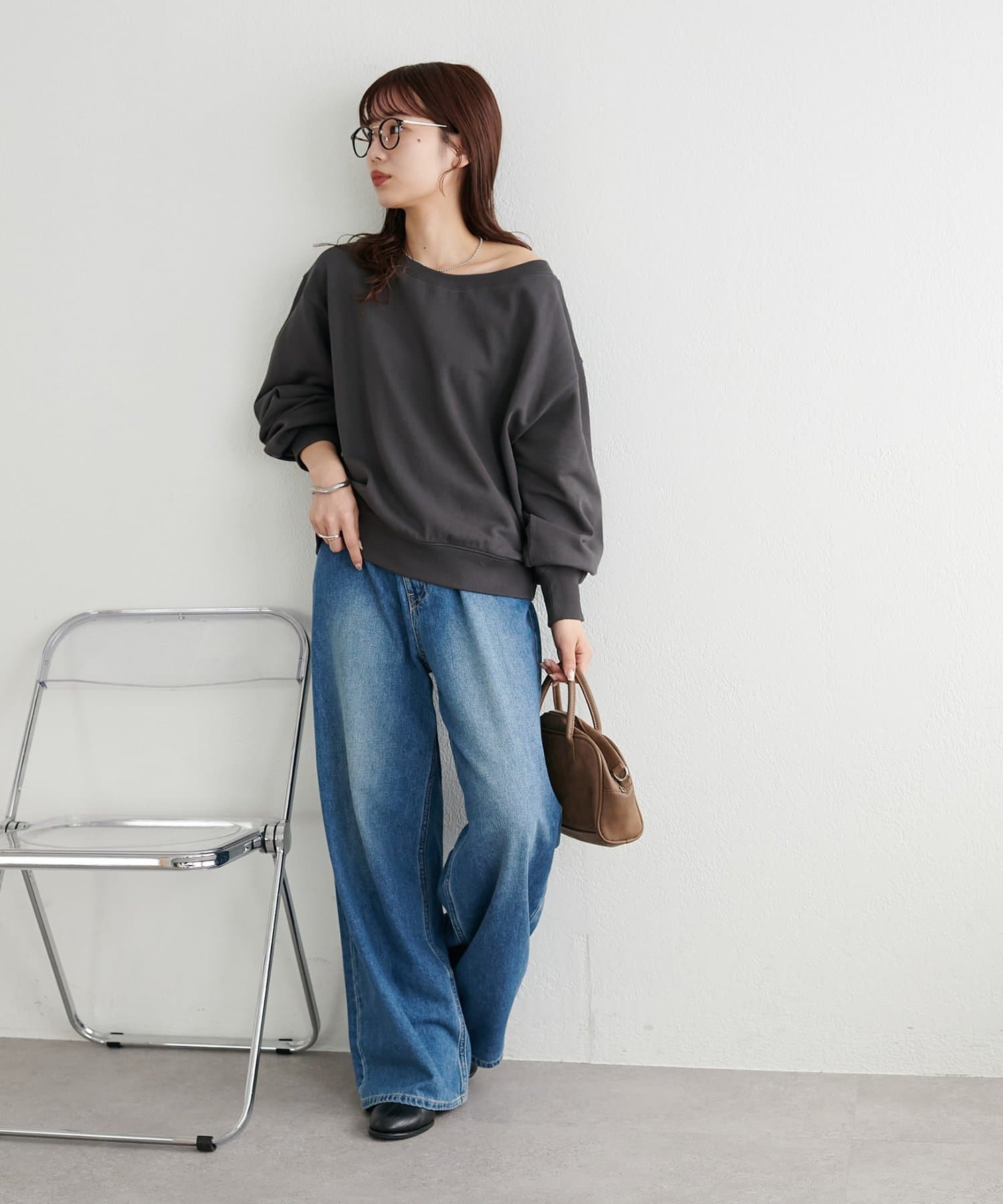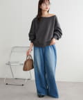 自然な肌見せが叶い、大人カジュアルに着こなせるスウェット。
