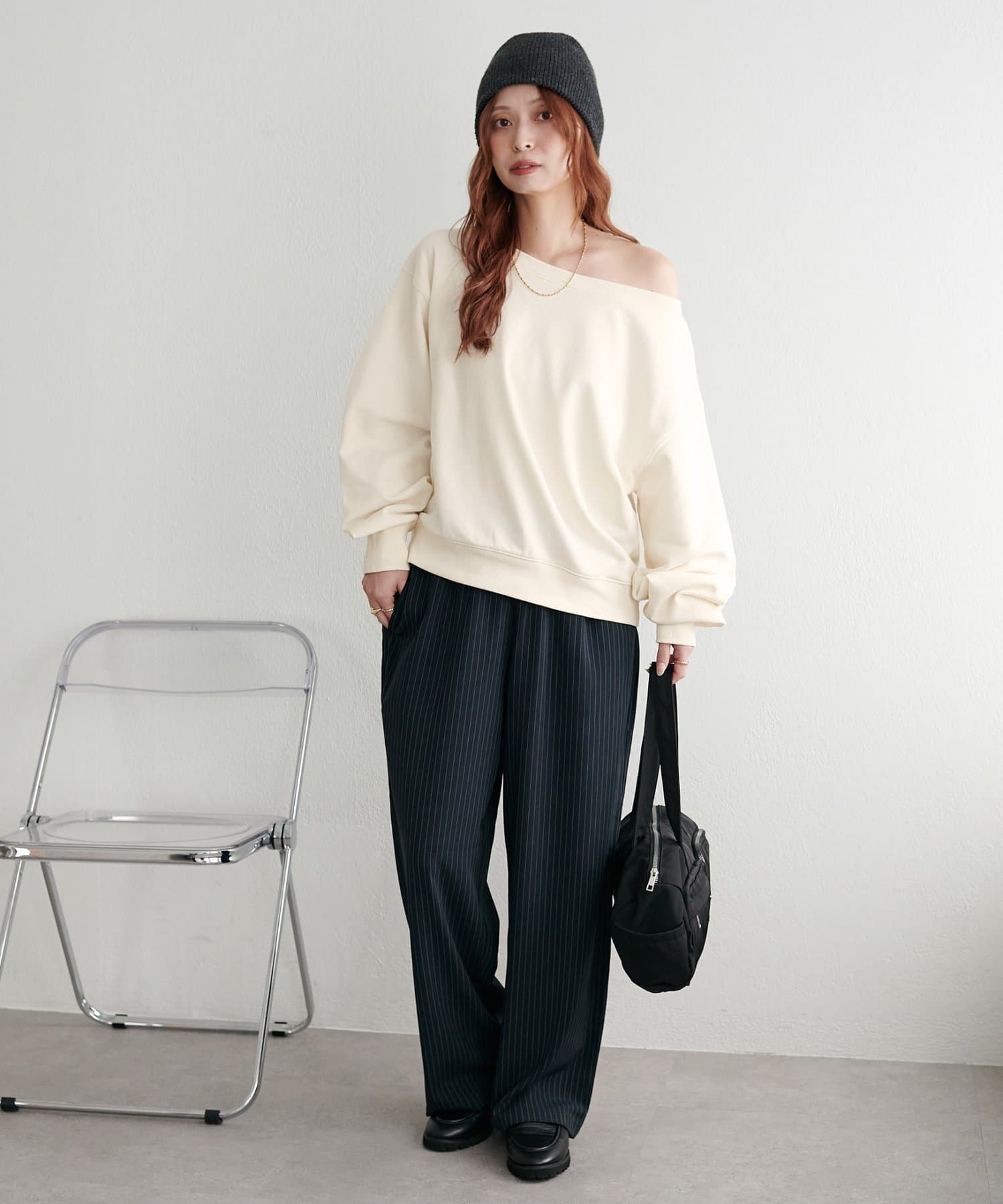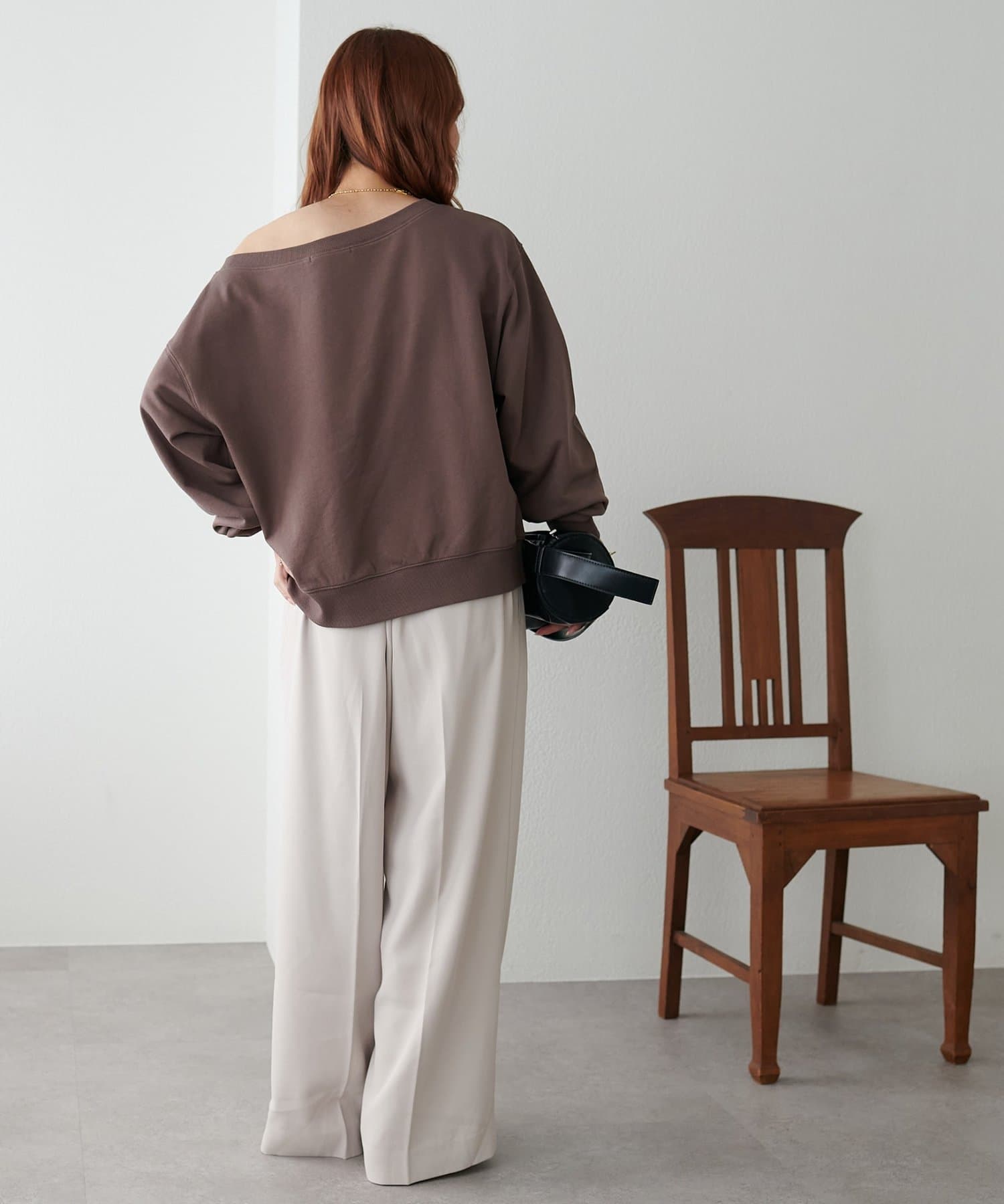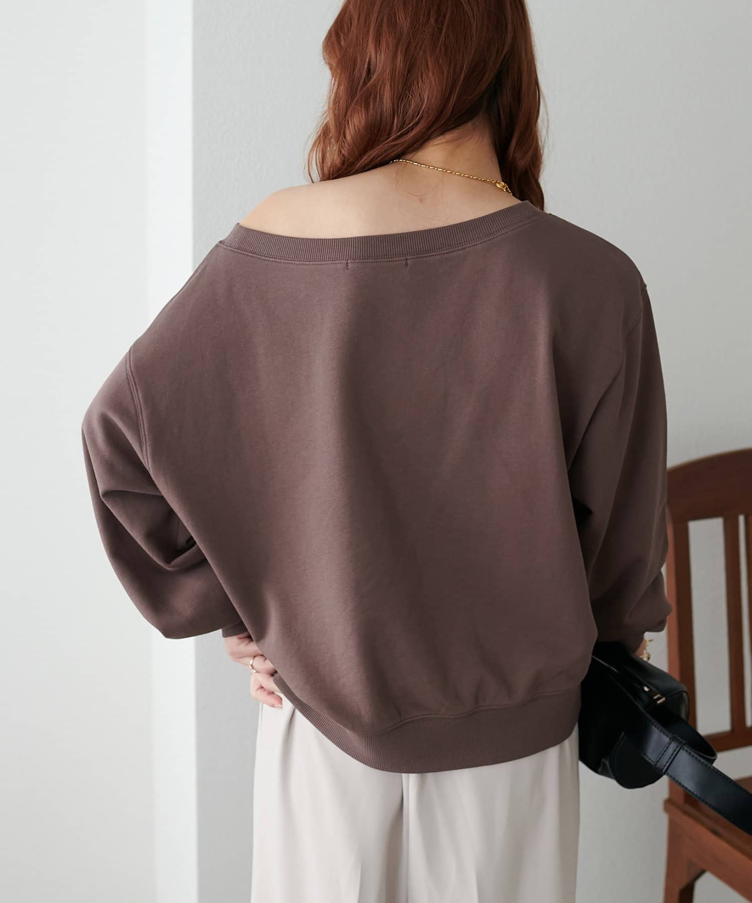 自然な肌見せが叶い、大人カジュアルに着こなせるスウェット。