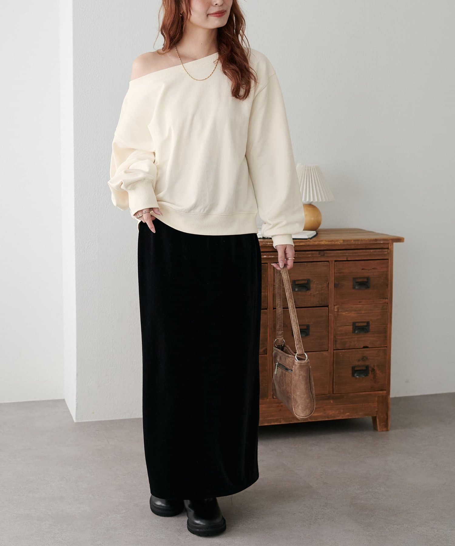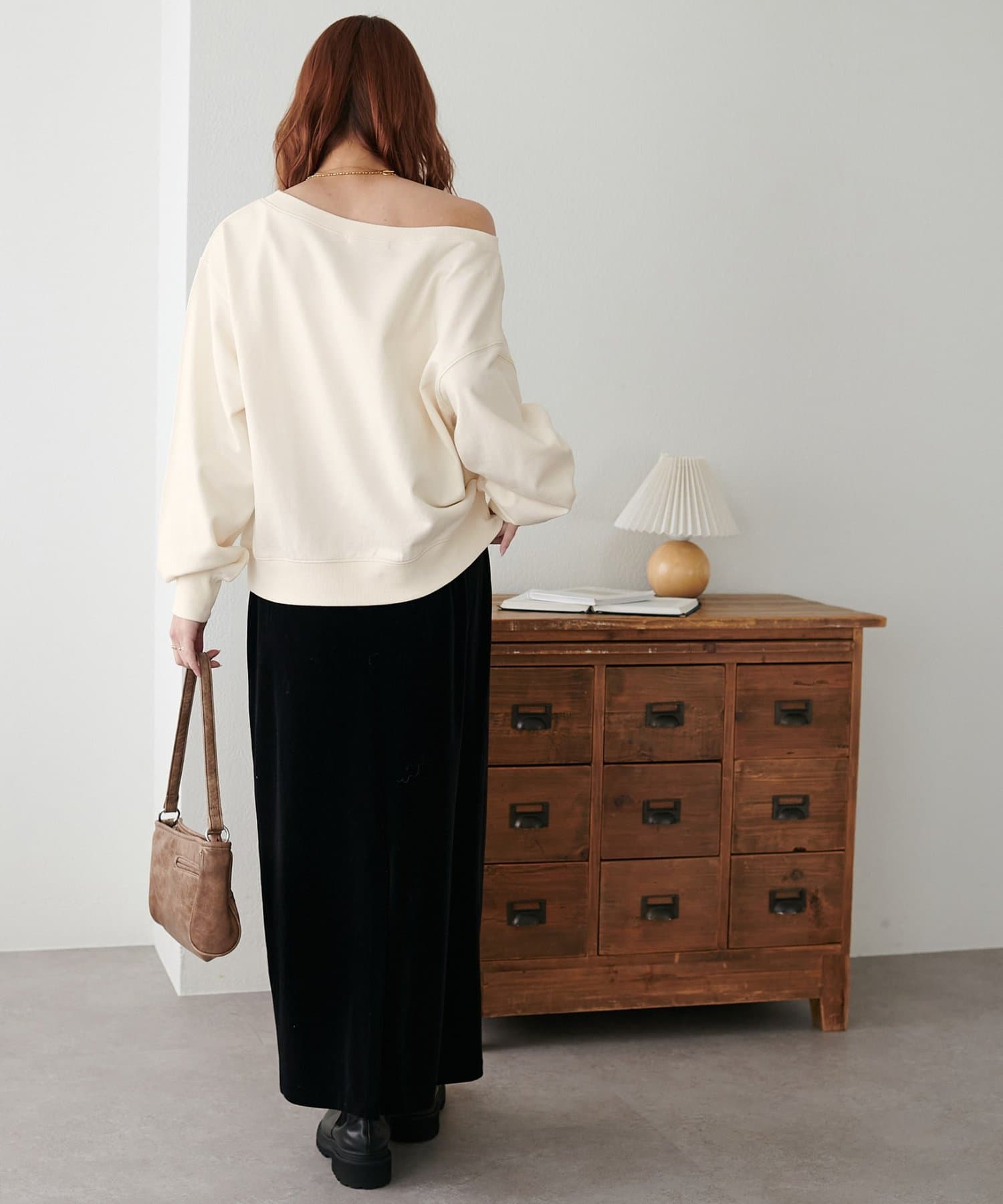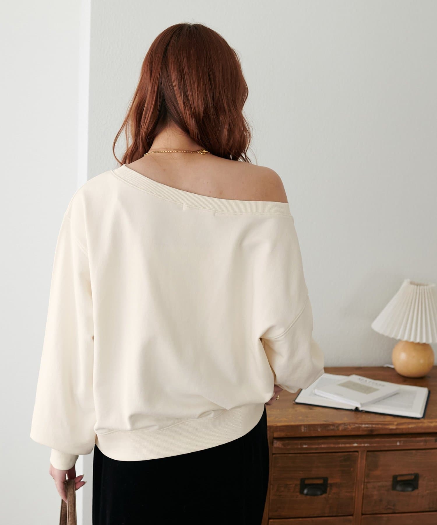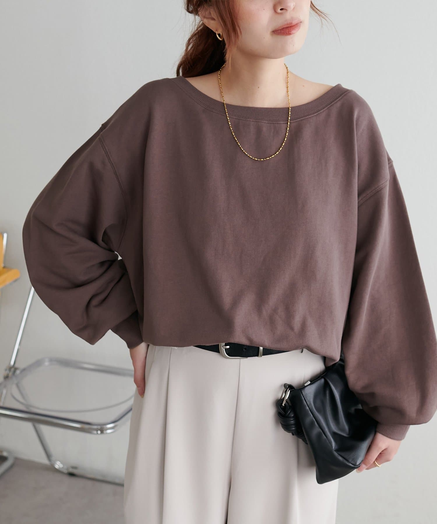 自然な肌見せが叶い、大人カジュアルに着こなせるスウェット。
