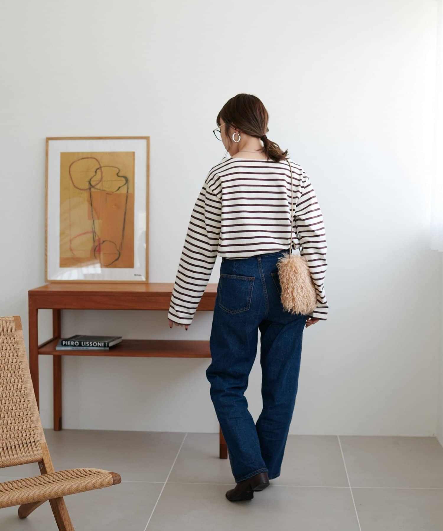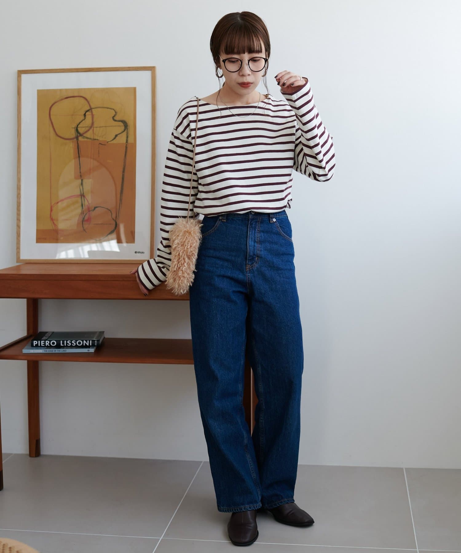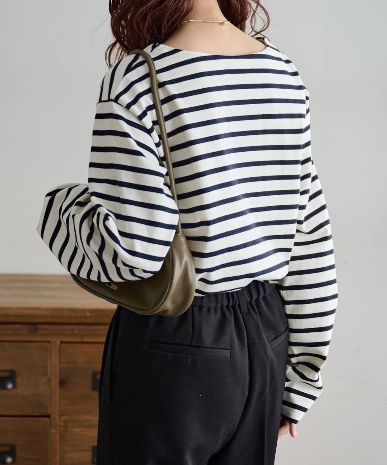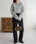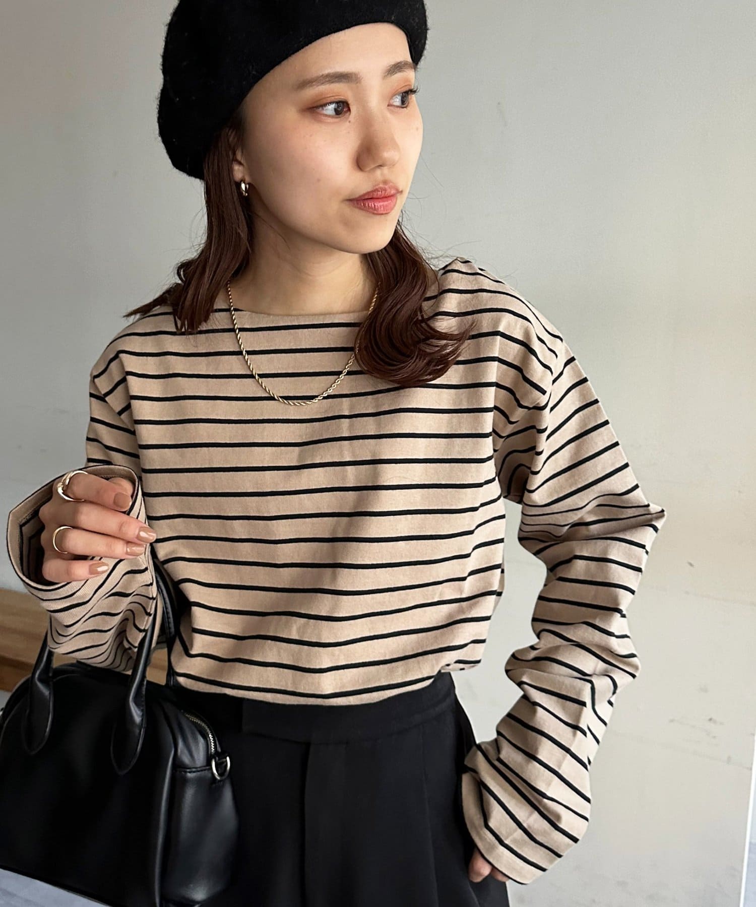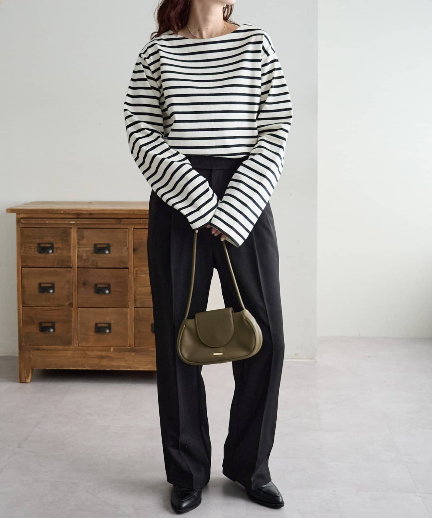 155cmスタッフ:ついつい毎年買ってしまうボーダートップス!今年はスッキリしたサイズ感と、首元のボートネックデザインが大人っぽく着られます!