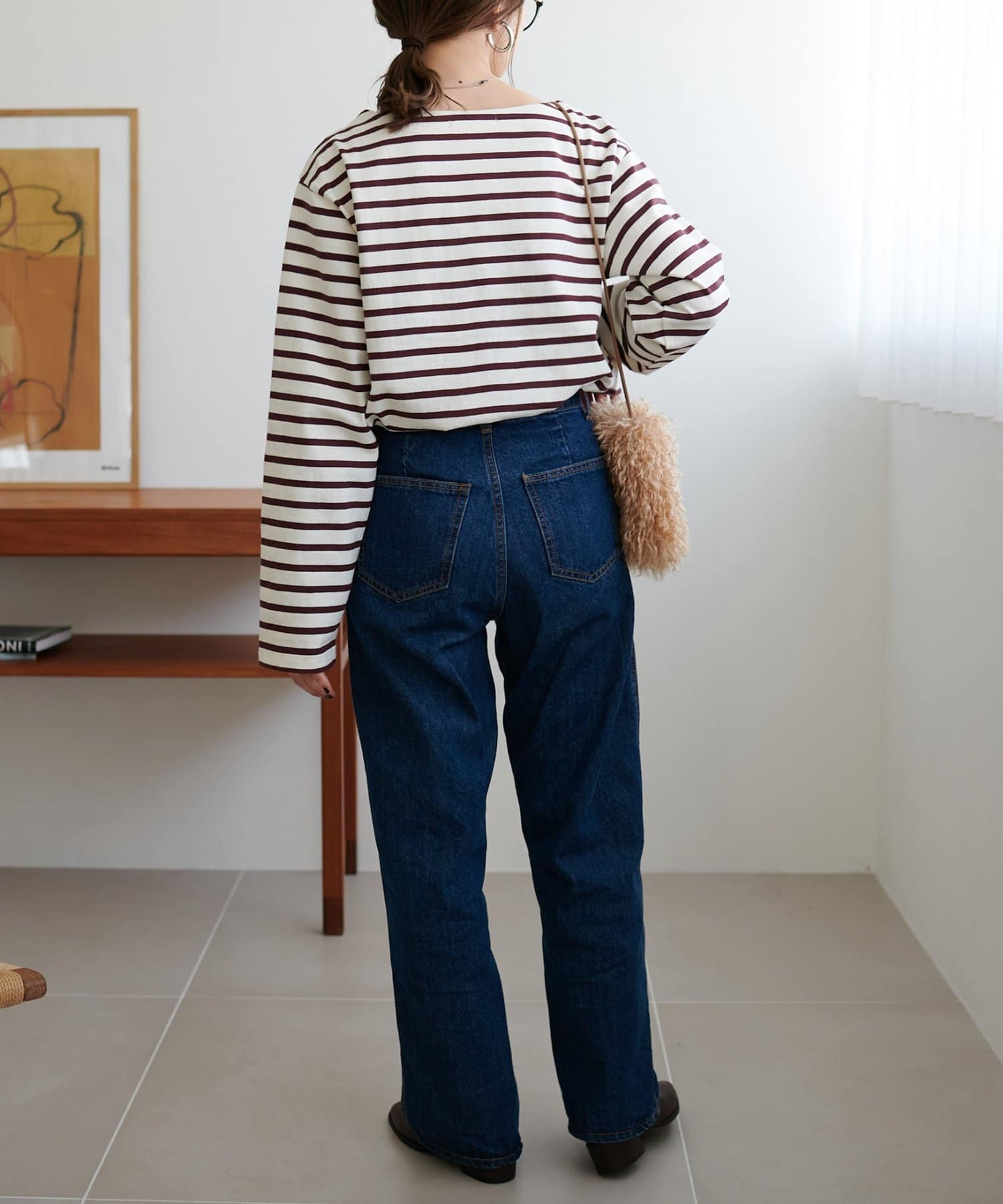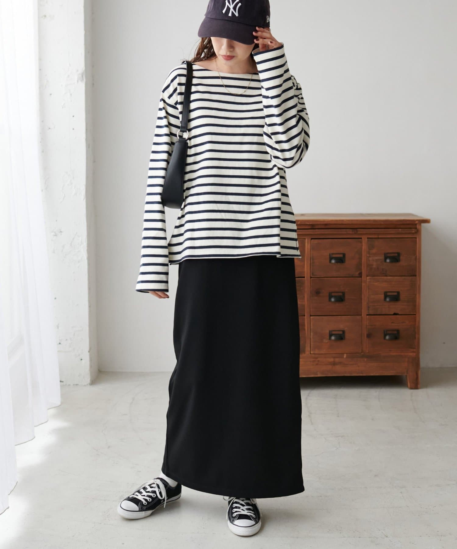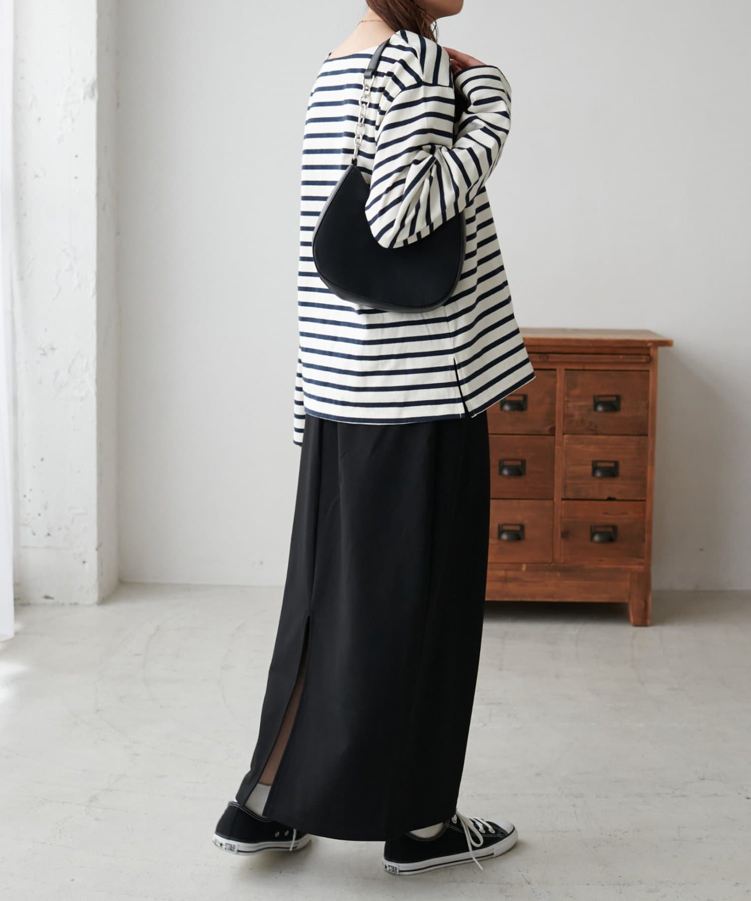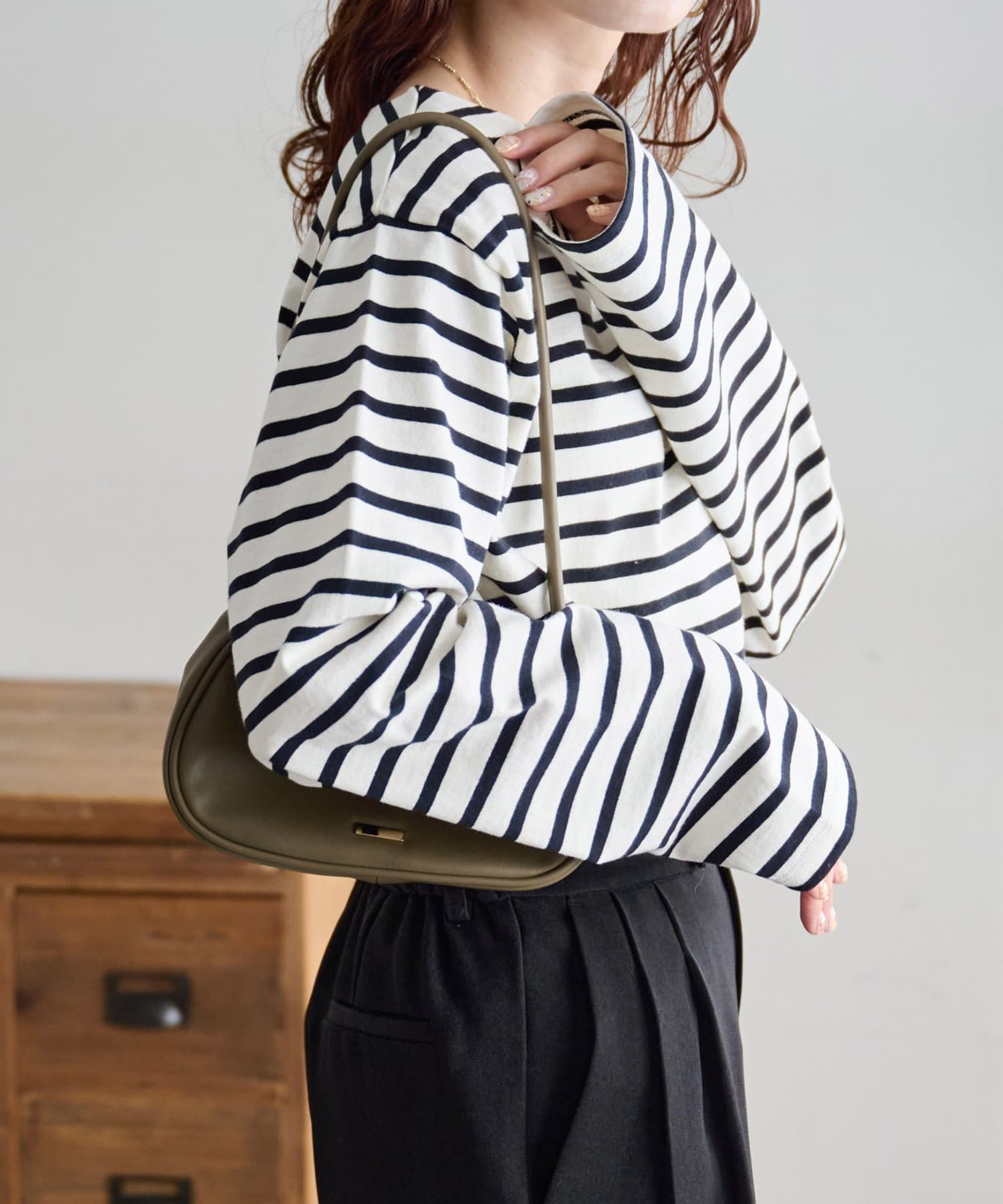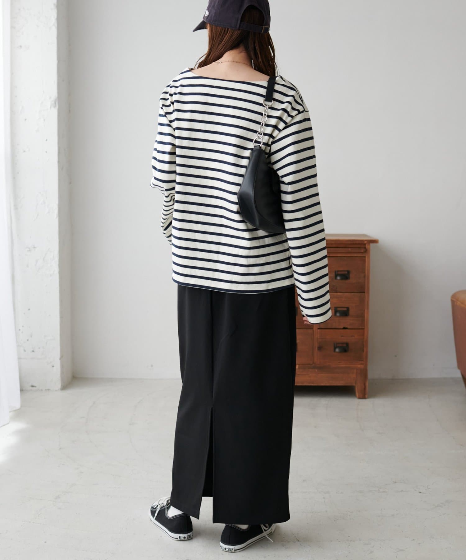 155cmスタッフ:ついつい毎年買ってしまうボーダートップス!今年はスッキリしたサイズ感と、首元のボートネックデザインが大人っぽく着られます!