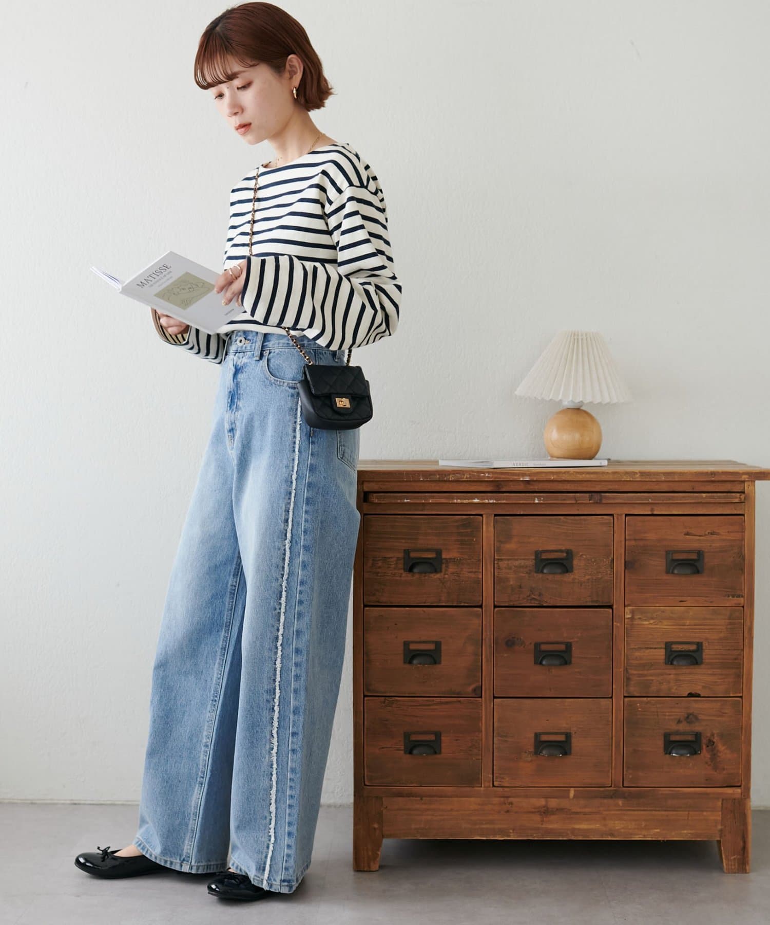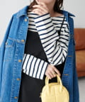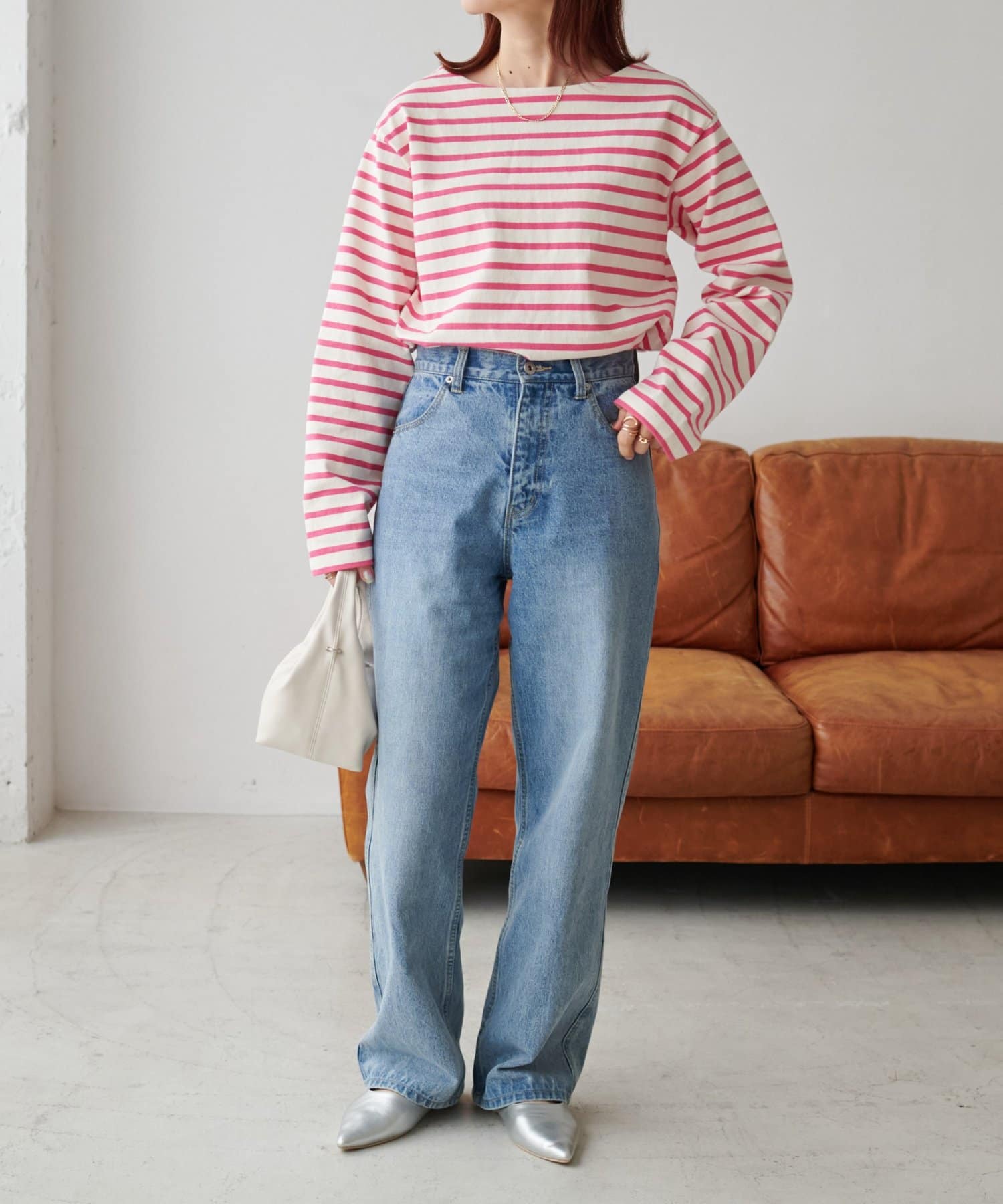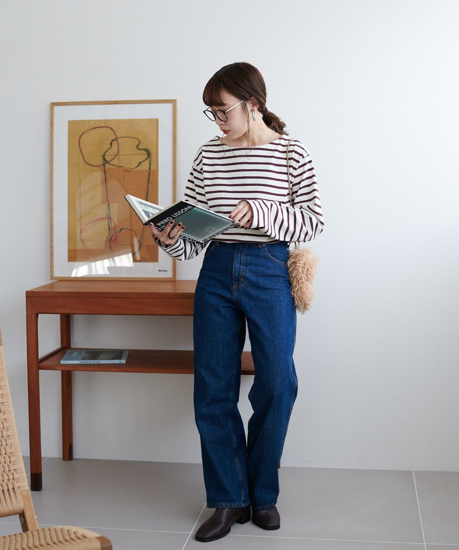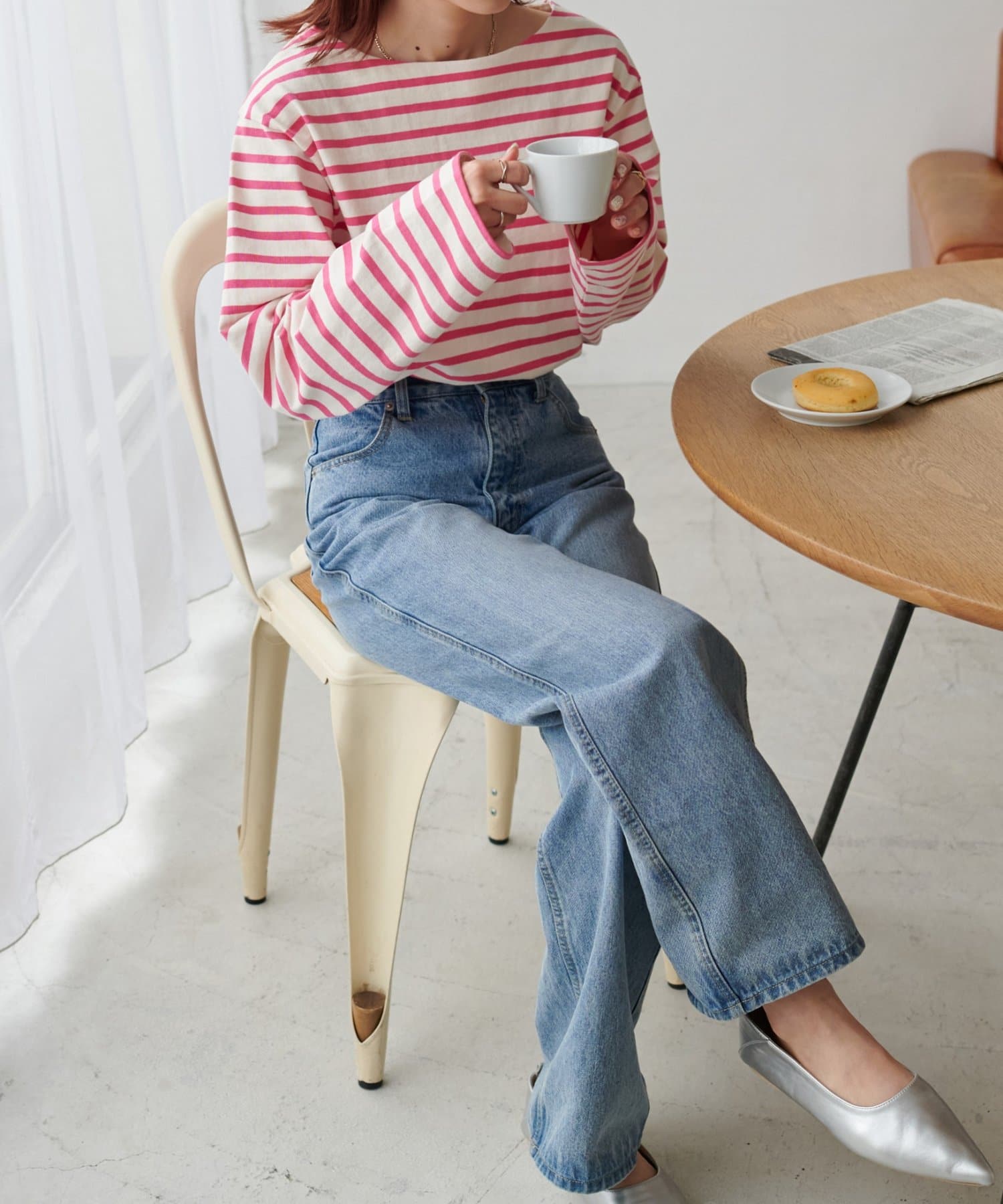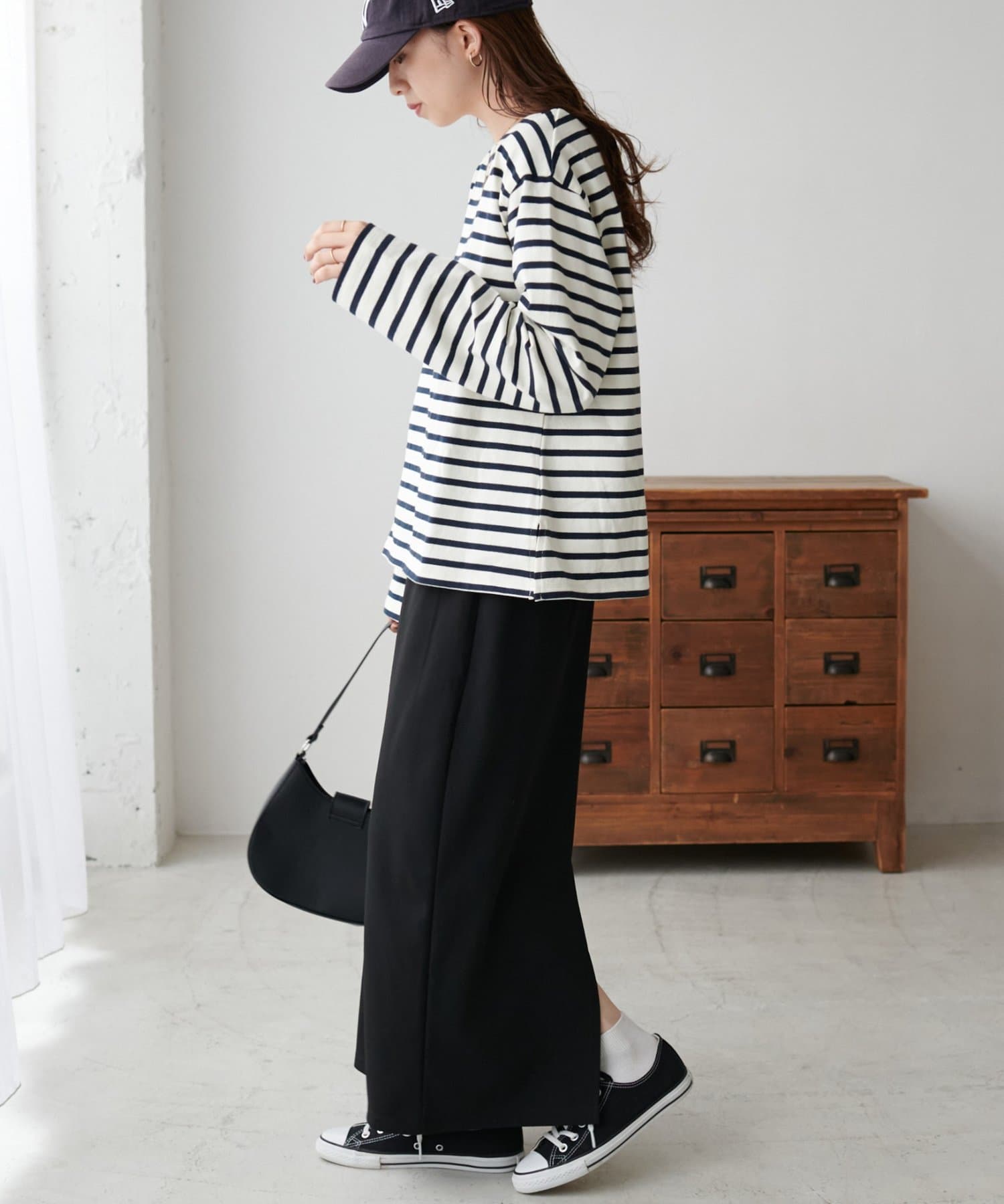 155cmスタッフ:ついつい毎年買ってしまうボーダートップス!今年はスッキリしたサイズ感と、首元のボートネックデザインが大人っぽく着られます!