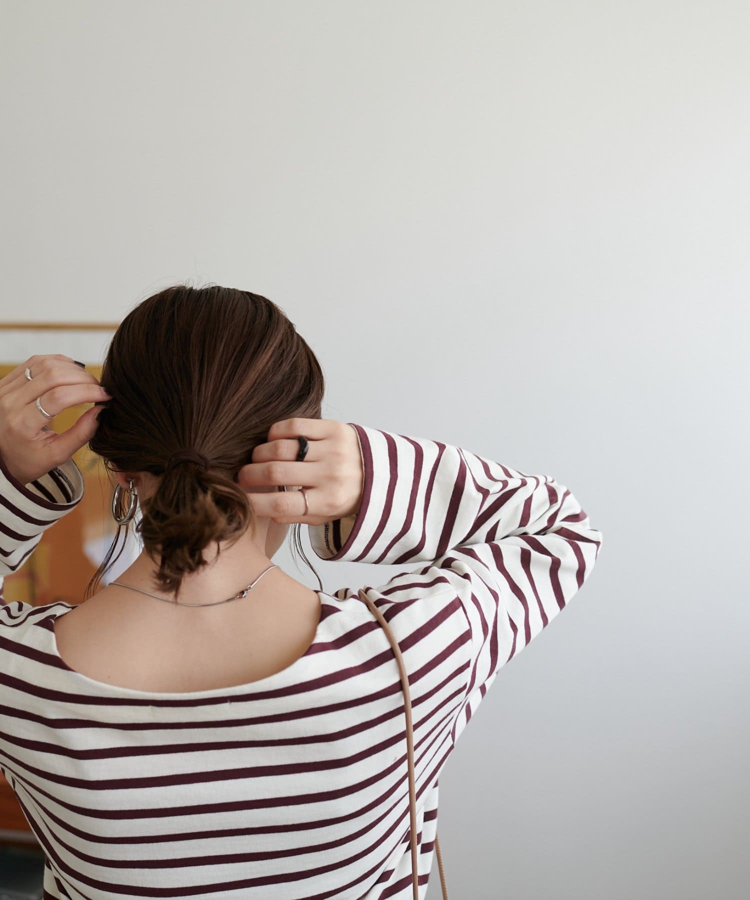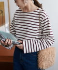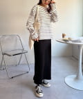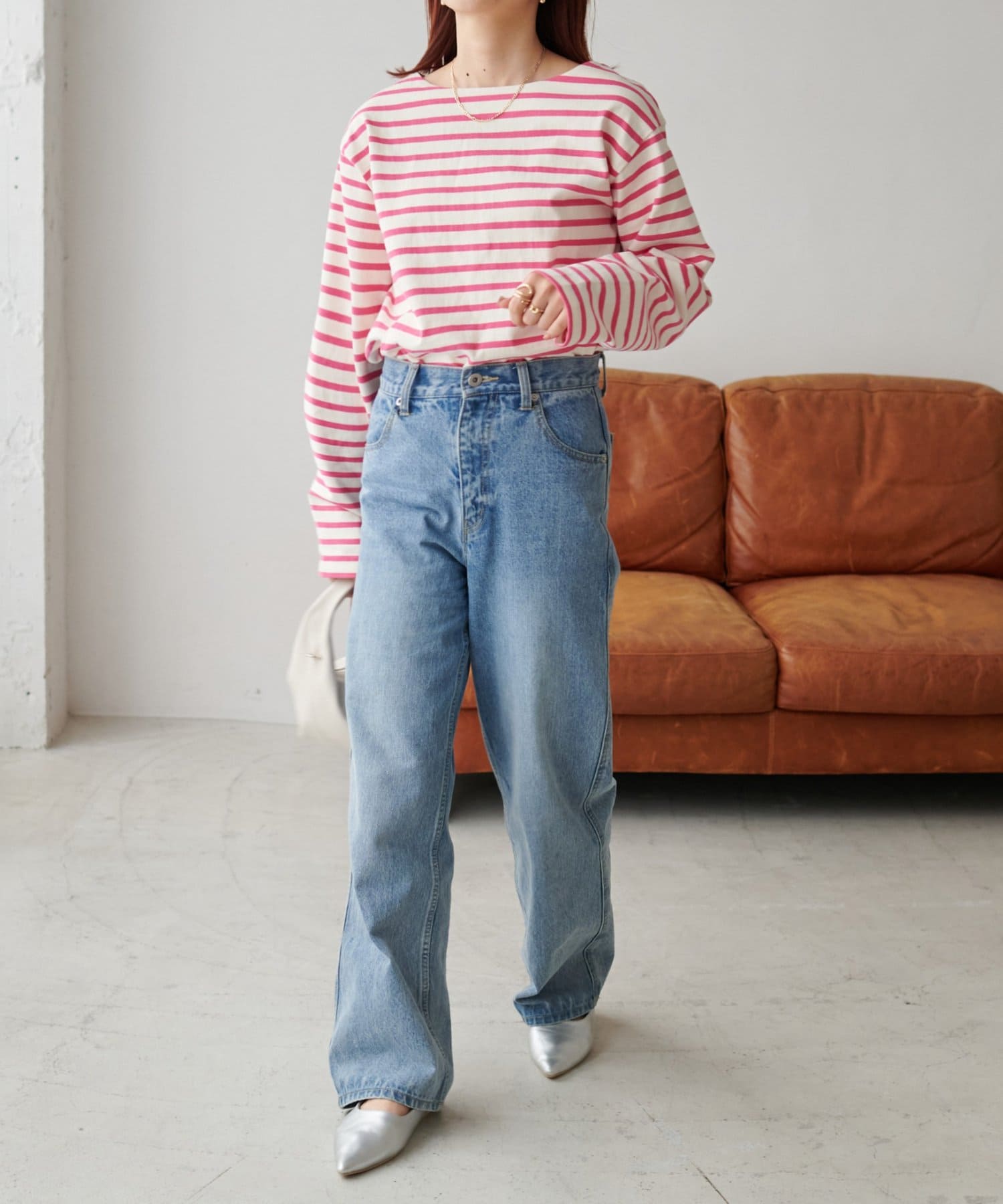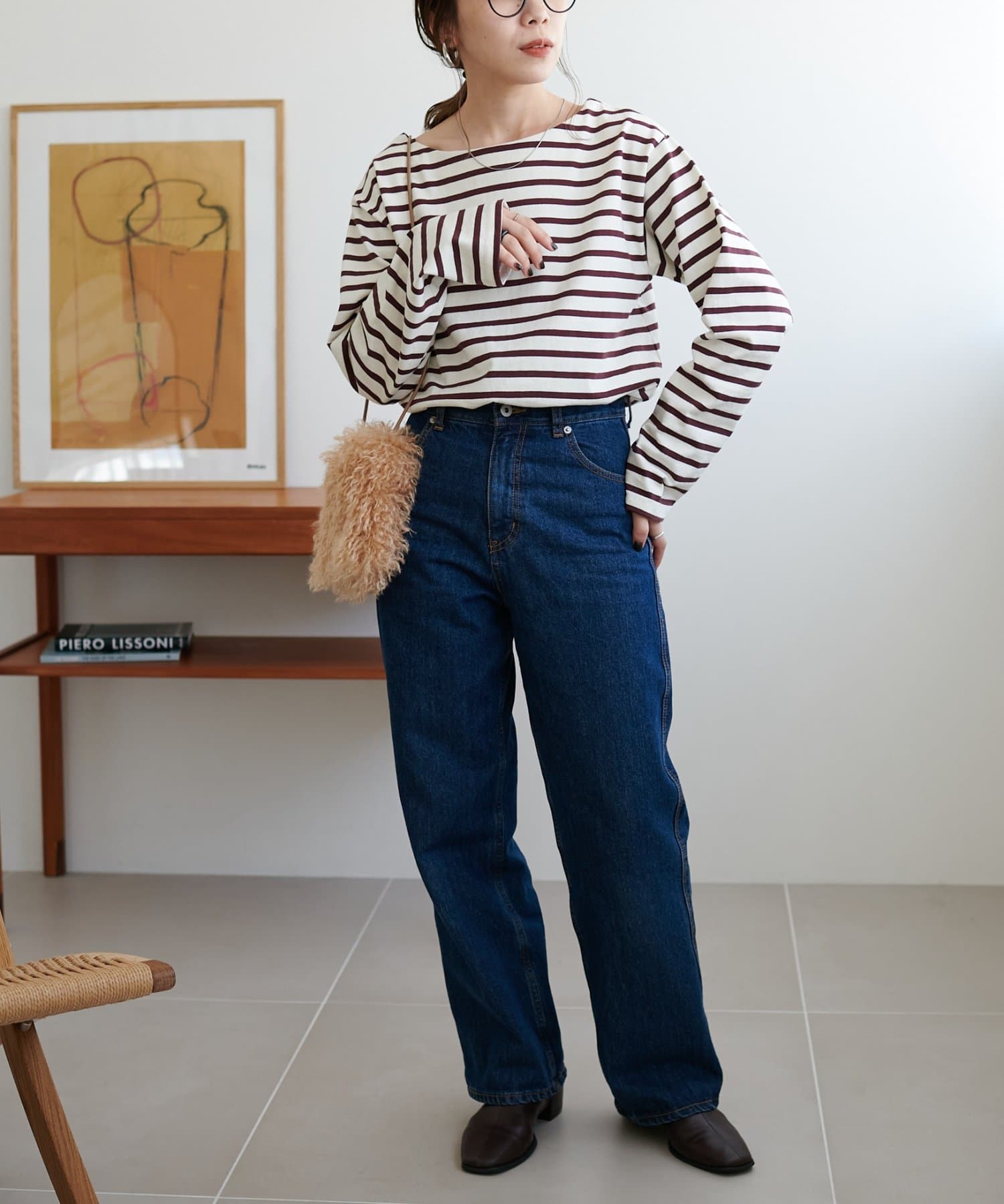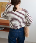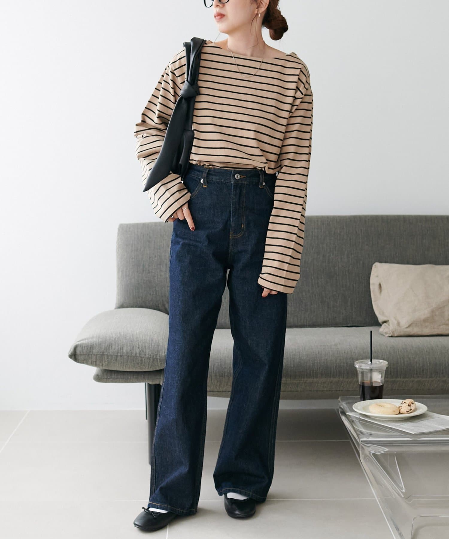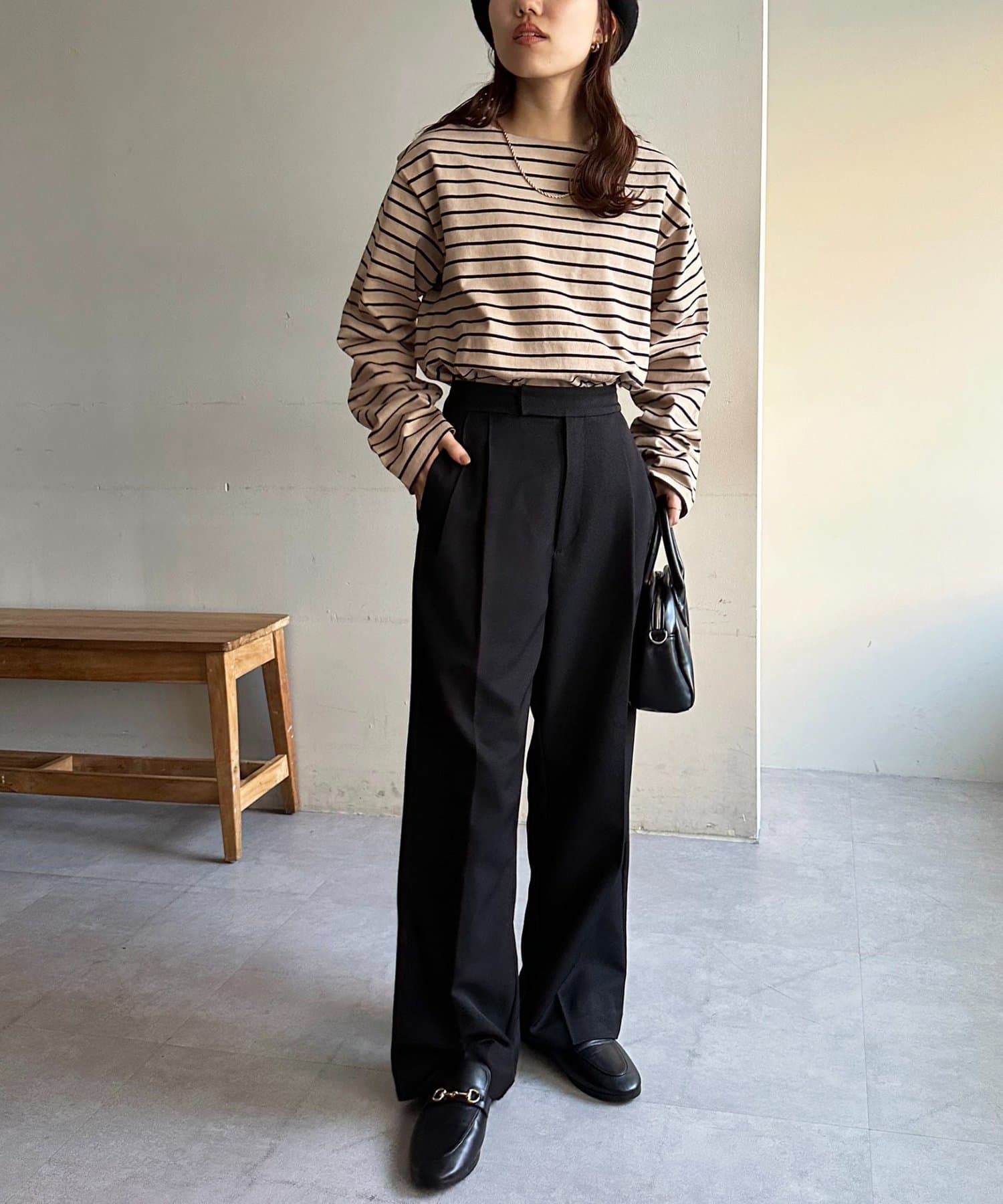 155cmスタッフ:ついつい毎年買ってしまうボーダートップス!今年はスッキリしたサイズ感と、首元のボートネックデザインが大人っぽく着られます!