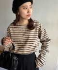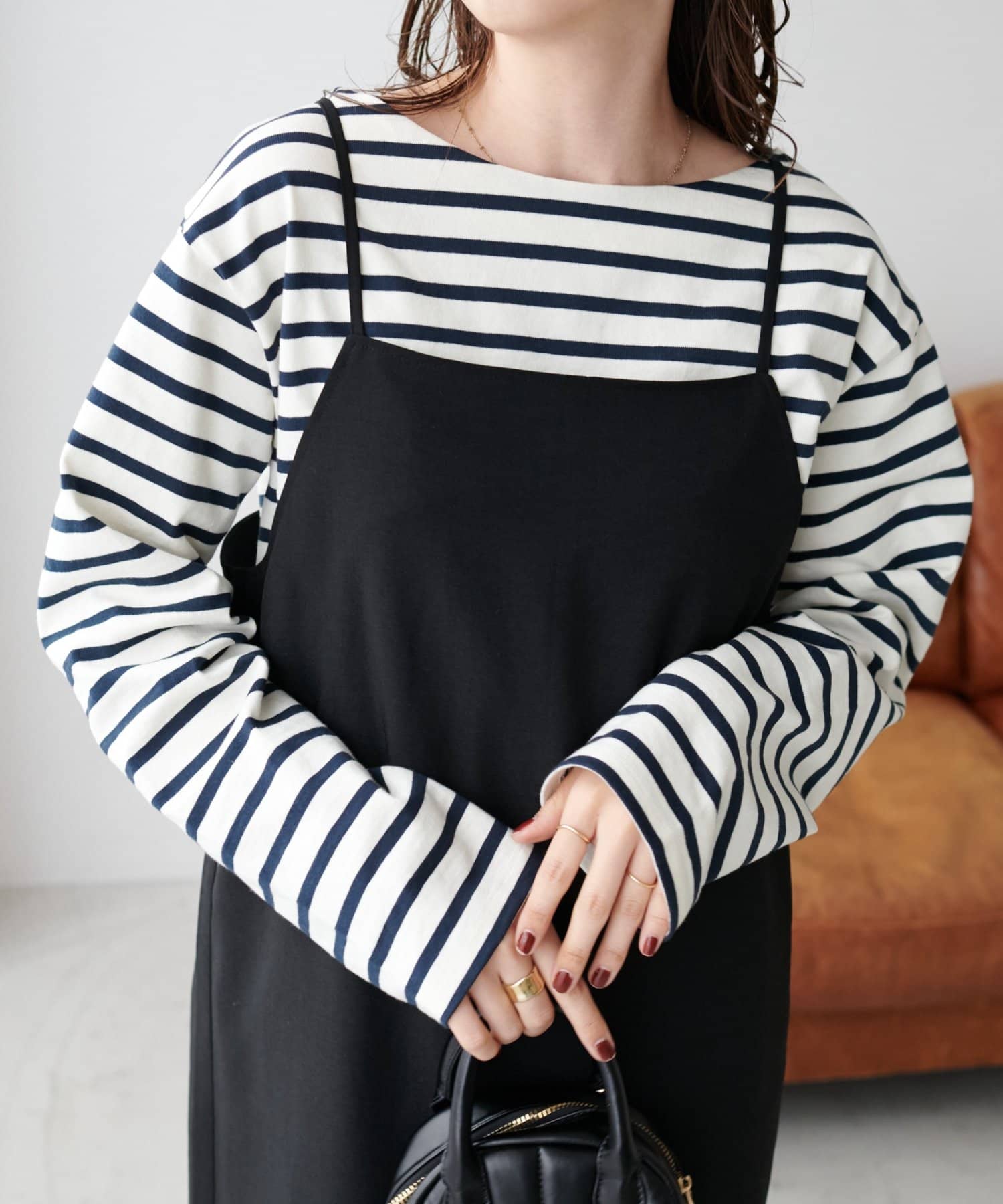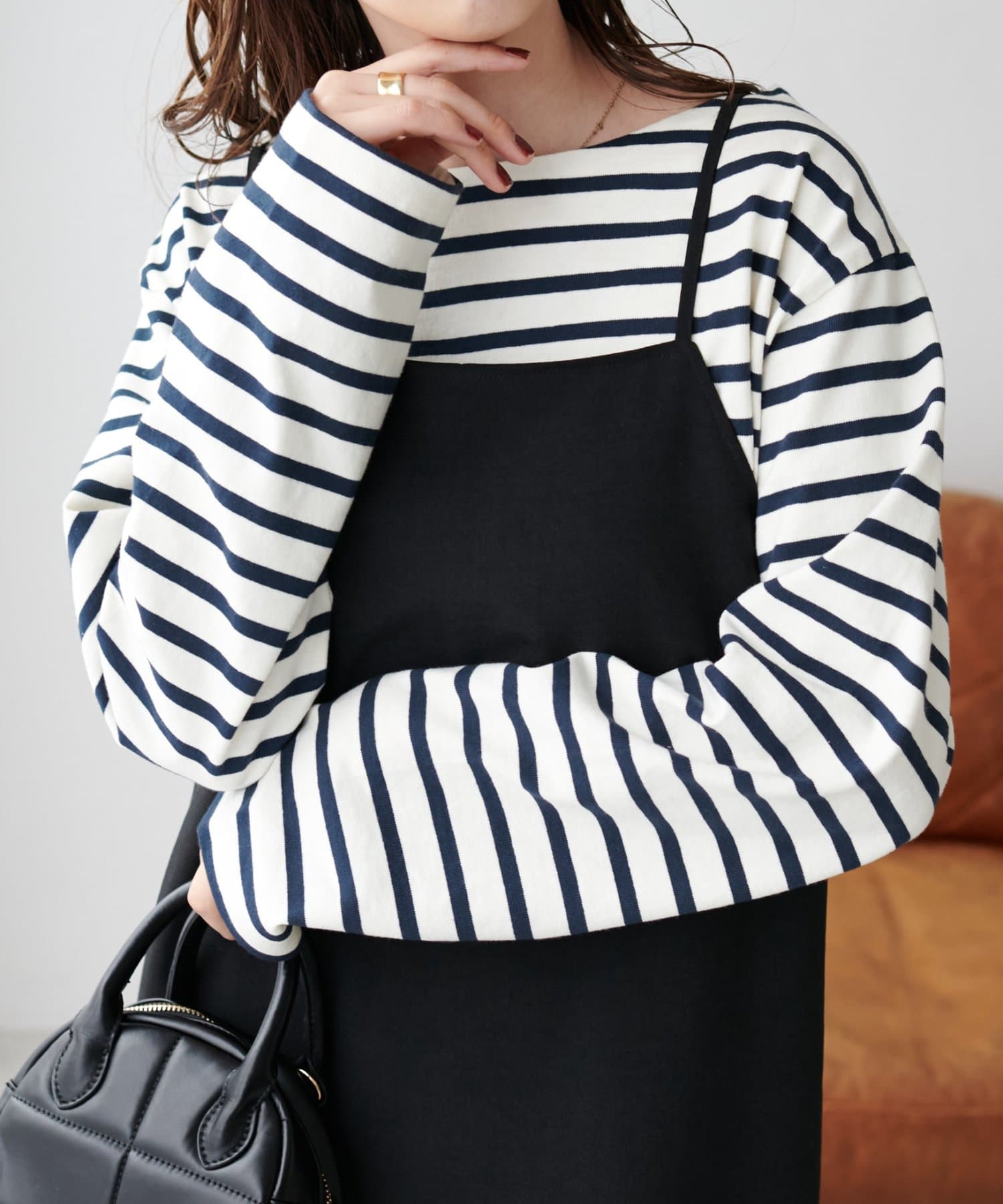 160cmスタッフ:今年のボーダーTは、キャミワンピなどのインナーとしても使いやすいようなサイズ感になってます♡程よくフレアになっているお袖もポイントです!