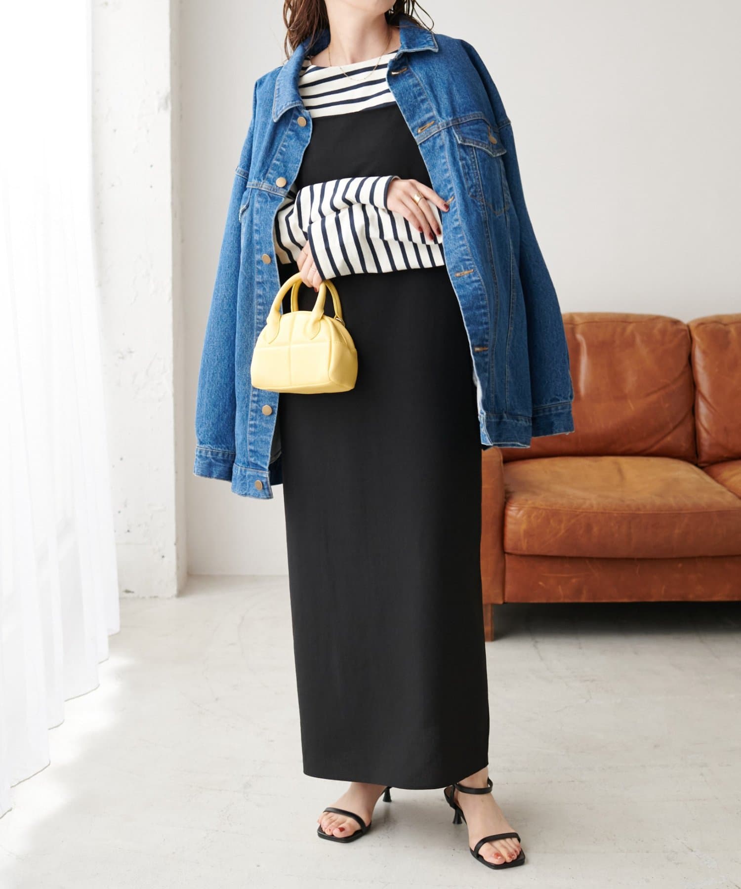 ベーシックなデニムはもちろん、女性らしいナロースカートとも好相性。ゆったりとし過ぎないサイズ感なので、キャミワンピースやジャケットのインナーにも着やすいです。