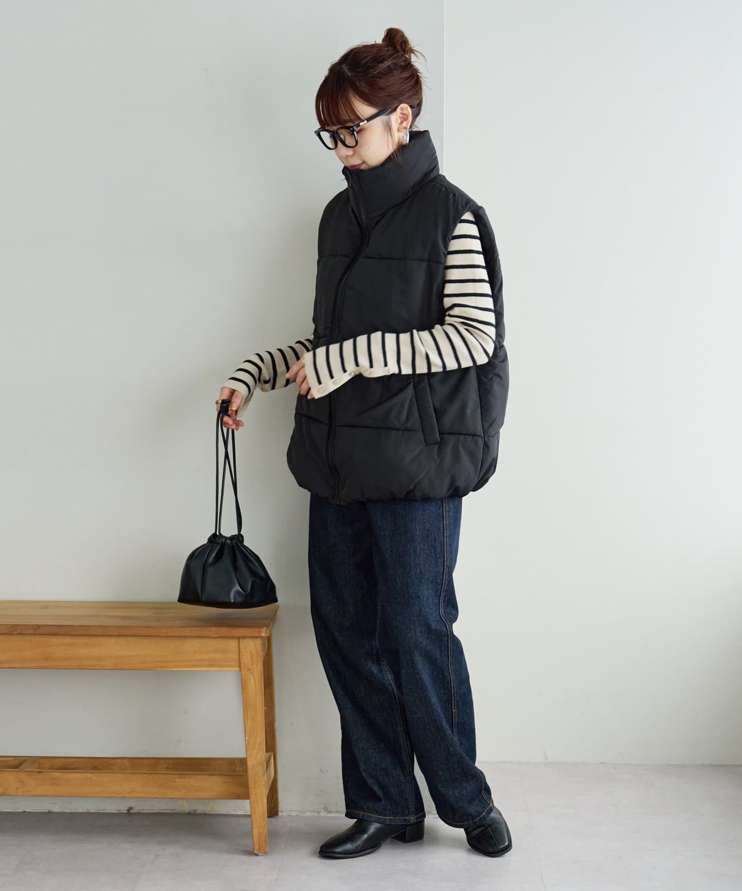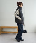 ボトムはデニムやワイドパンツと合わせると、バランス良くスタイルアップできます◎