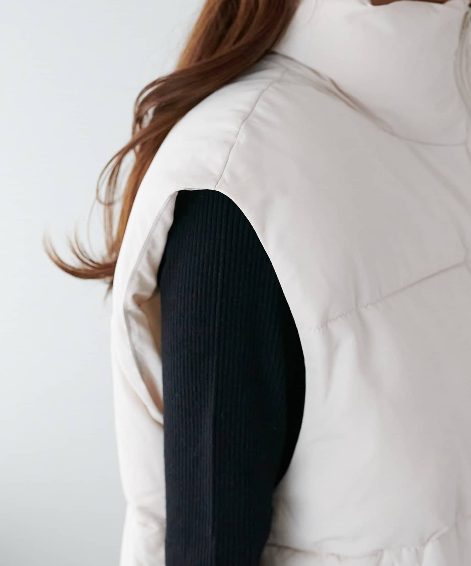 立体的なスタンドカラーと程よいボリューム感がポイントのフェイクダウンベスト。