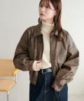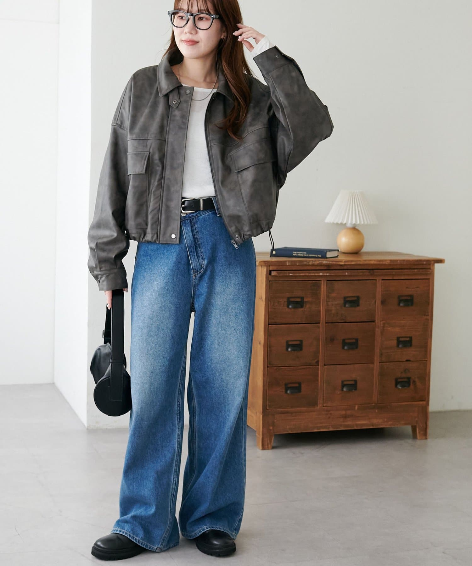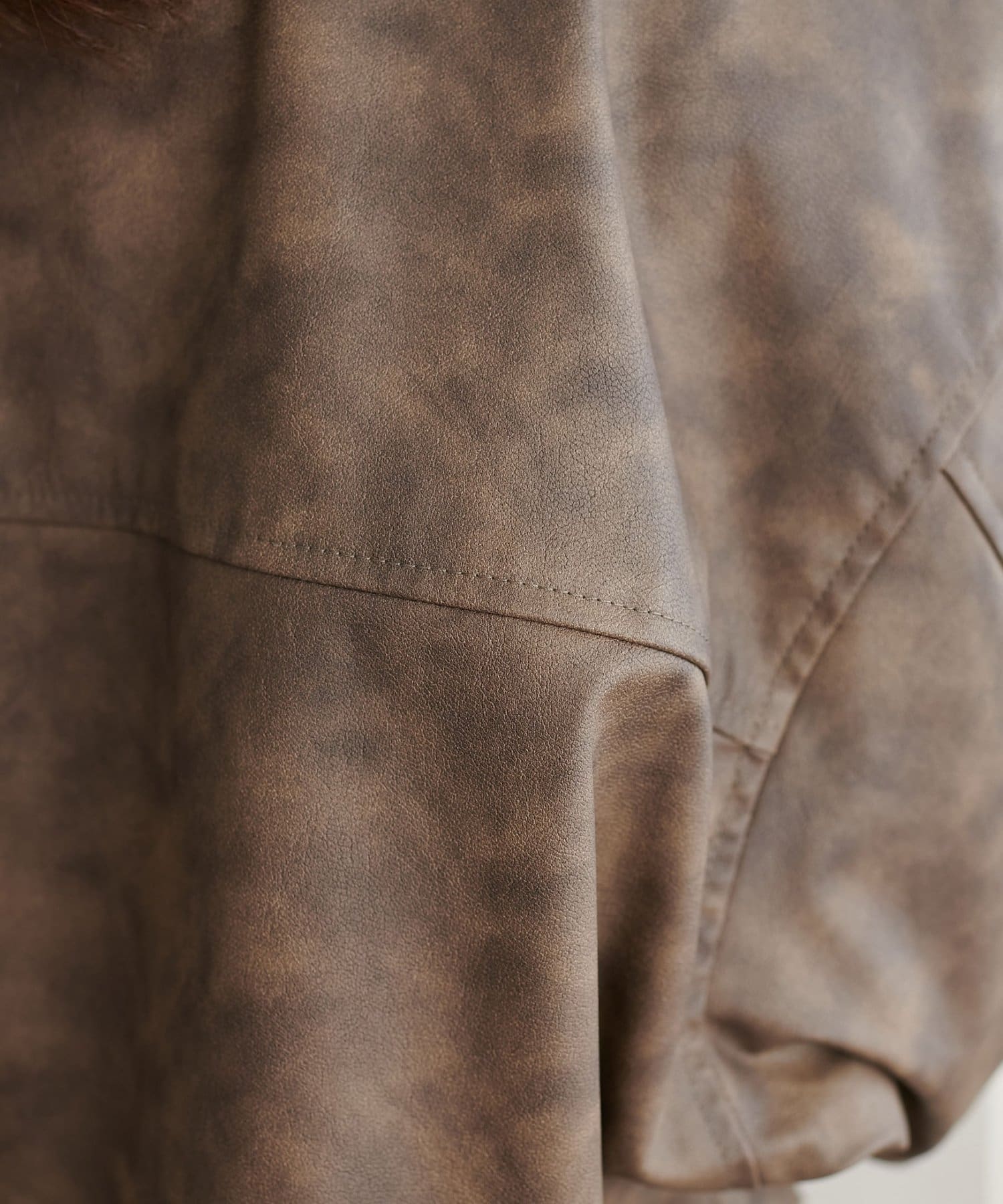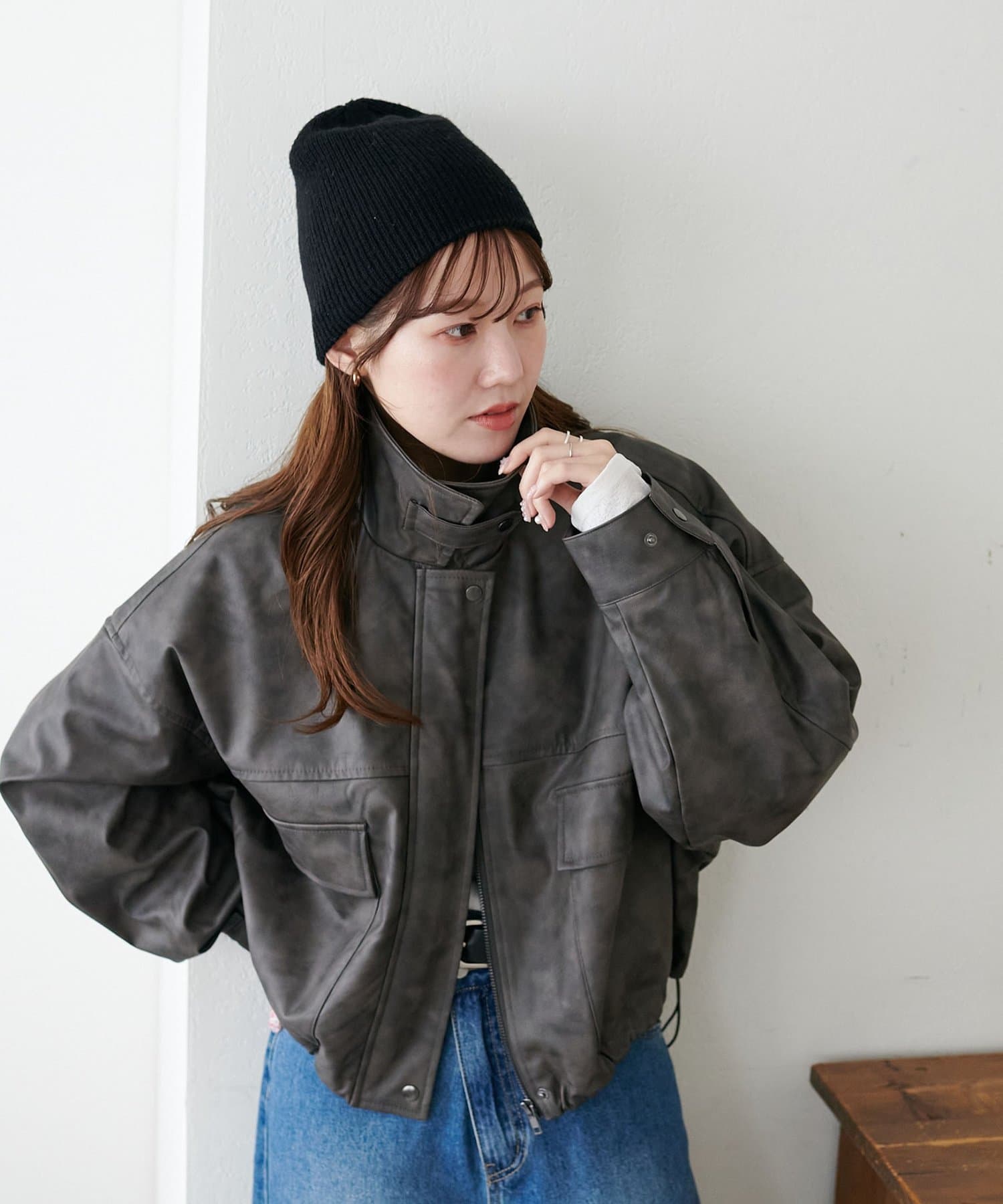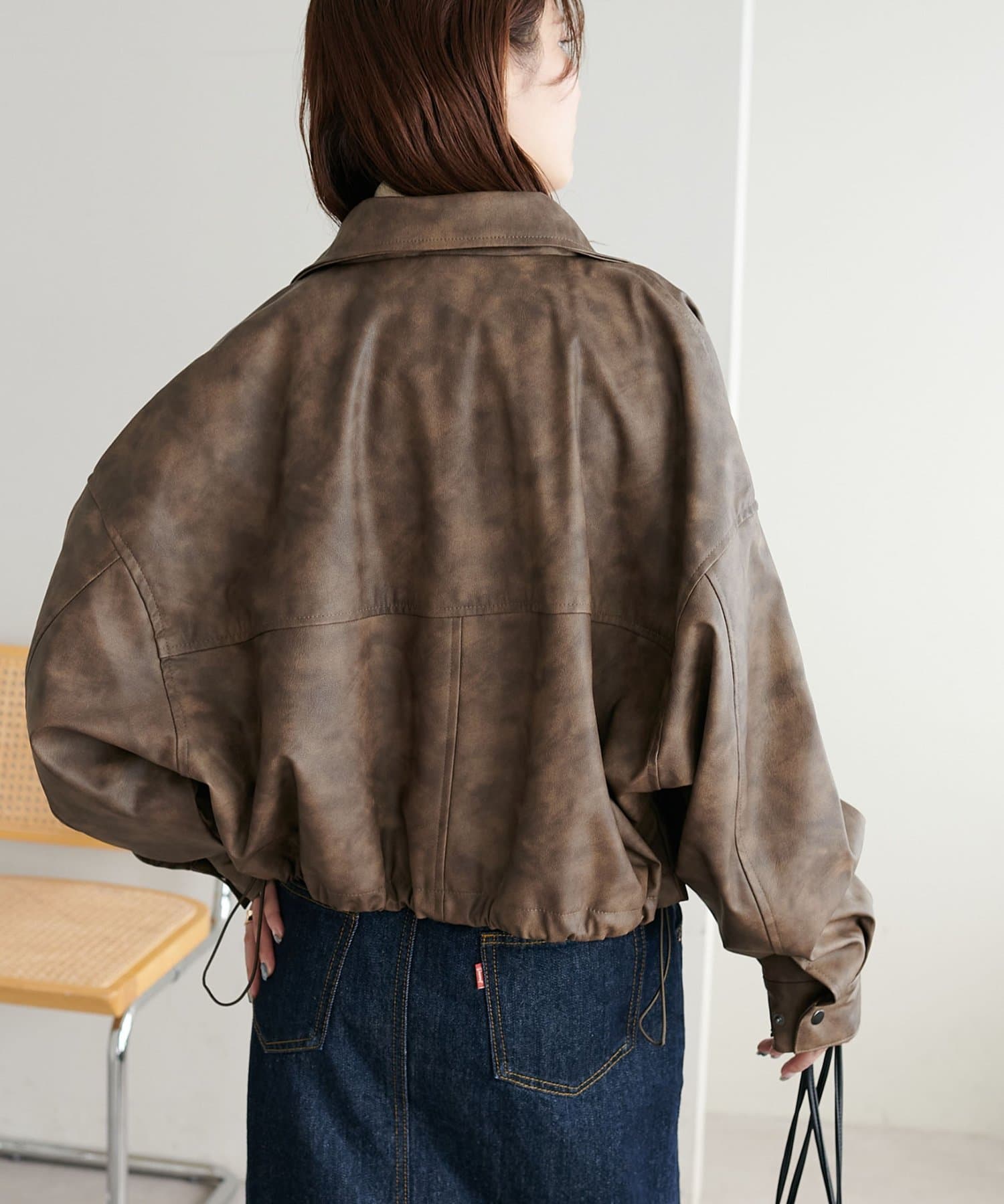 程よくルーズなシルエットとショート丈のバランスが絶妙なフェイクレザーショートブルゾン。