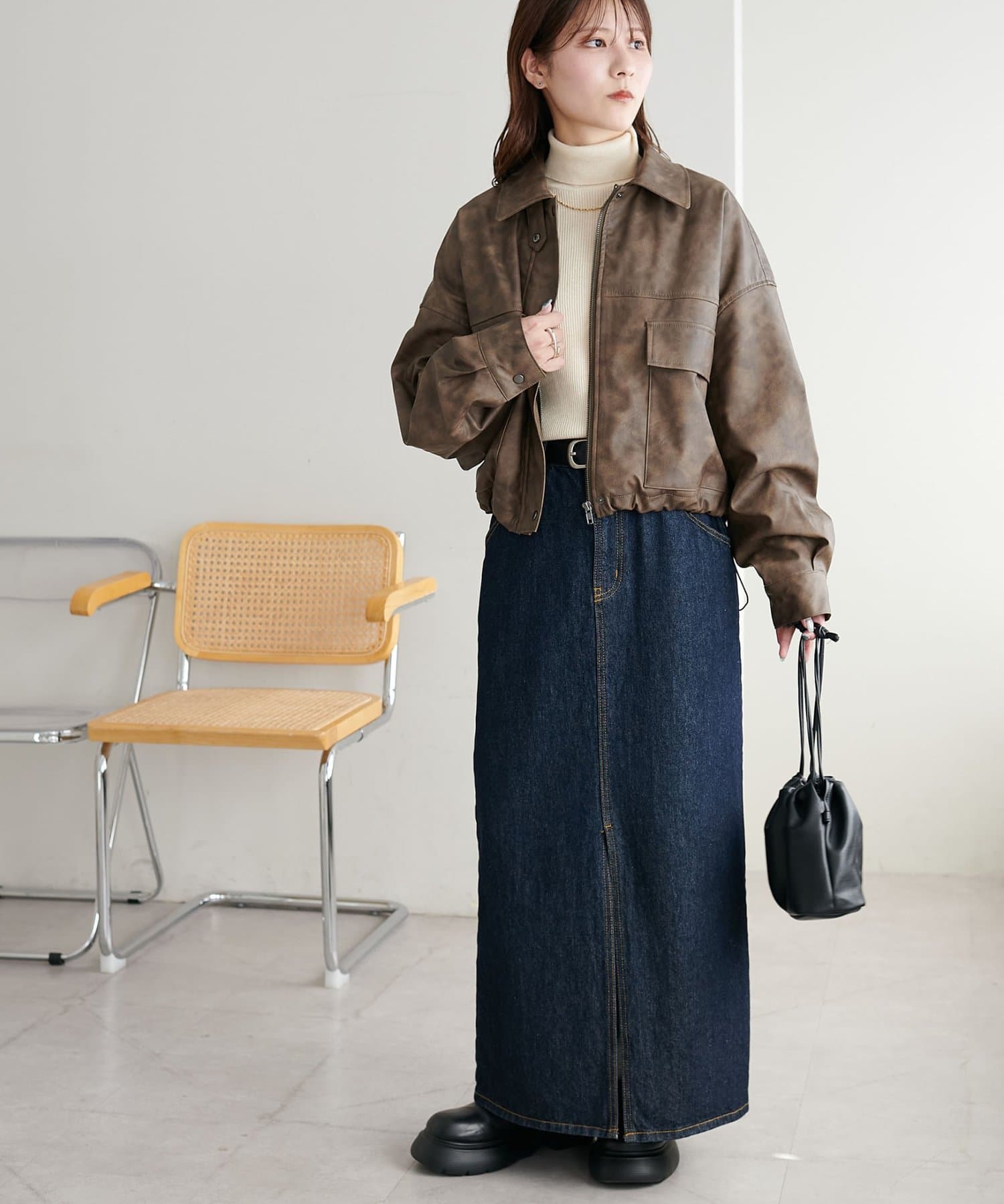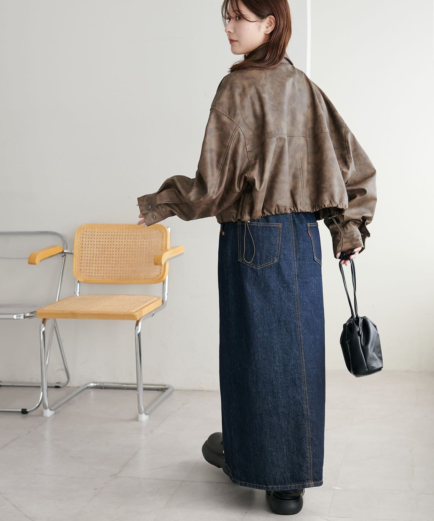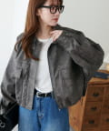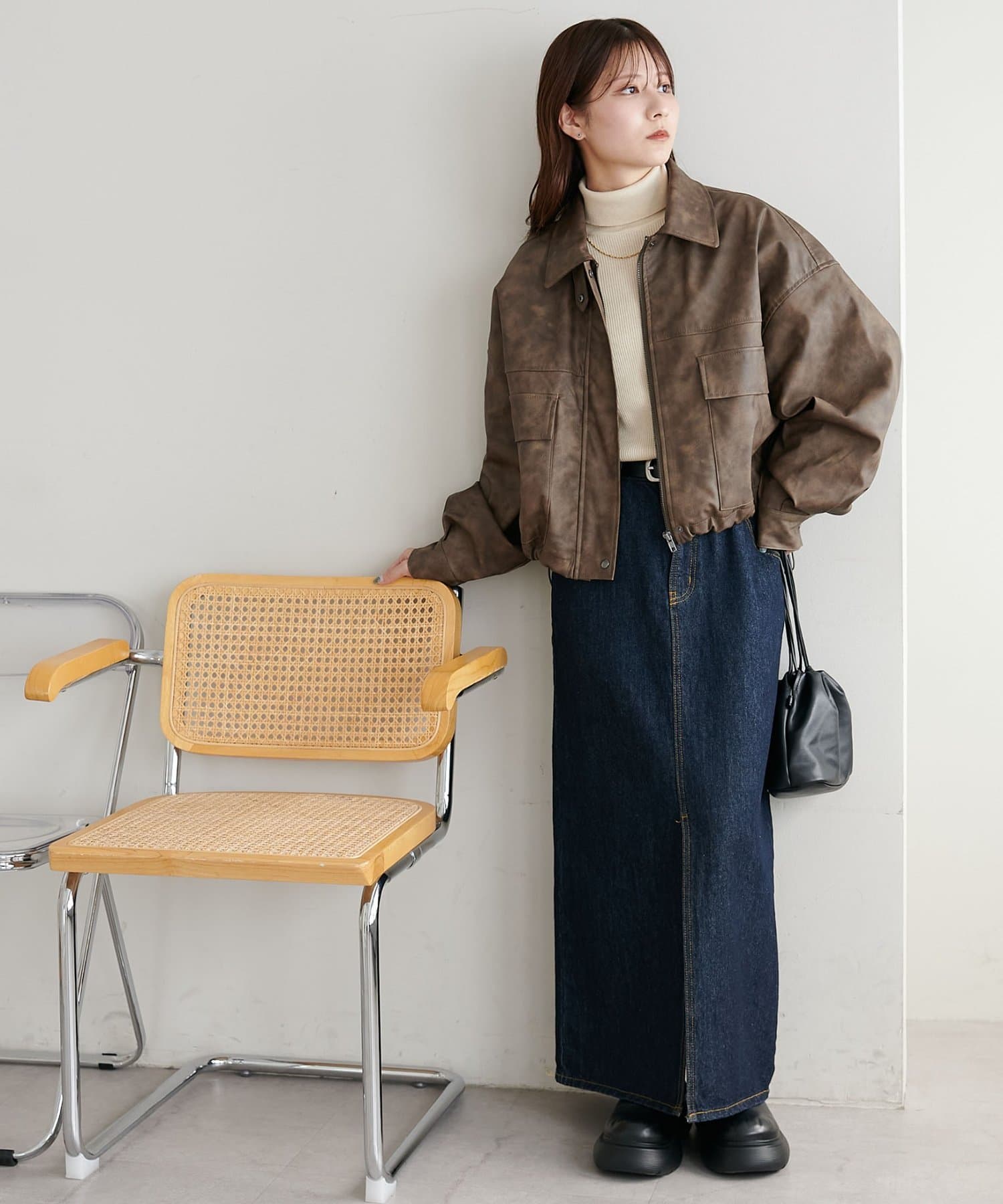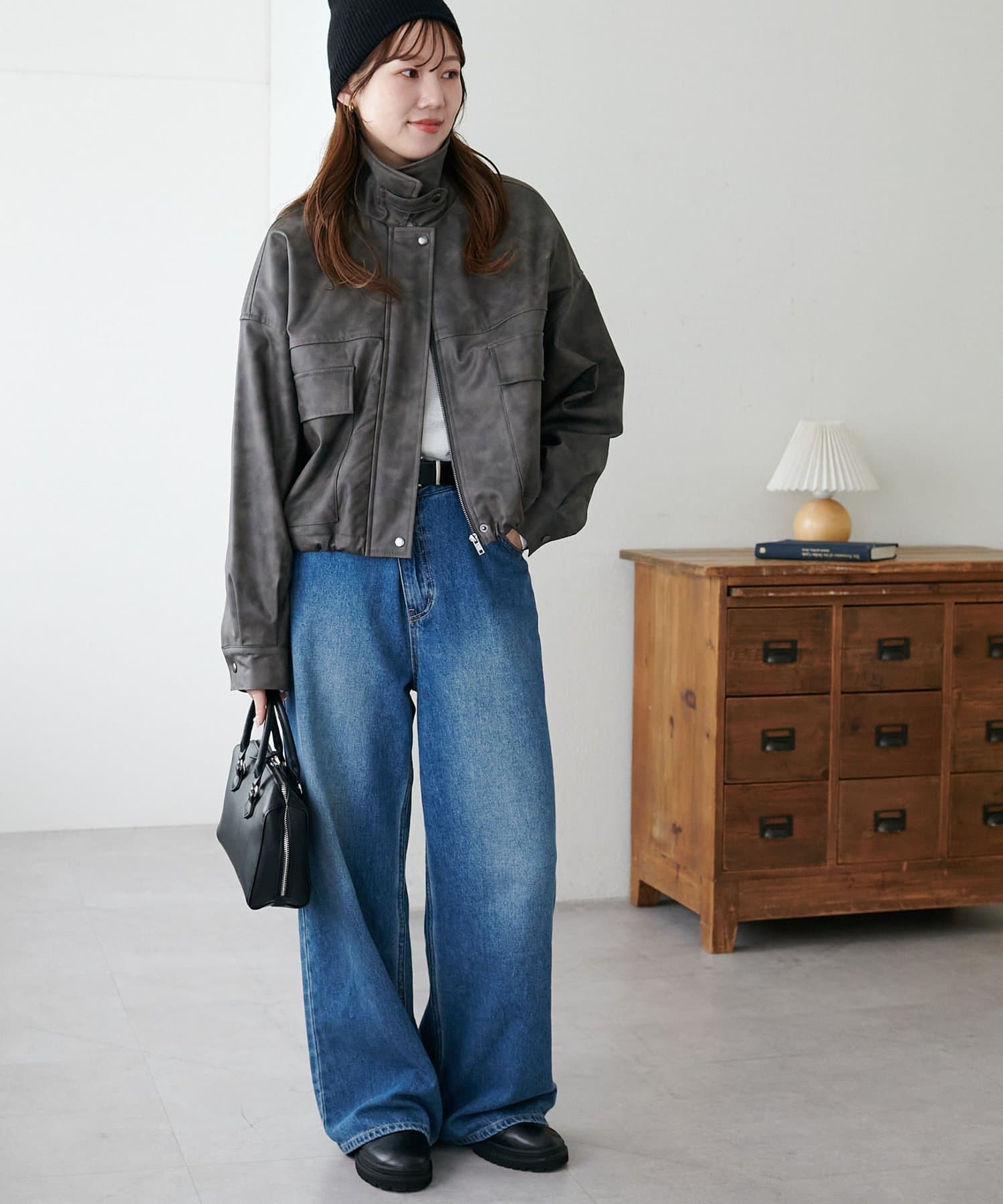 程よくルーズなシルエットとショート丈のバランスが絶妙なフェイクレザーショートブルゾン。
