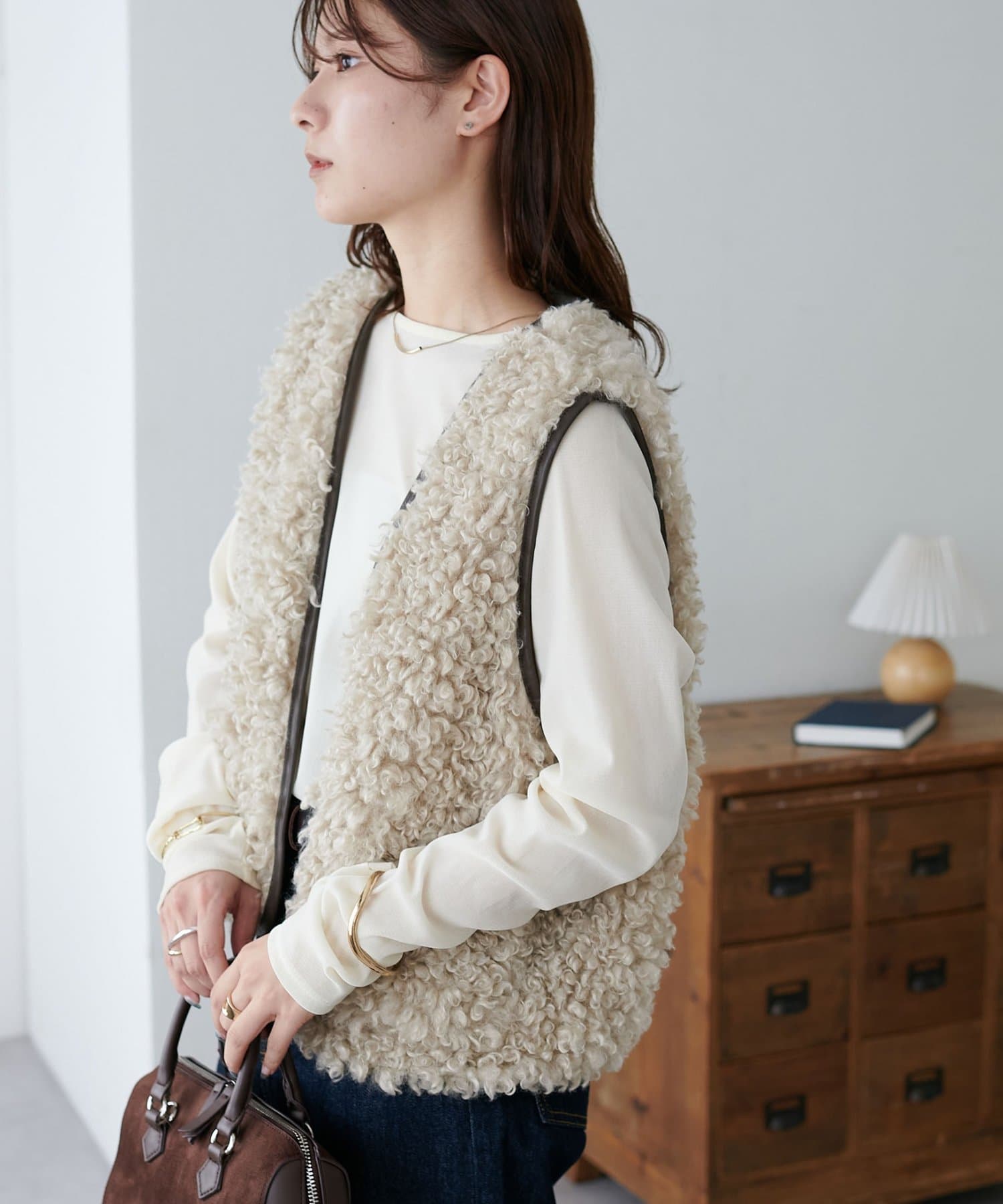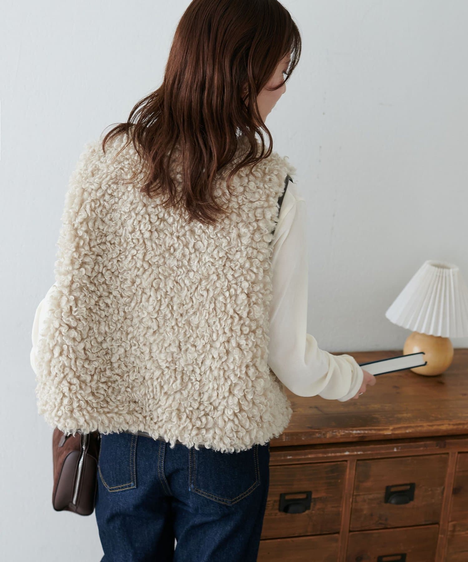 くるくるとした毛足が表情豊かで、見た目にもあたたかみのあるベスト。