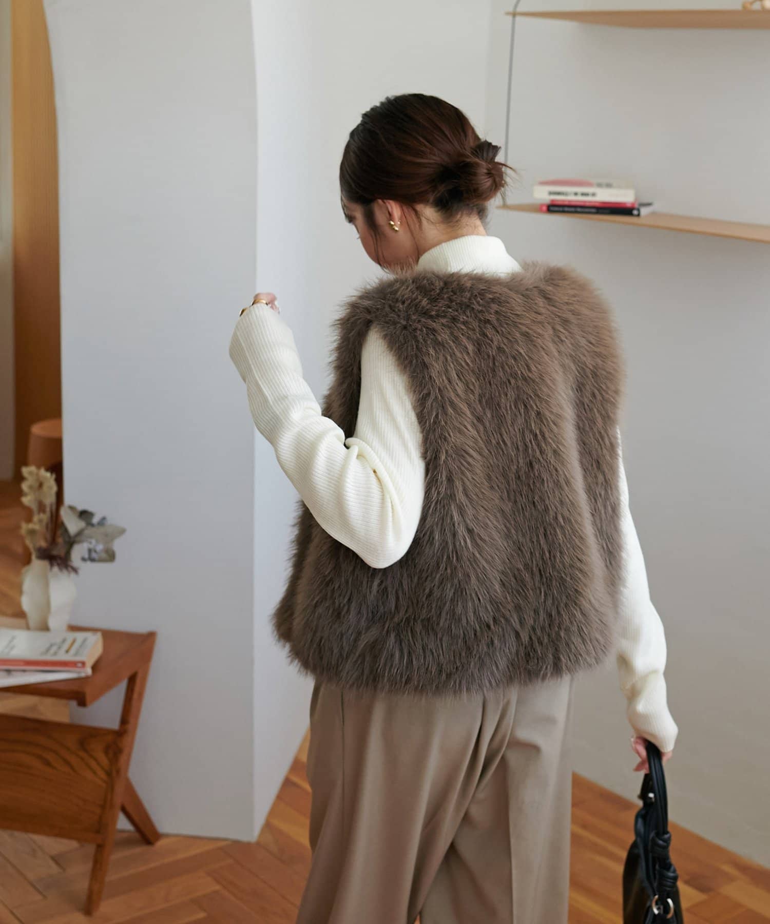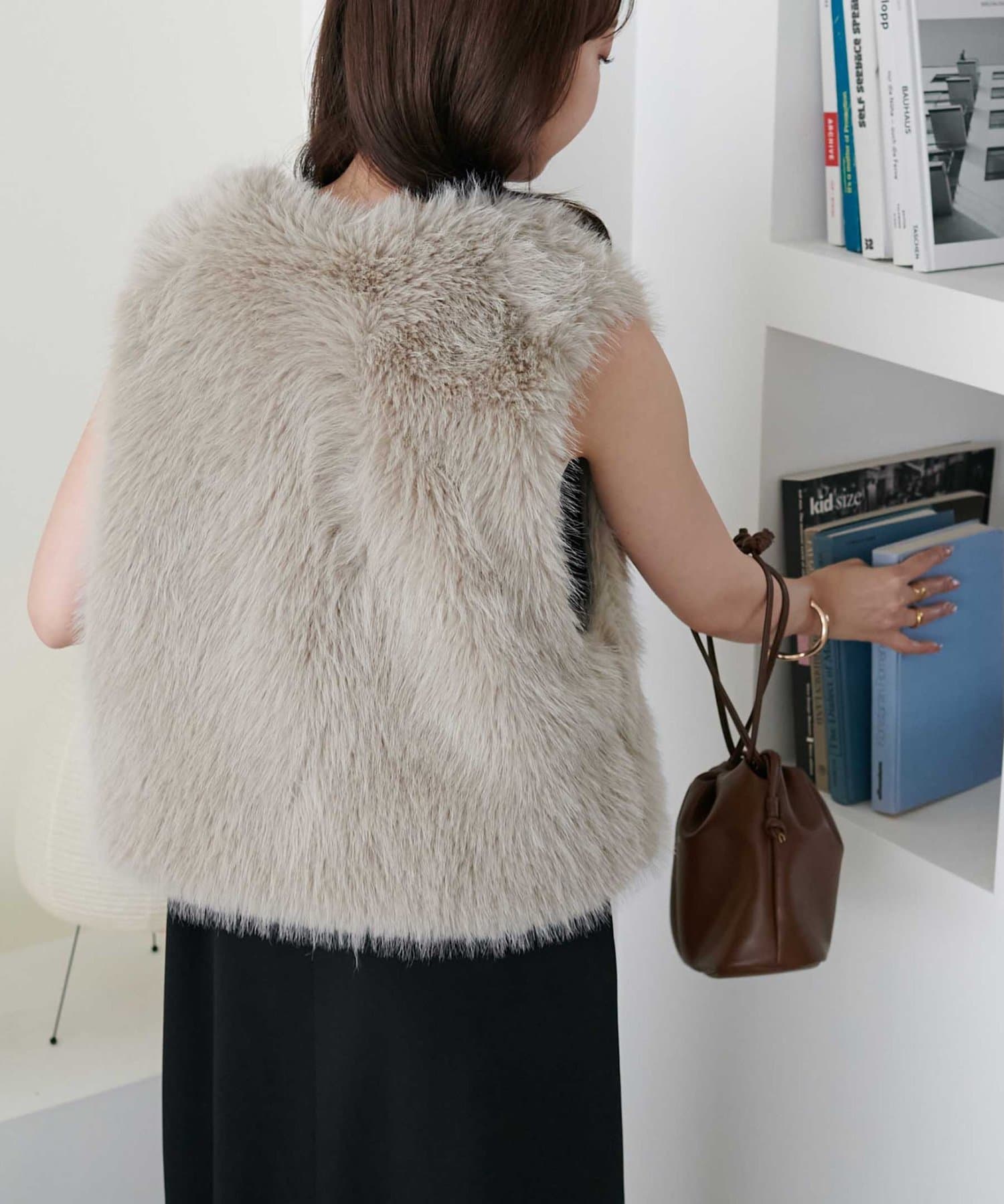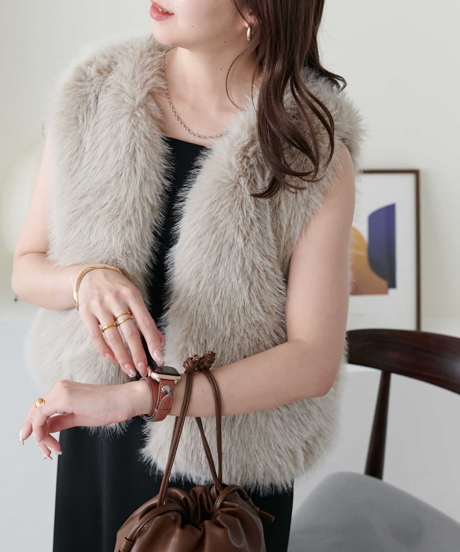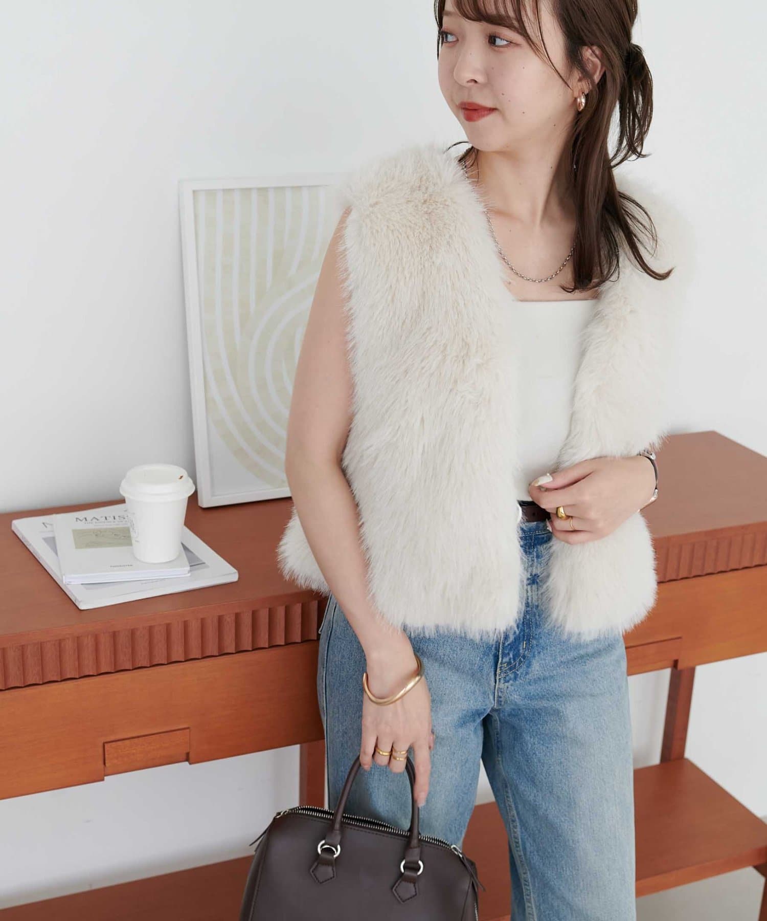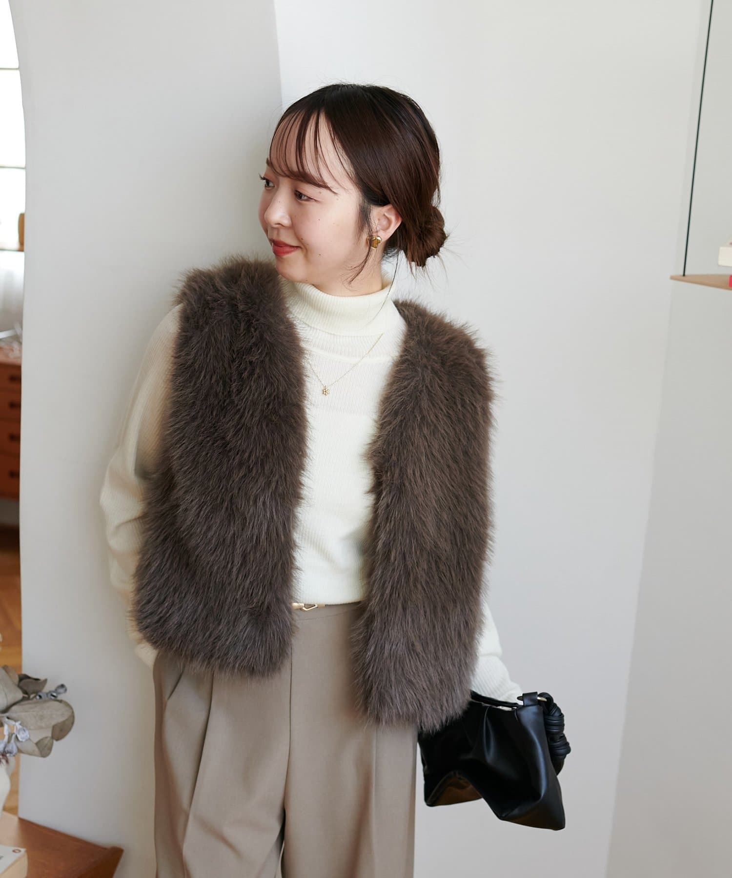 ふわふわで長い毛並みが上品で女性らしさ溢れるアイテムです。ショート丈でコーデのバランスがとりやすく、着回しやすいのもポイント◎普段使いからオケージョンシーンまで幅広いシーンで活躍します。