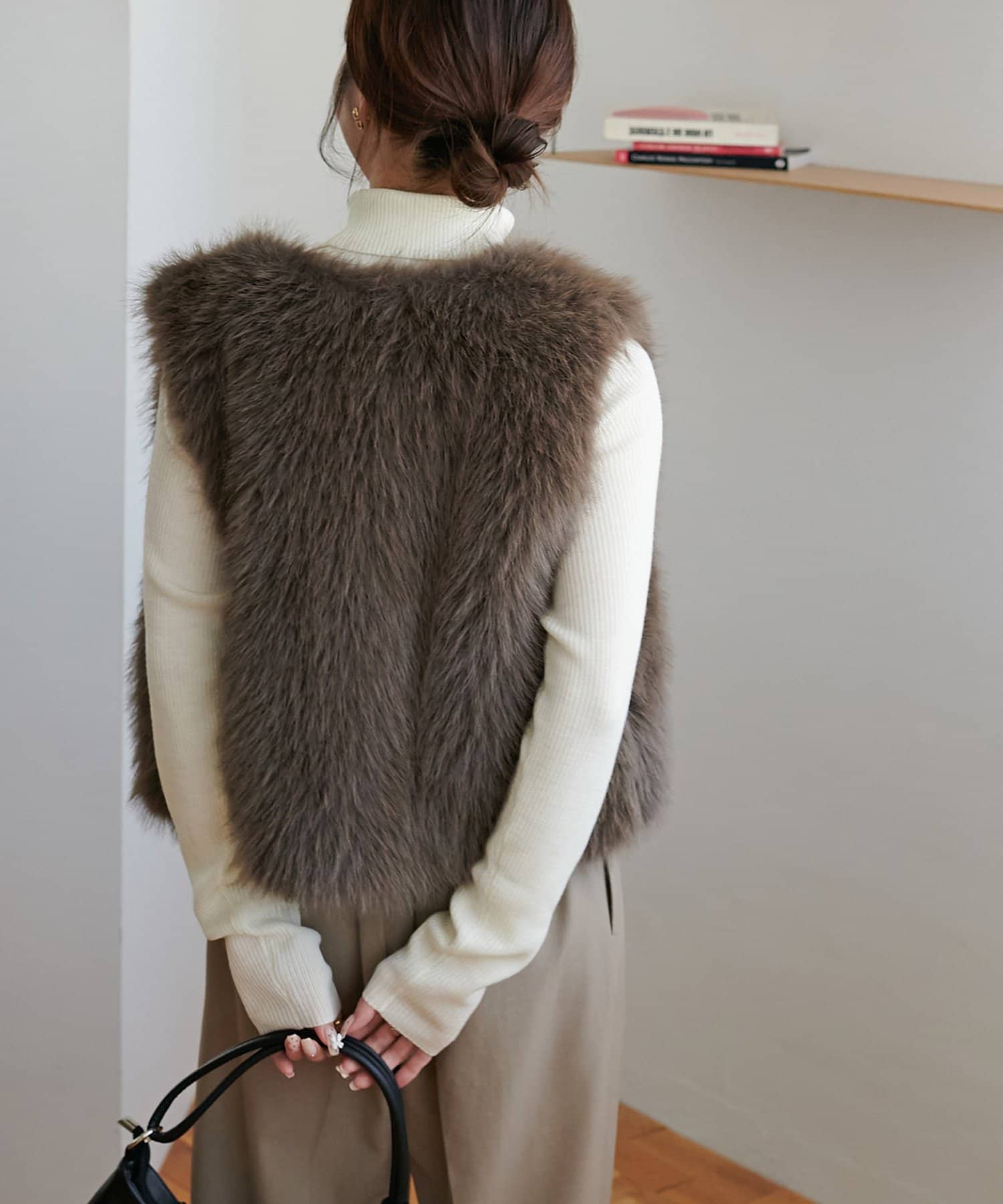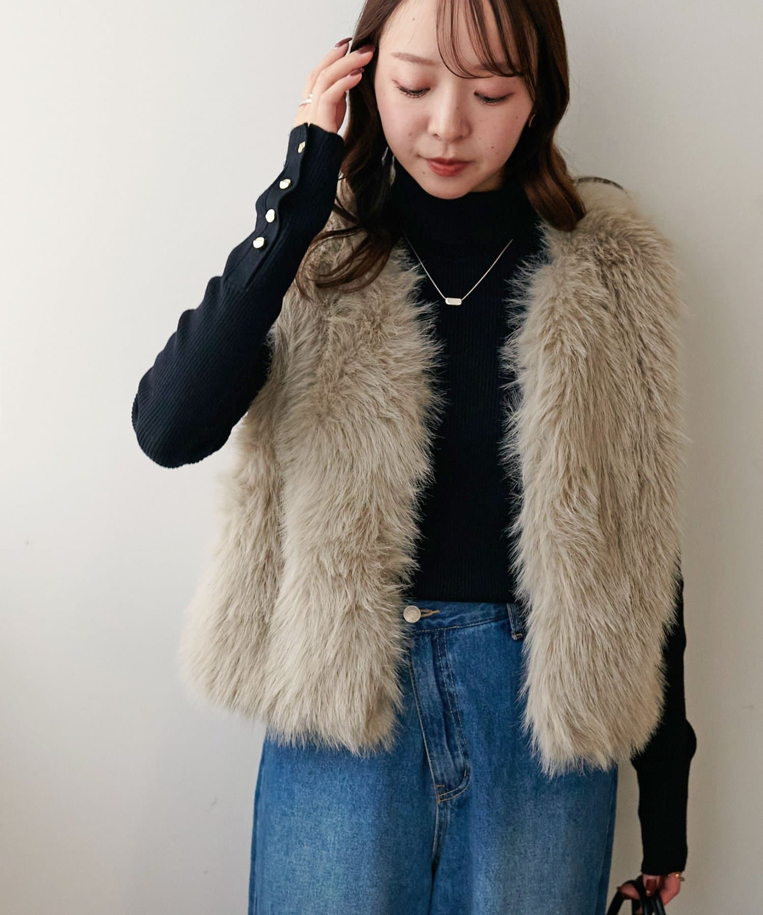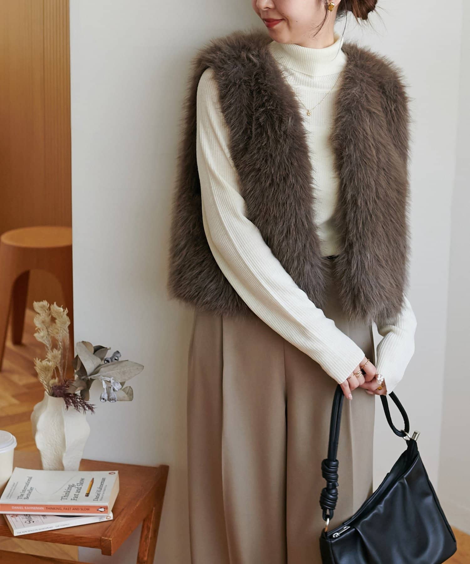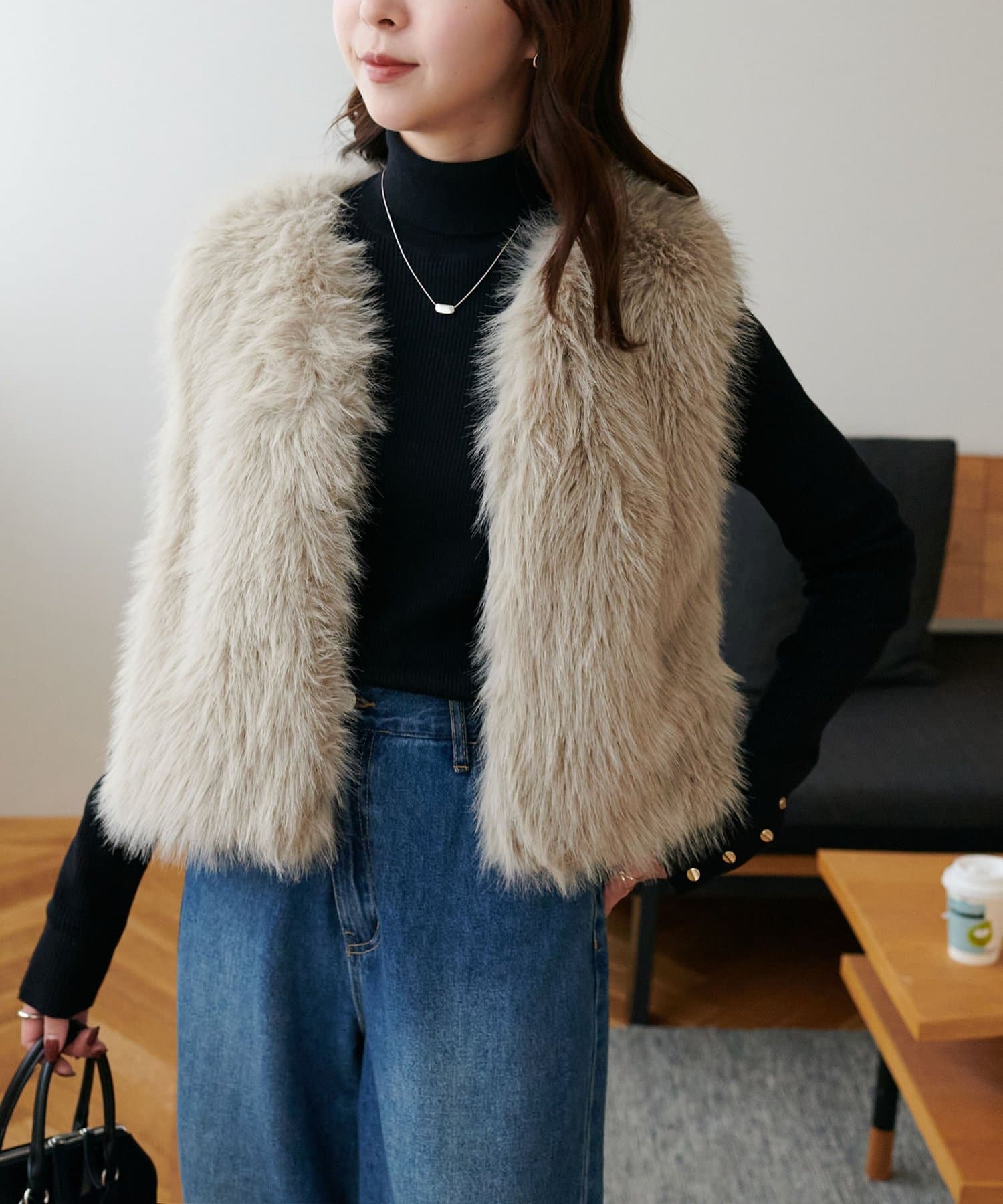 ふわふわで長い毛並みが上品で女性らしさ溢れるアイテムです。ショート丈でコーデのバランスがとりやすく、着回しやすいのもポイント◎普段使いからオケージョンシーンまで幅広いシーンで活躍します。