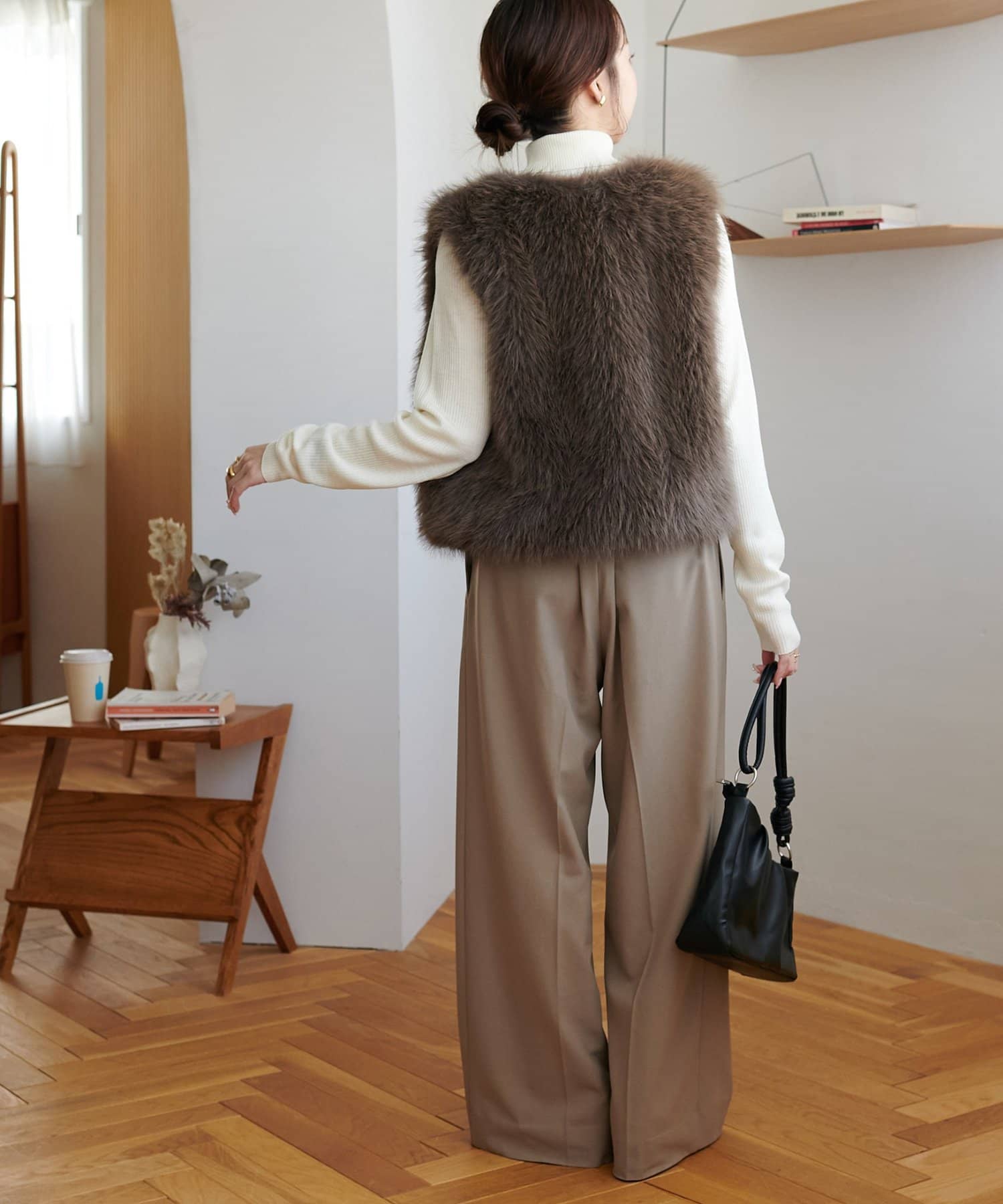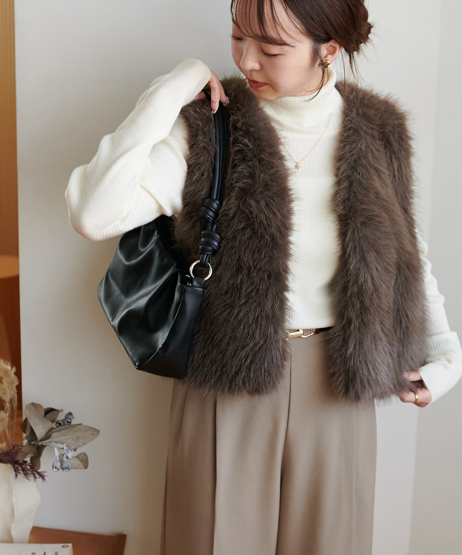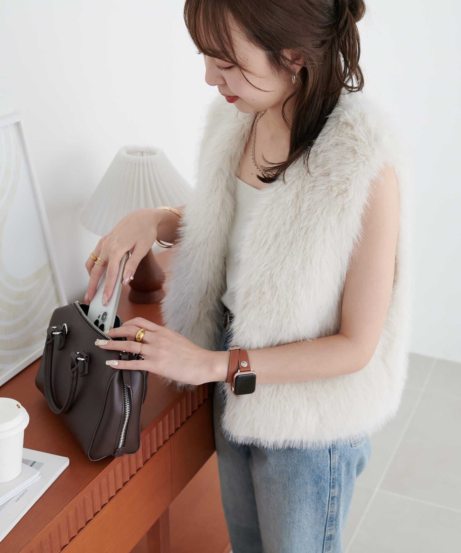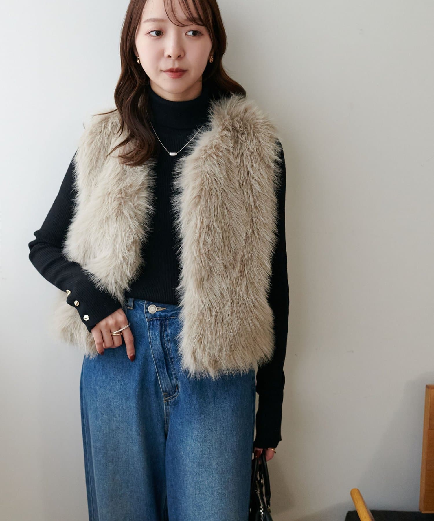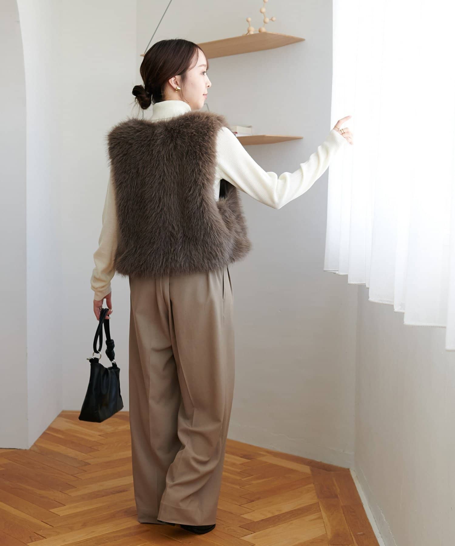 ふわふわで長い毛並みが上品で女性らしさ溢れるアイテムです。ショート丈でコーデのバランスがとりやすく、着回しやすいのもポイント◎普段使いからオケージョンシーンまで幅広いシーンで活躍します。