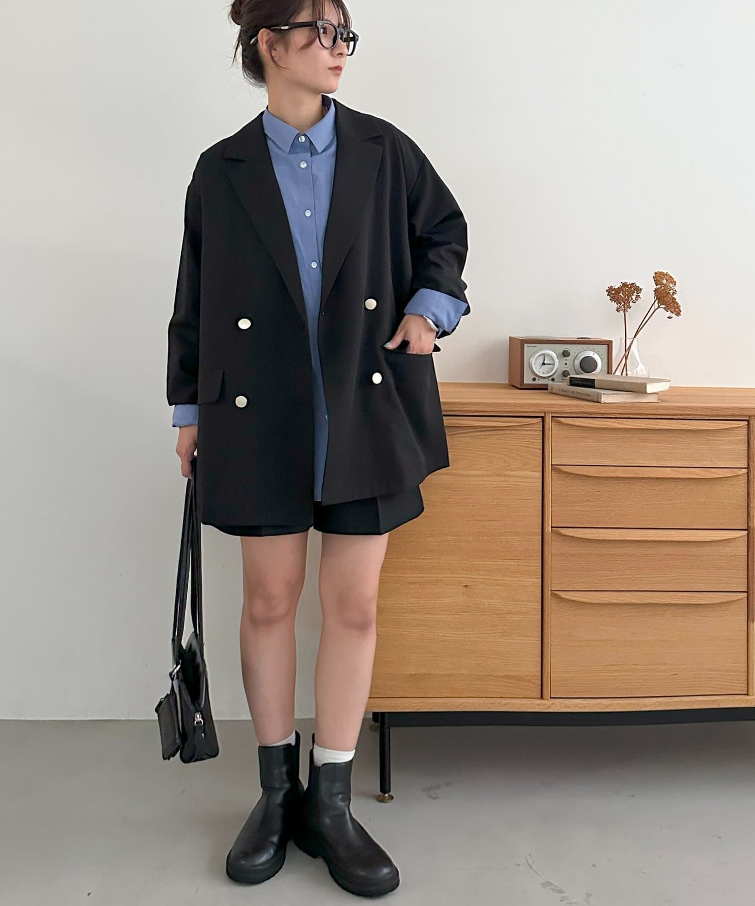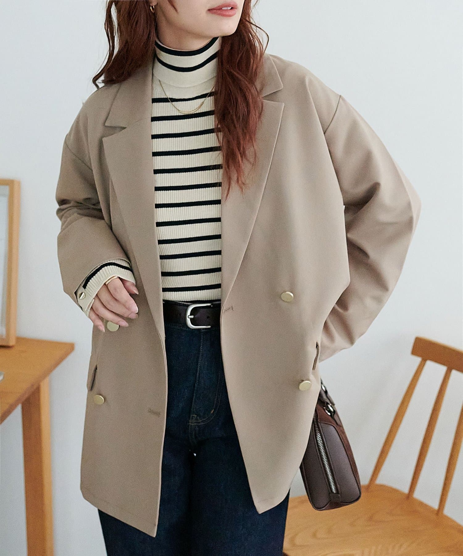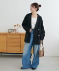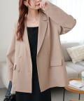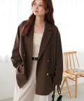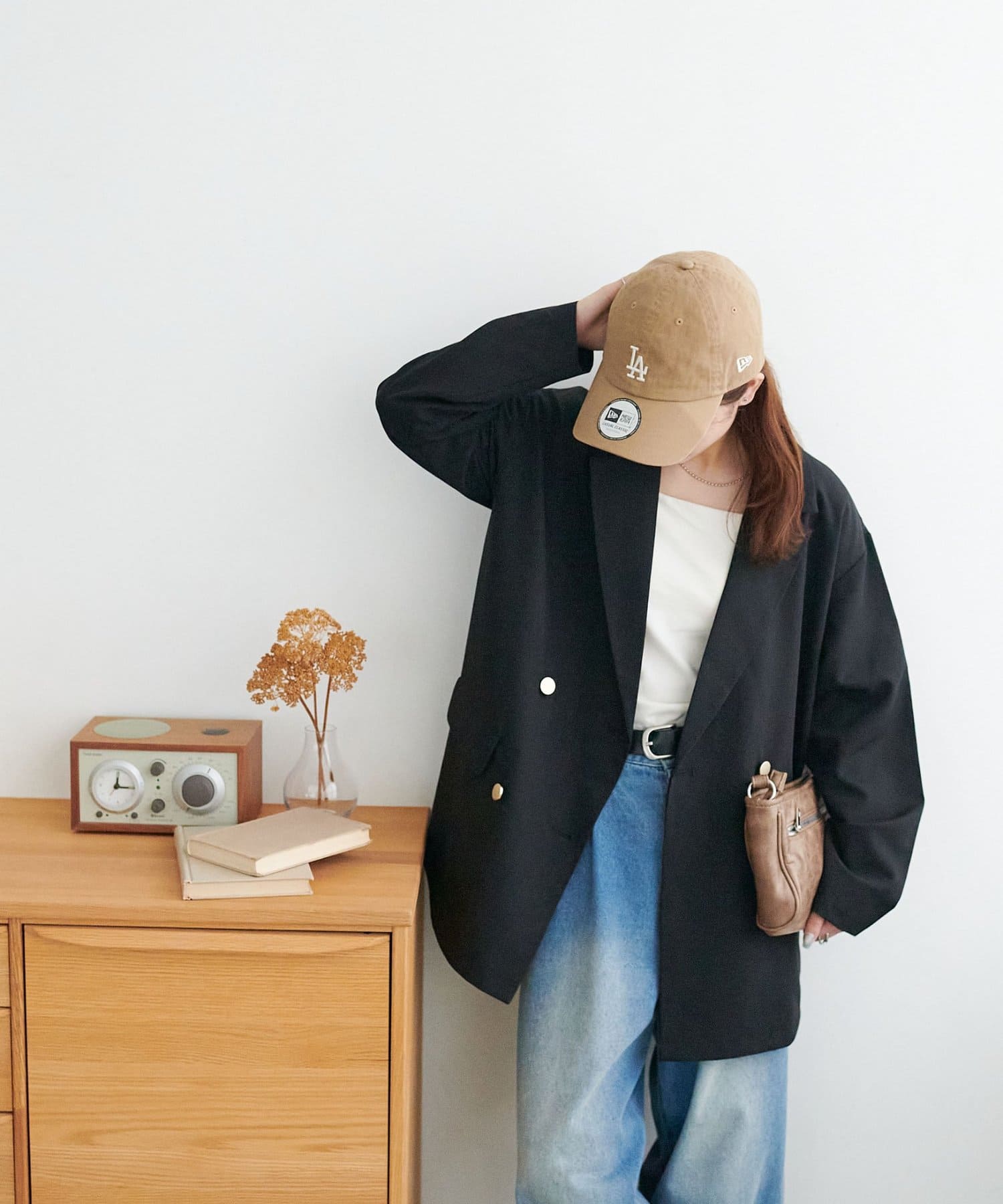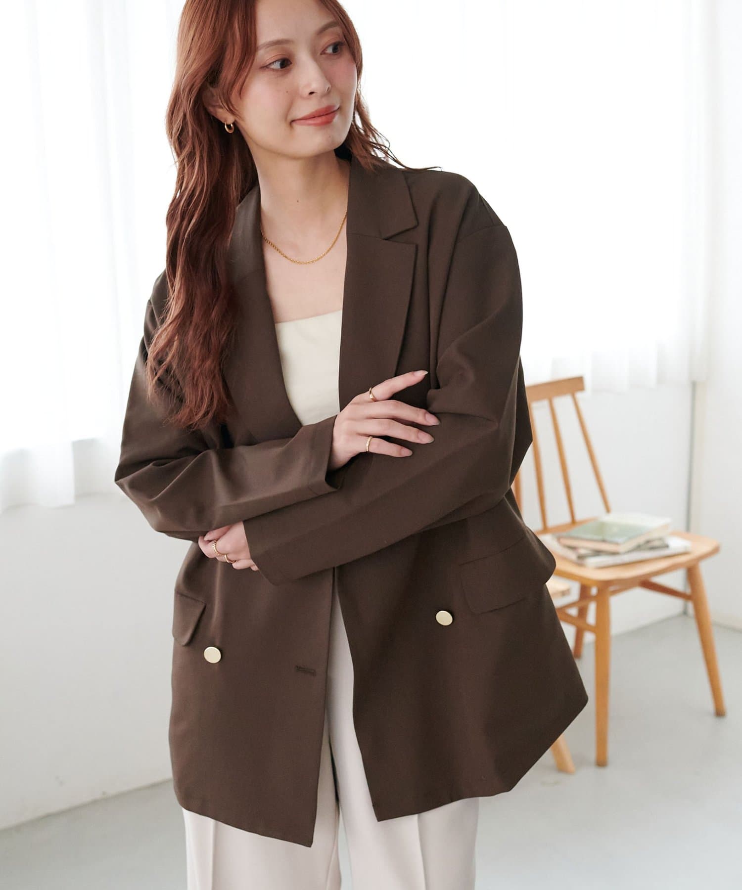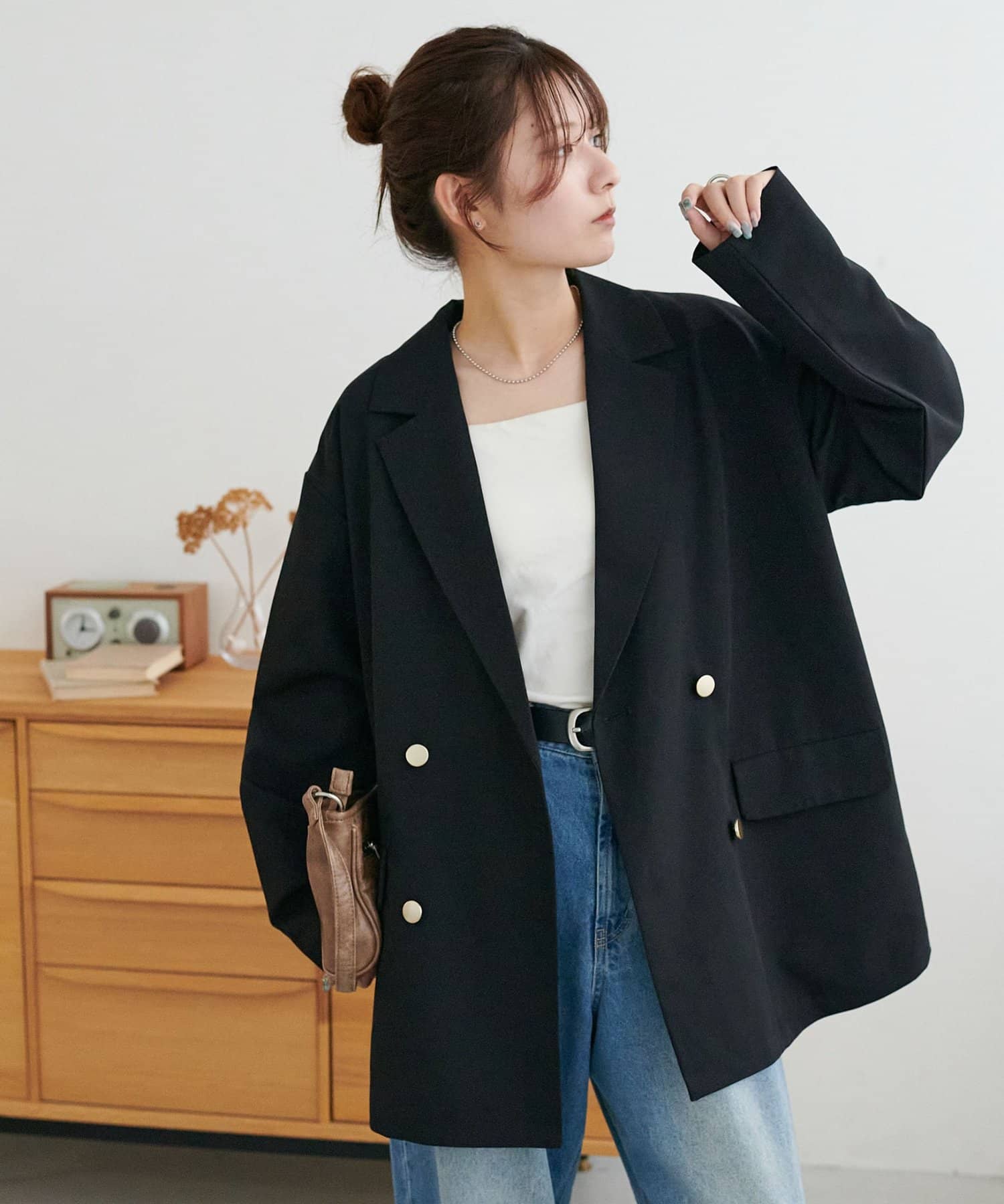 ゆったりとしたシルエットと、金ボタンがアクセントになったテーラードジャケット。