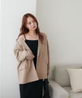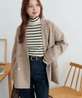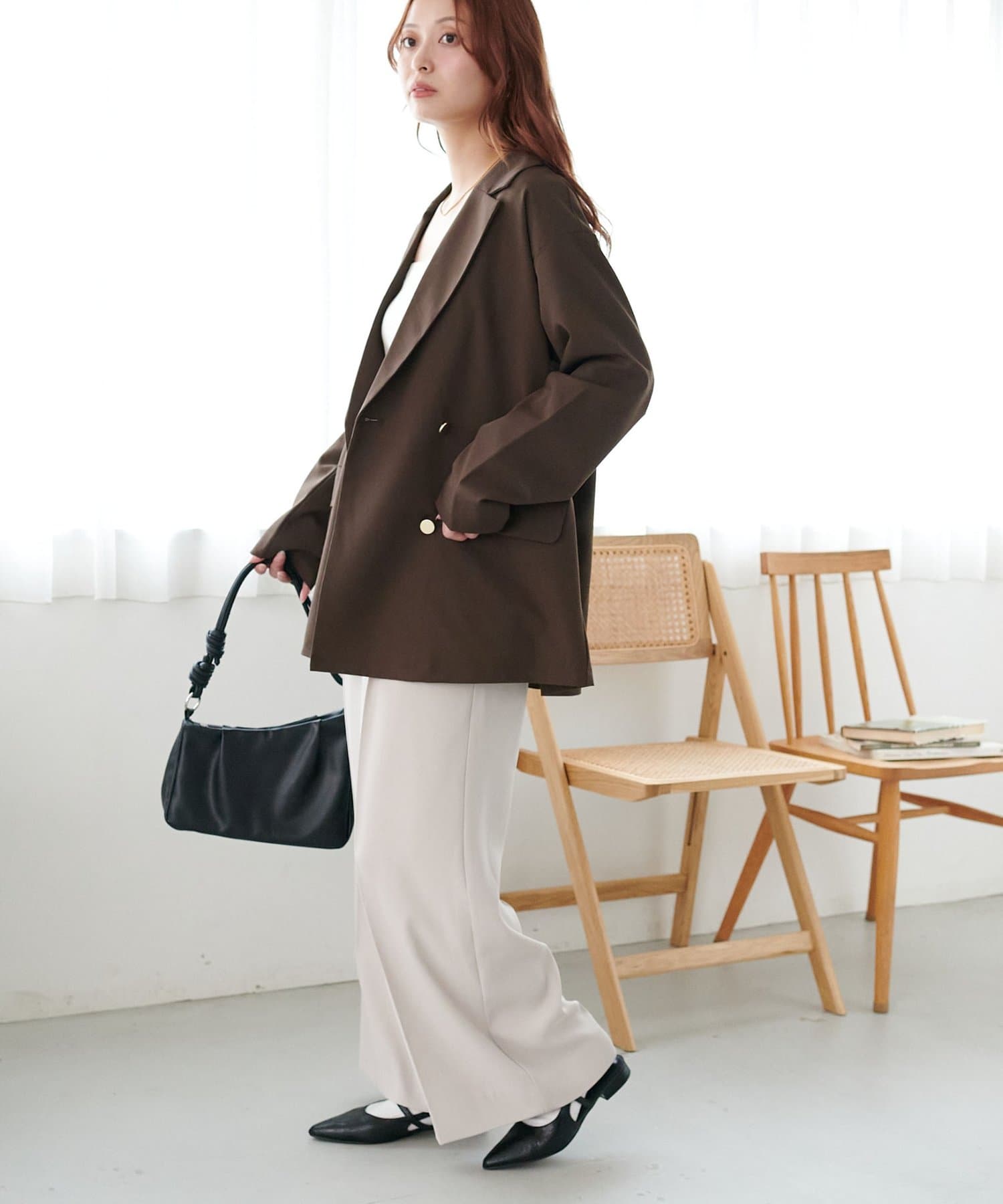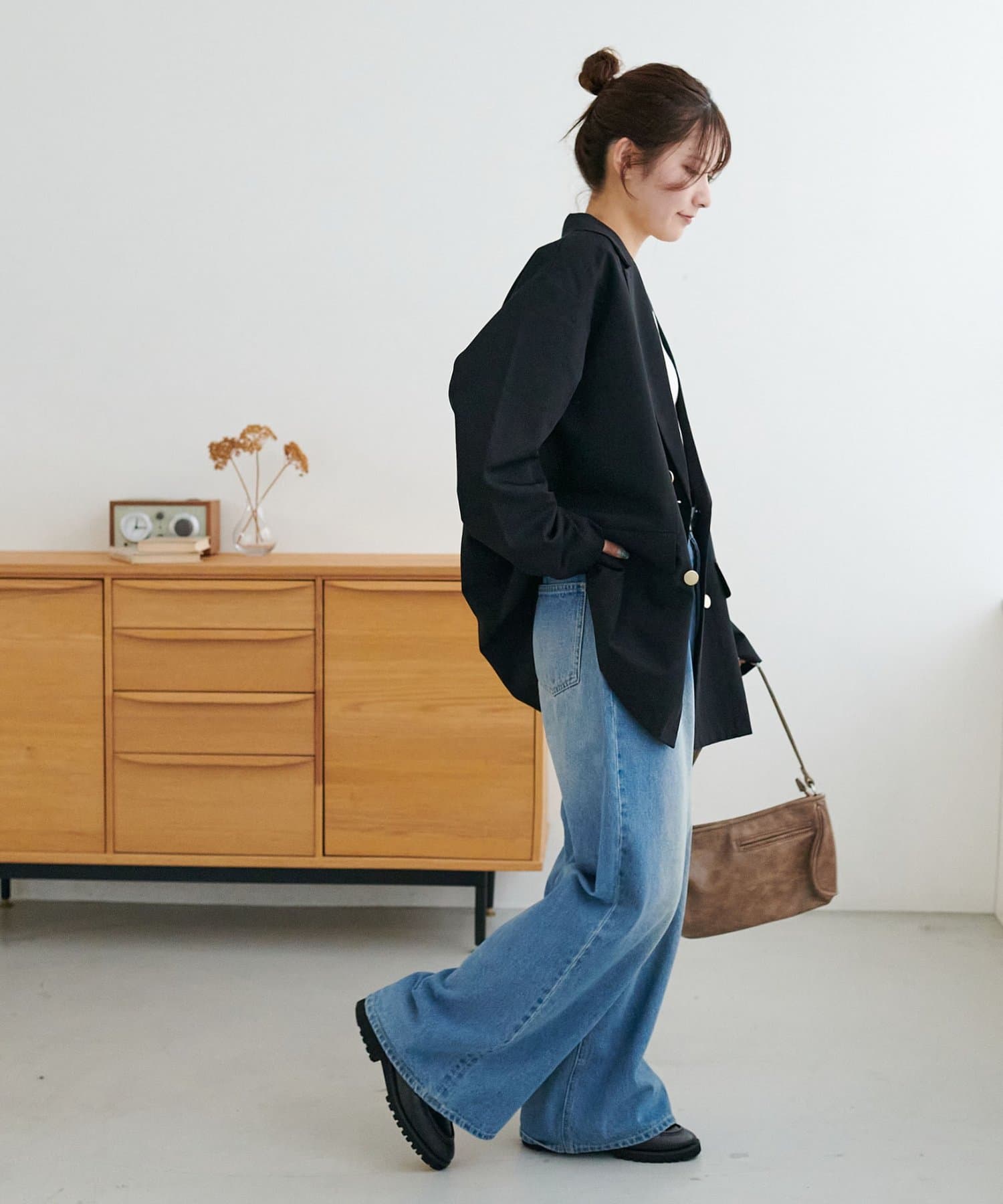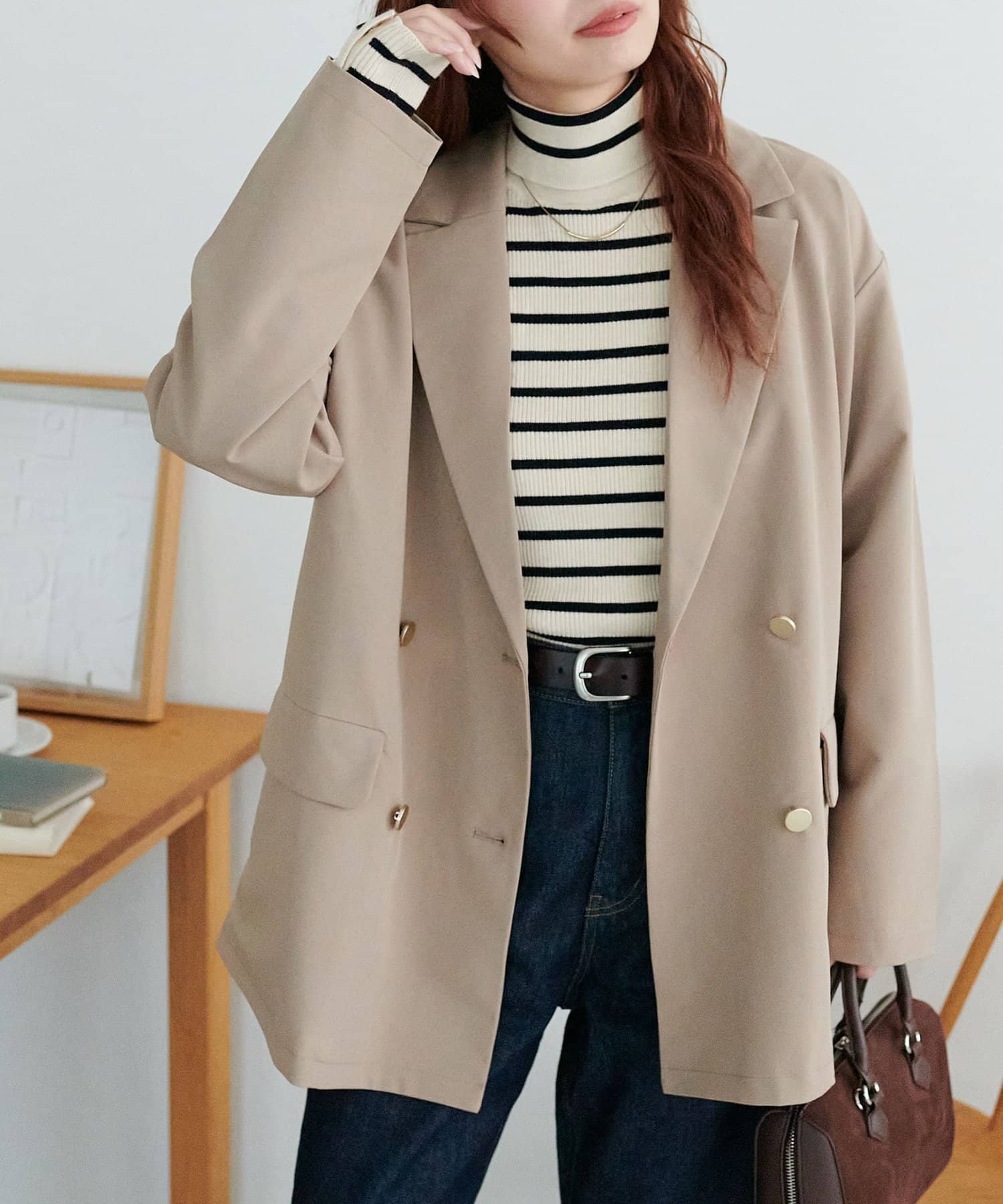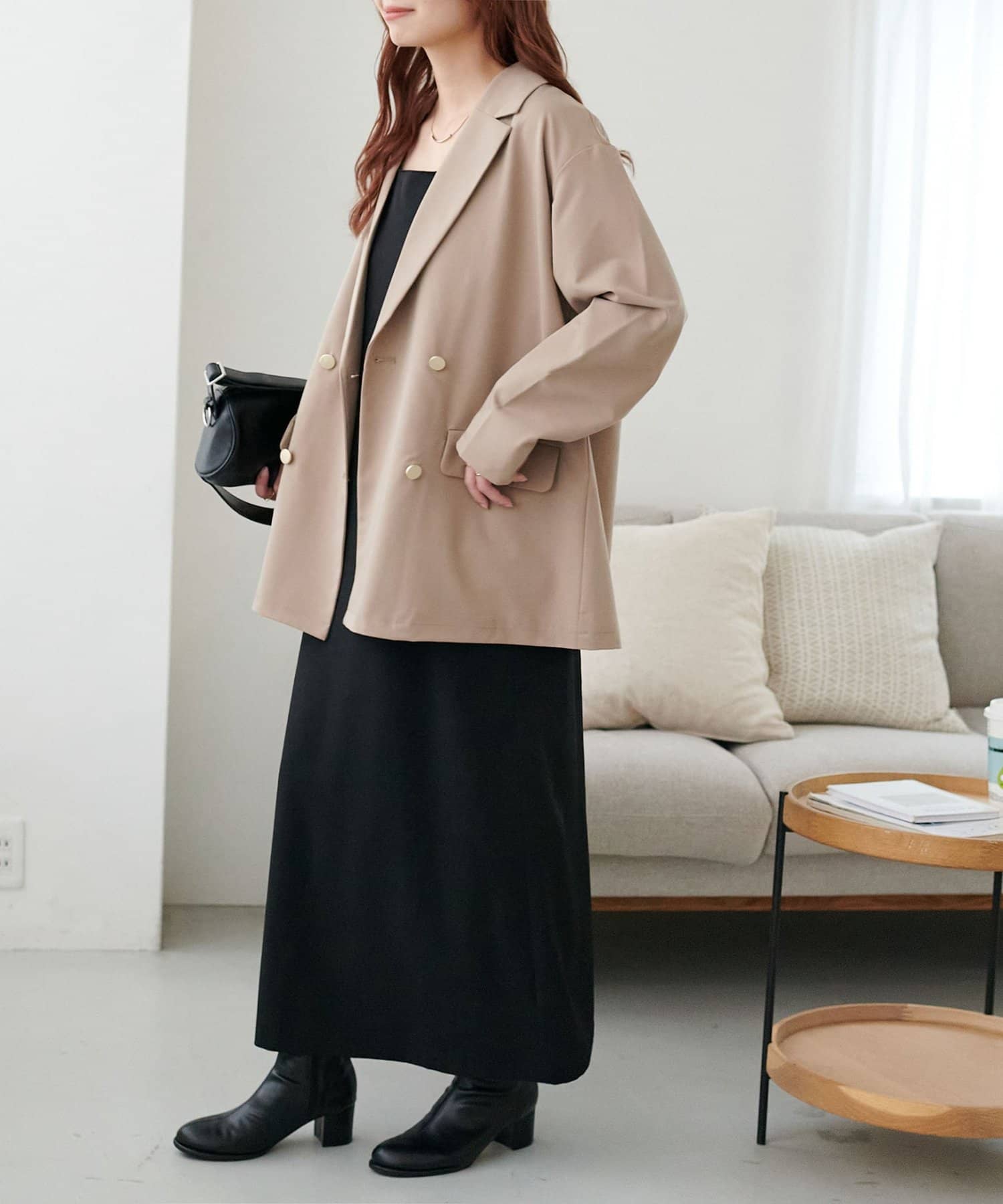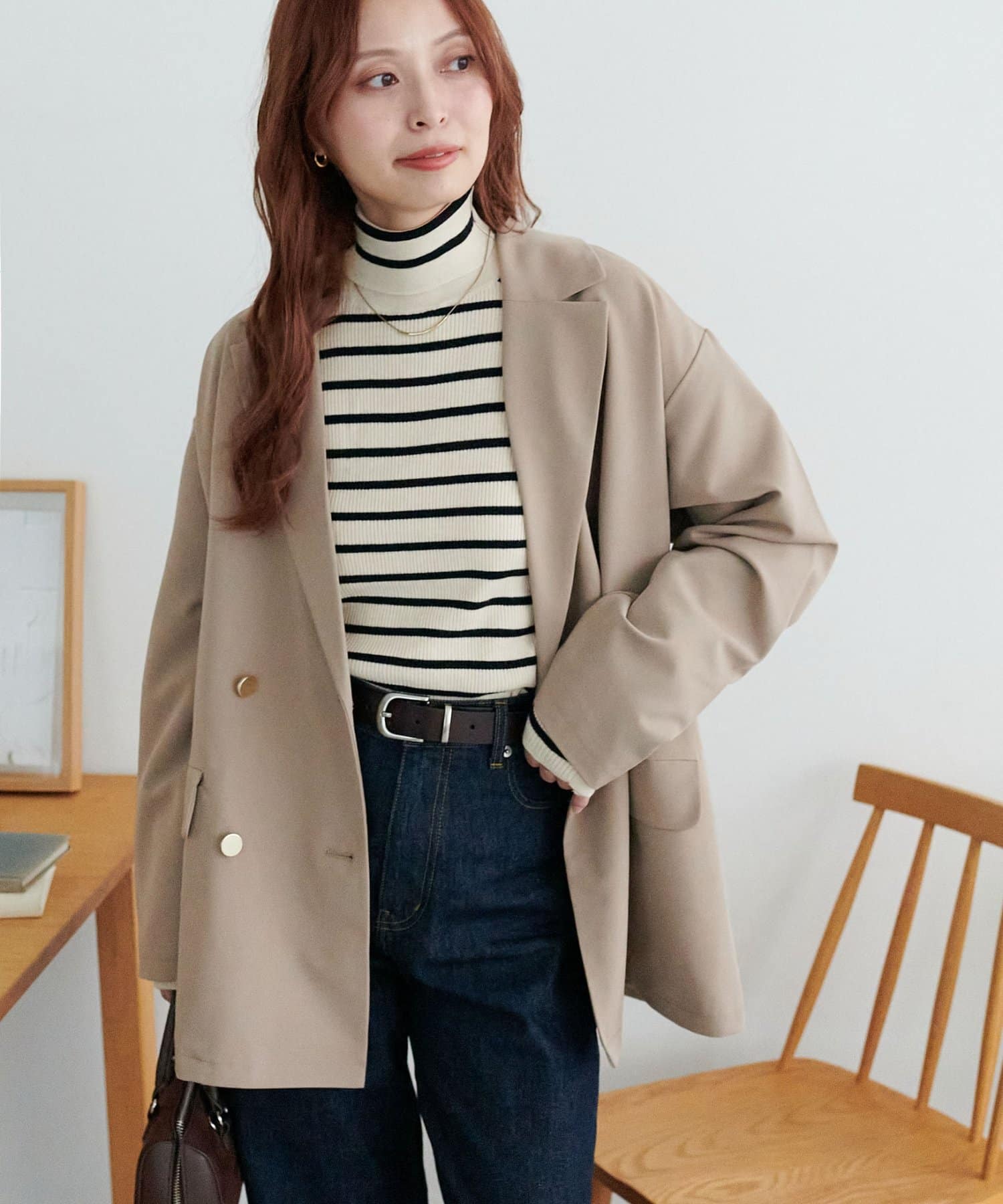 ゆったりとしたシルエットと、金ボタンがアクセントになったテーラードジャケット。