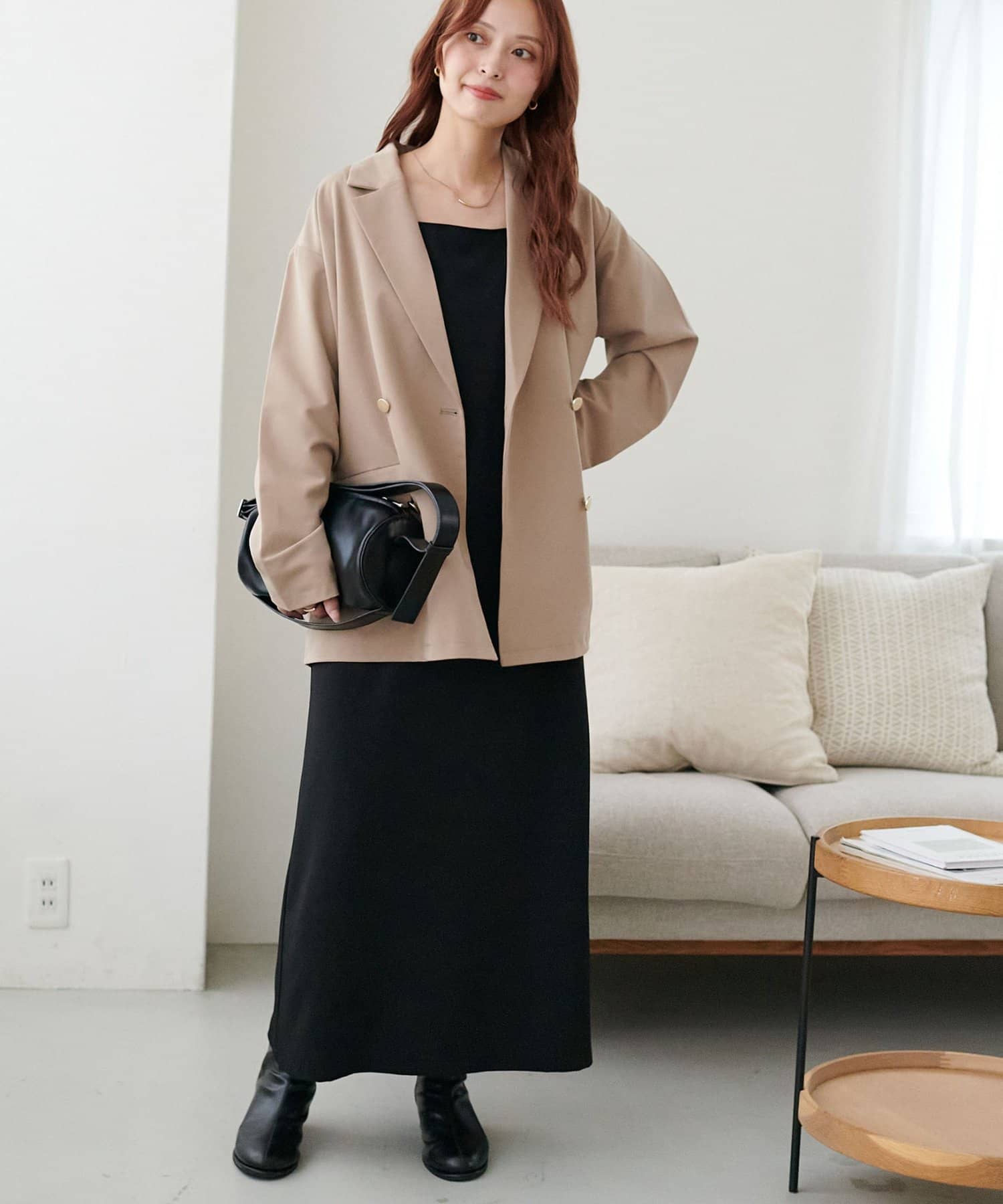 ・162cmスタッフ:ヒップが隠れる丈感で体型カバーもしてくれる優れもの!羽織るだけでサマになるので、シンプルなコーデにピッタリな1枚です◎