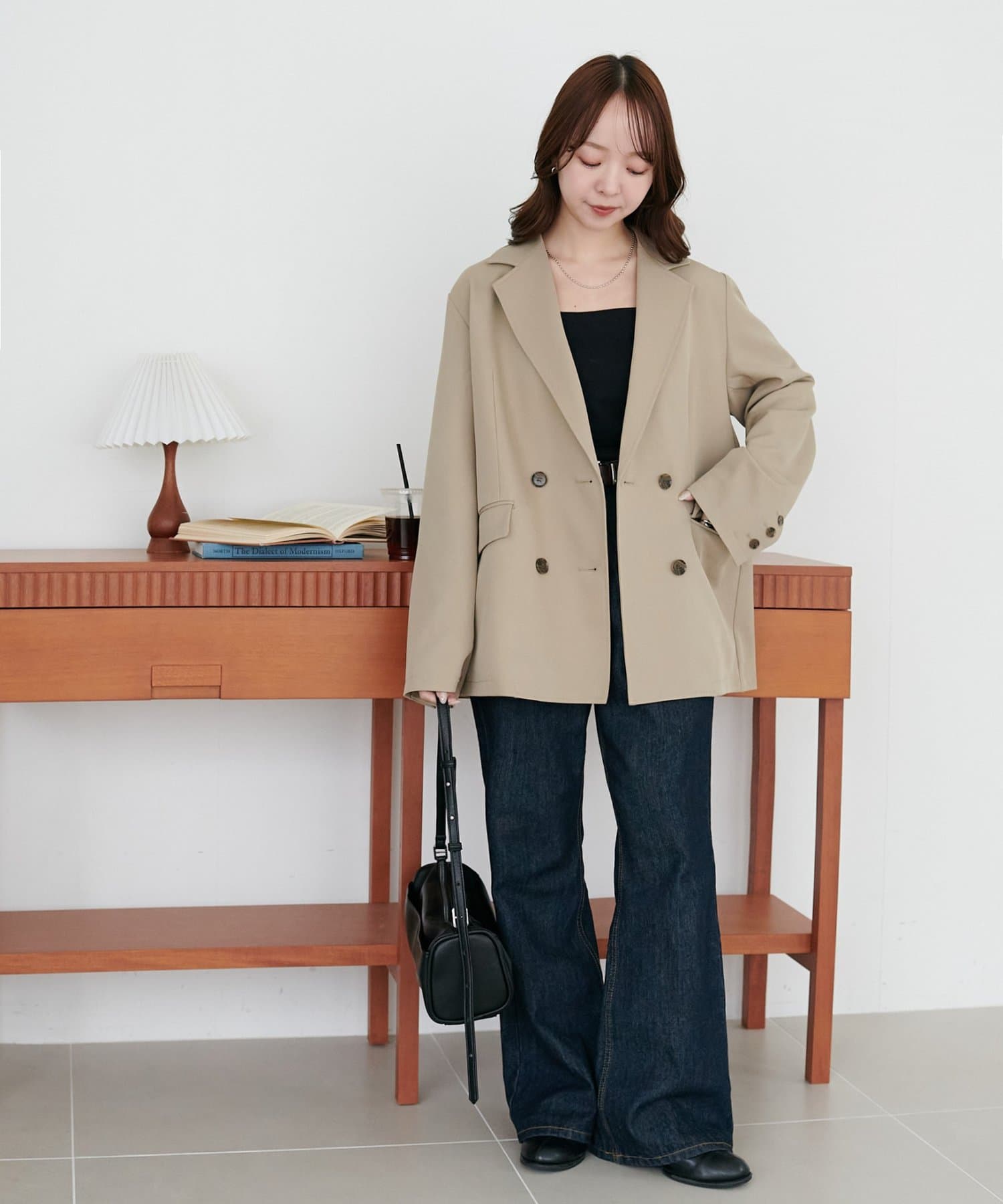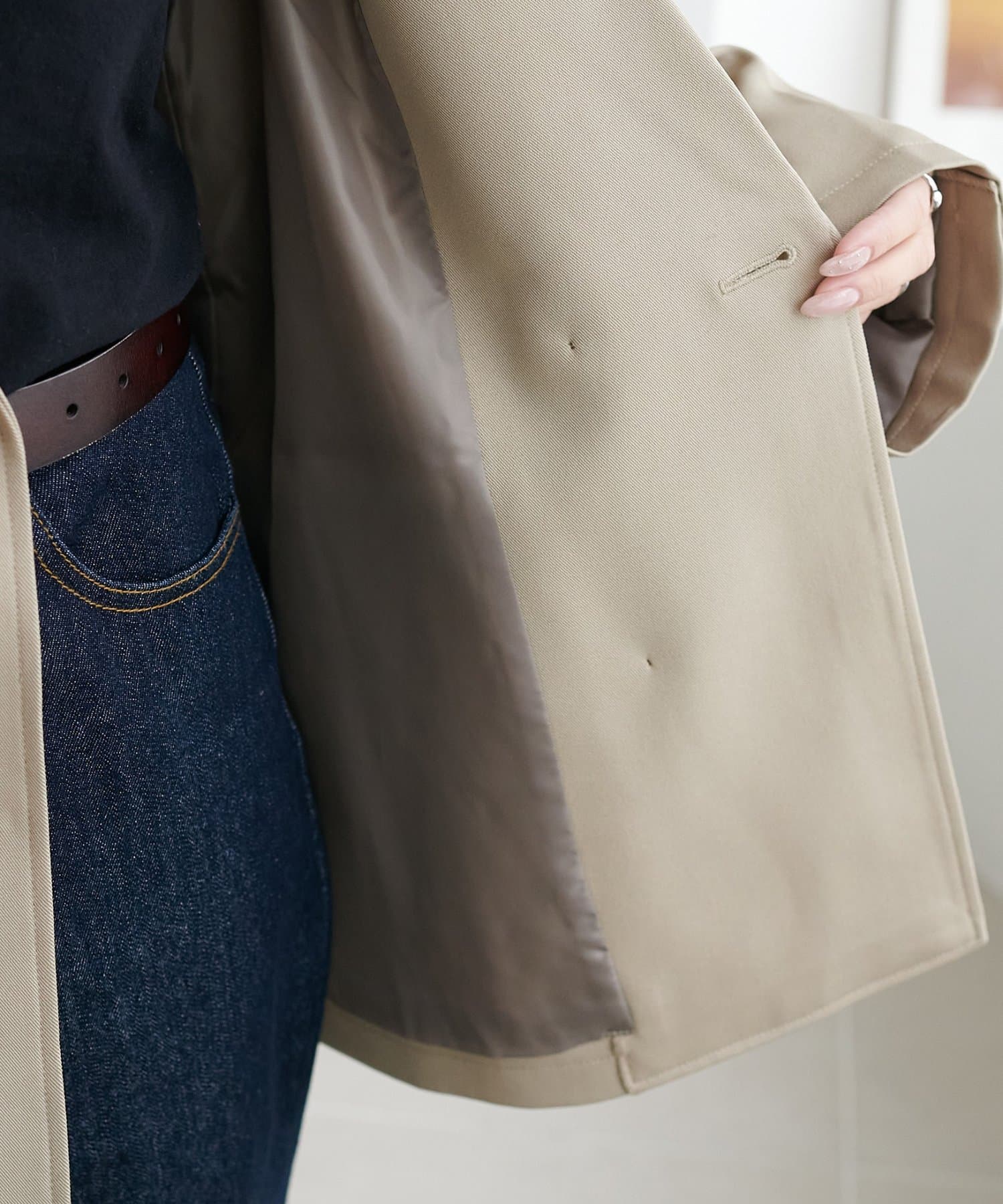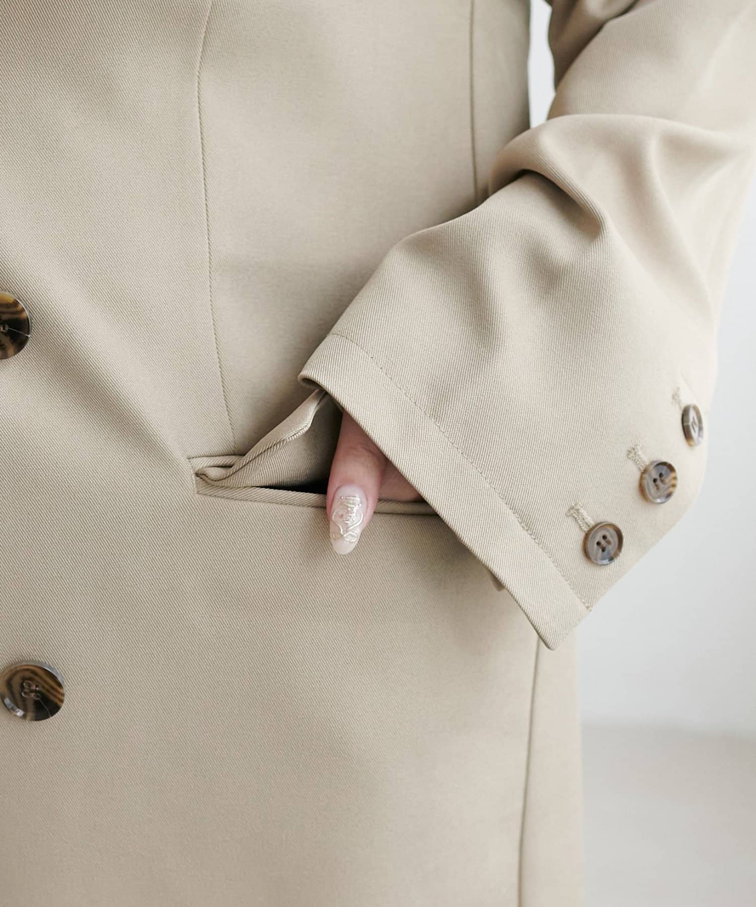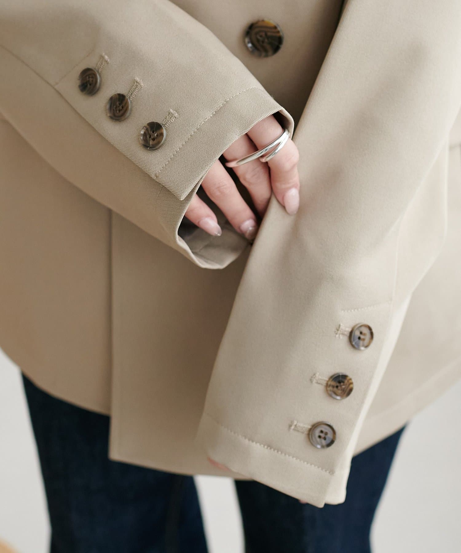 大きめのボタンとややオーバーなシルエットが、抜け感のあるモードな雰囲気を演出します♪