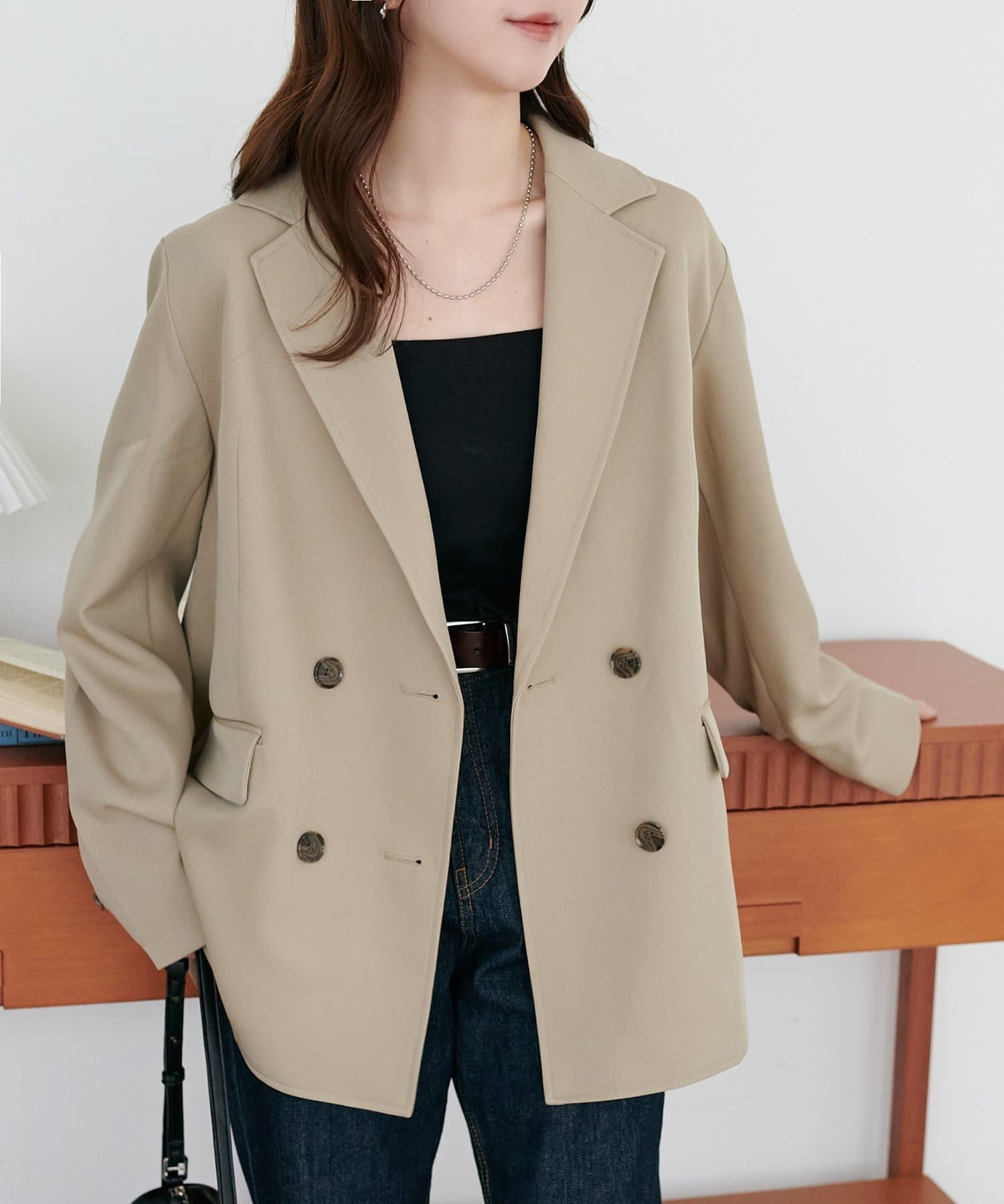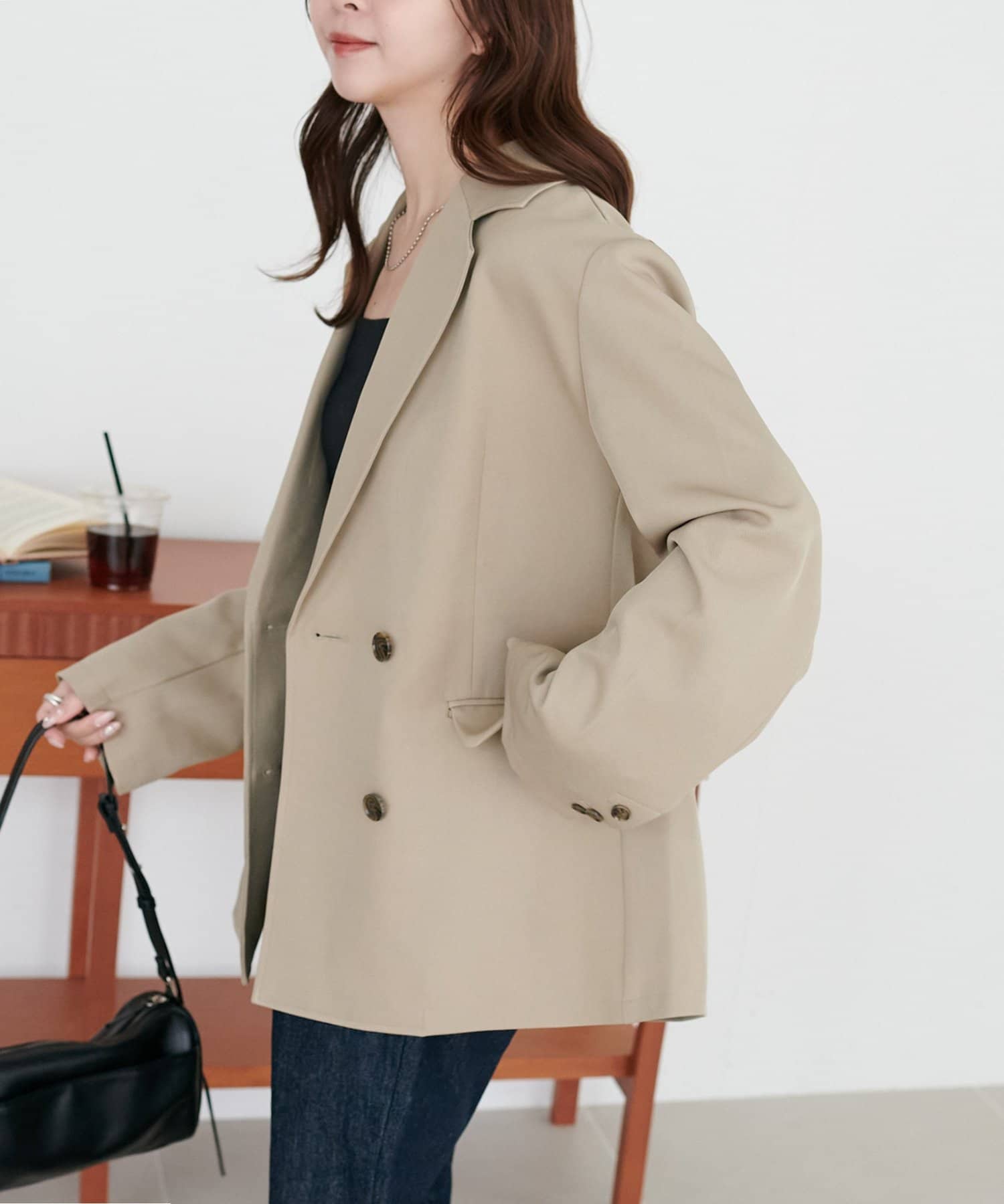 【新色追加/オンオフ着れる♪】Wブレストテーラードジャケット