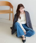 シンプルなデザインなのでデザイン性のあるブラウスやシャツをレイヤードした着こなしもおすすめです!
