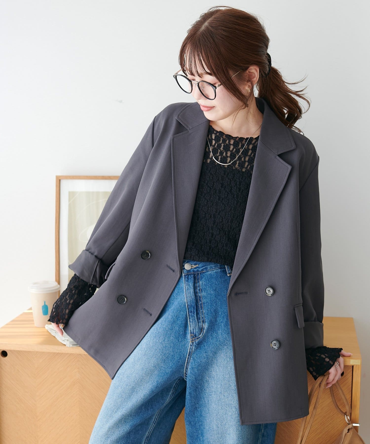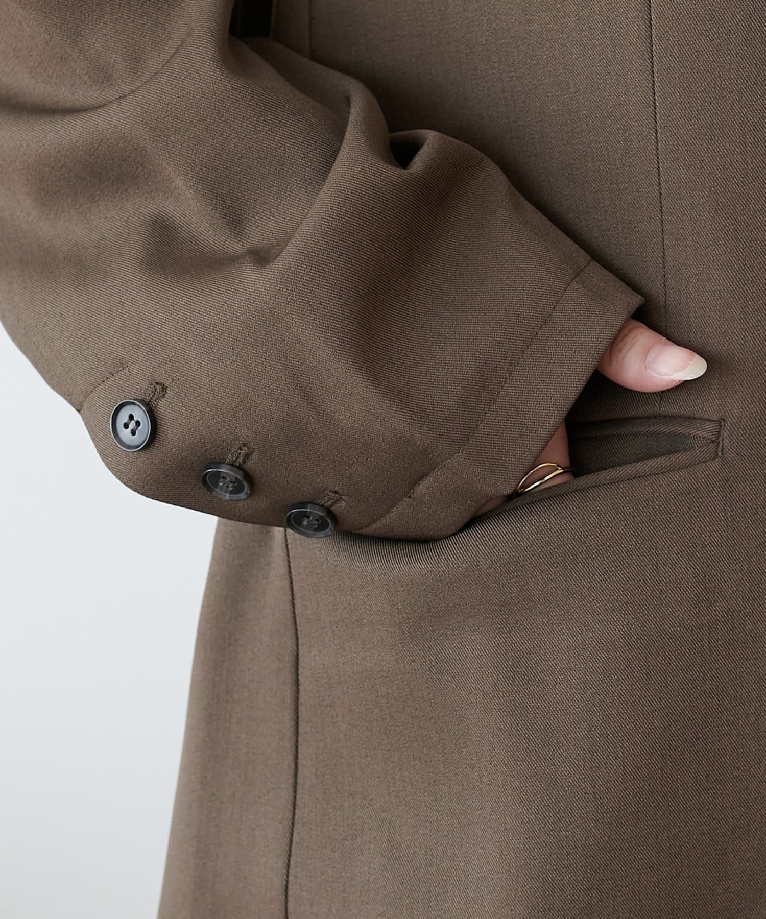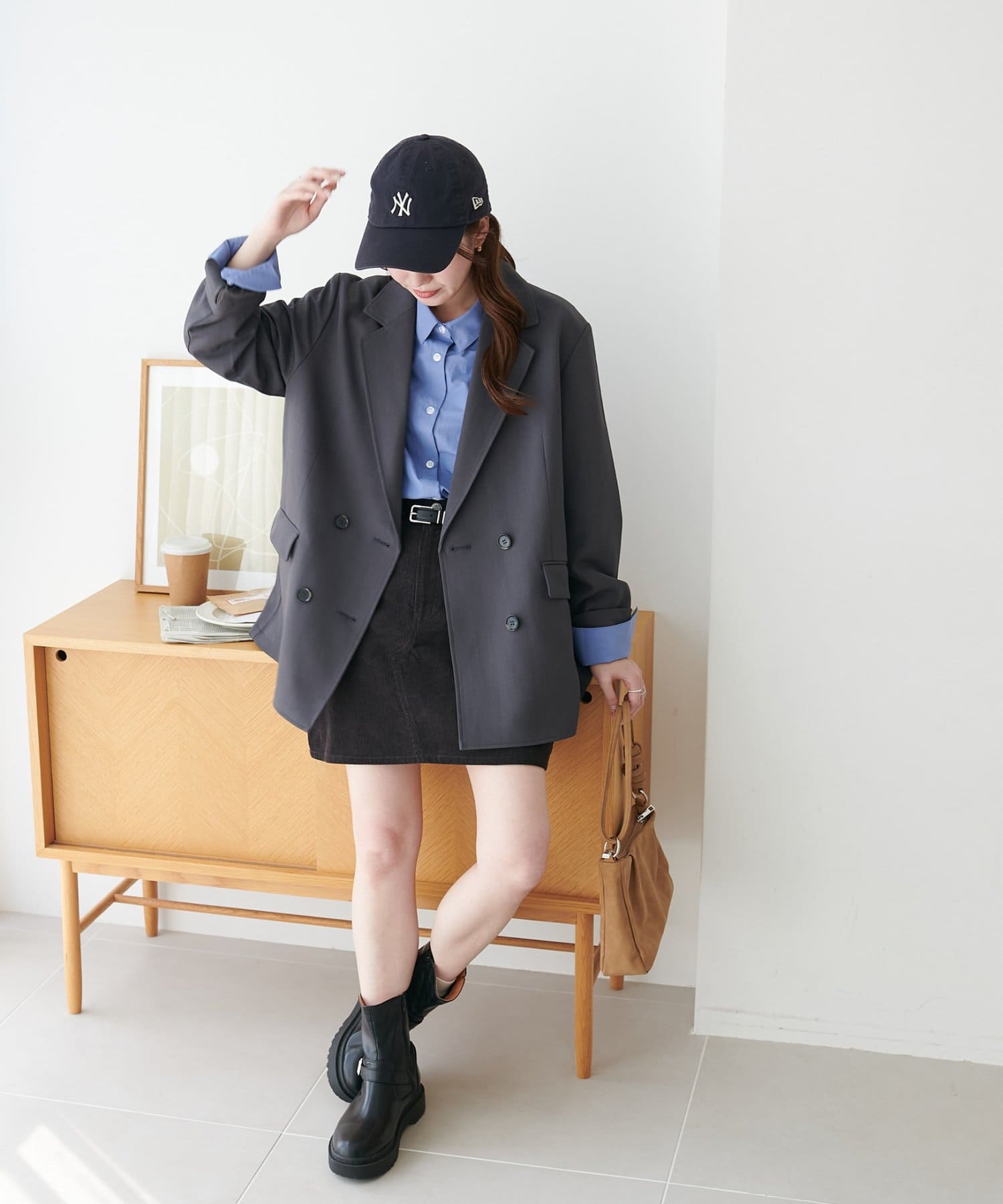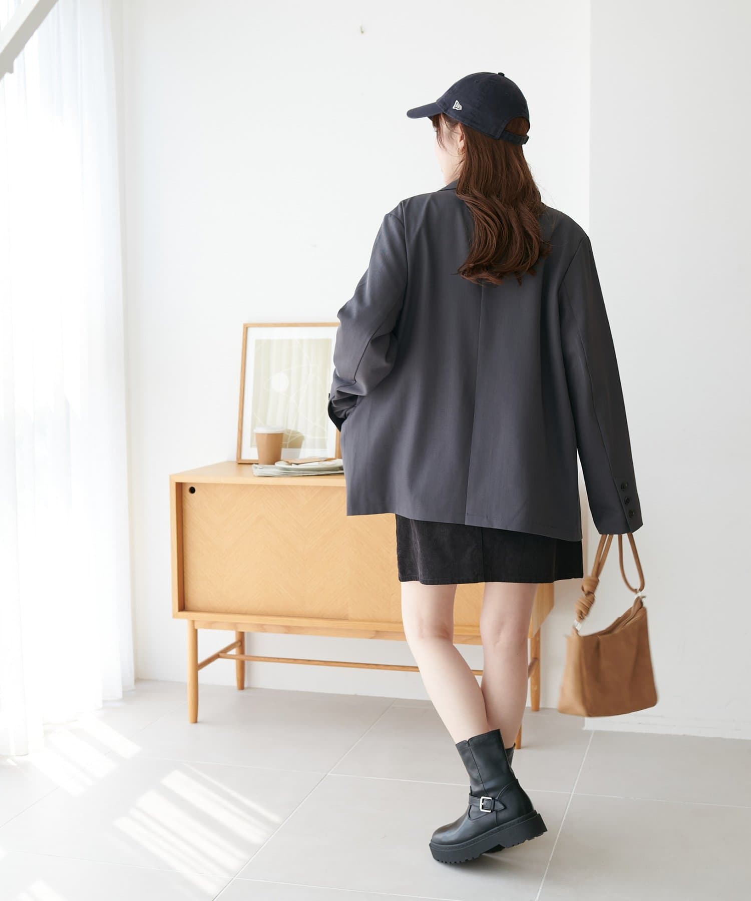 大きめのボタンとややオーバーなシルエットが、抜け感のあるモードな雰囲気を演出します♪