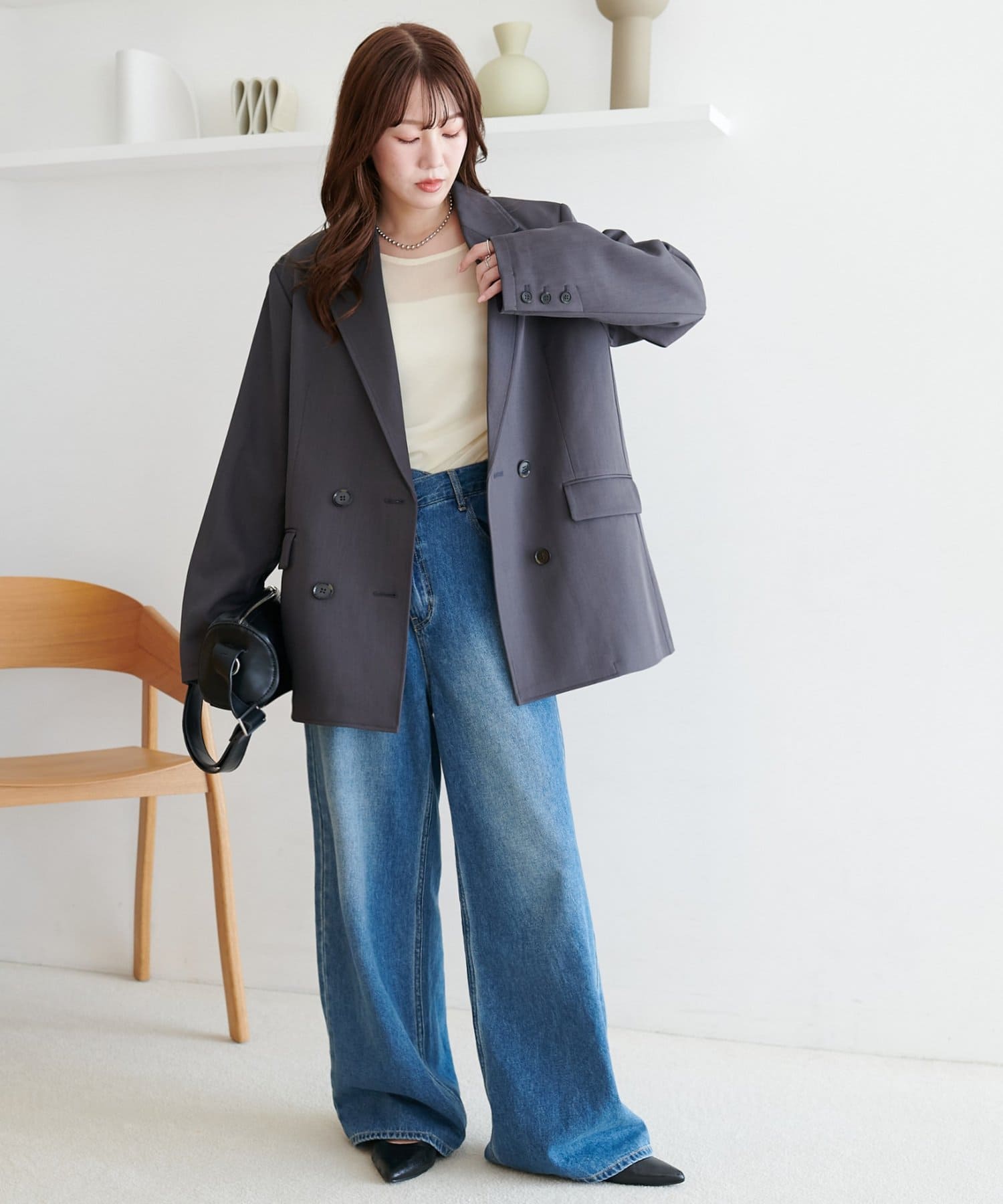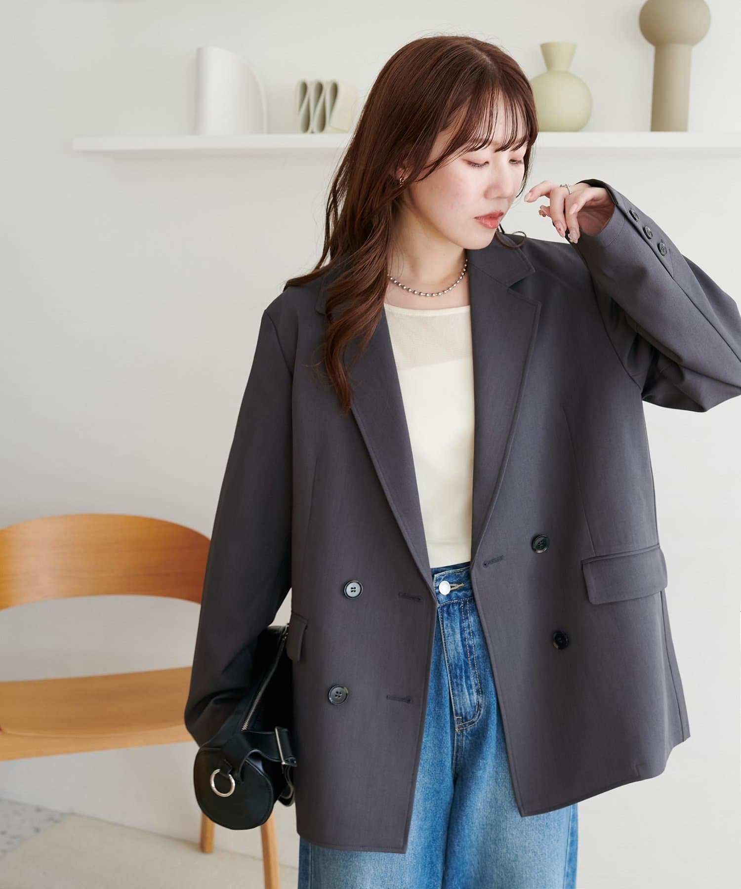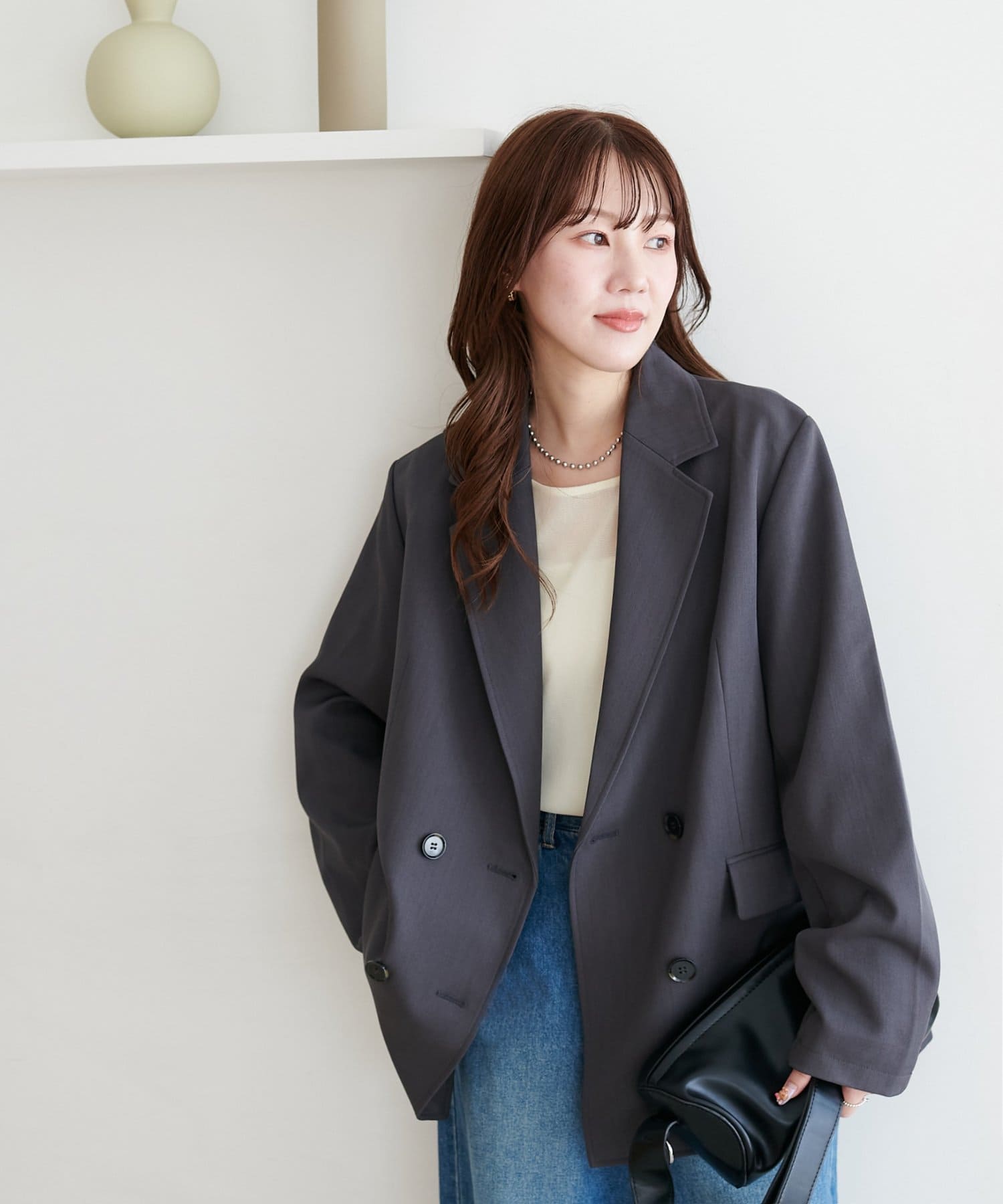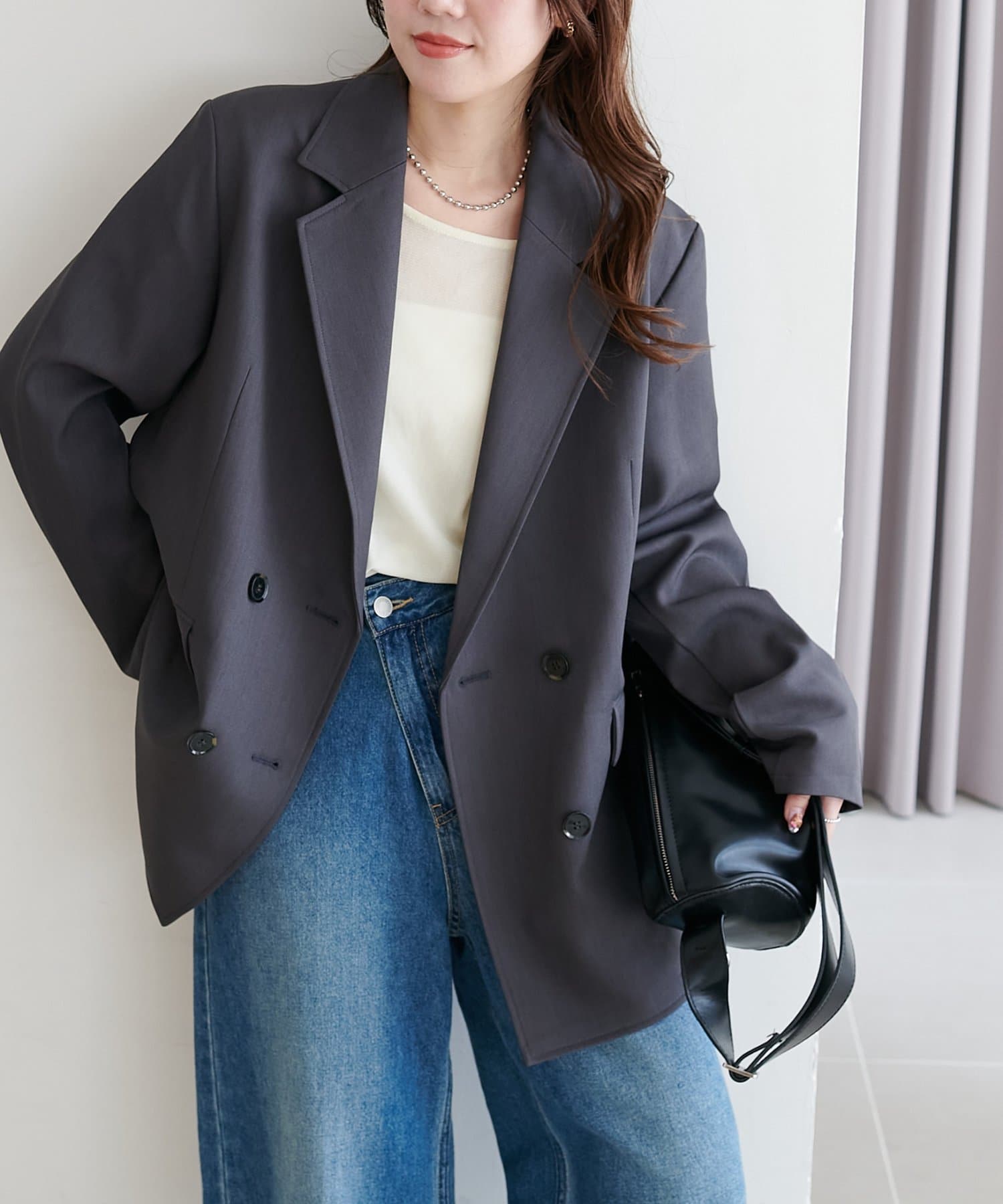 シンプルながらも存在感のあるWブレスト仕様のテーラードジャケット。