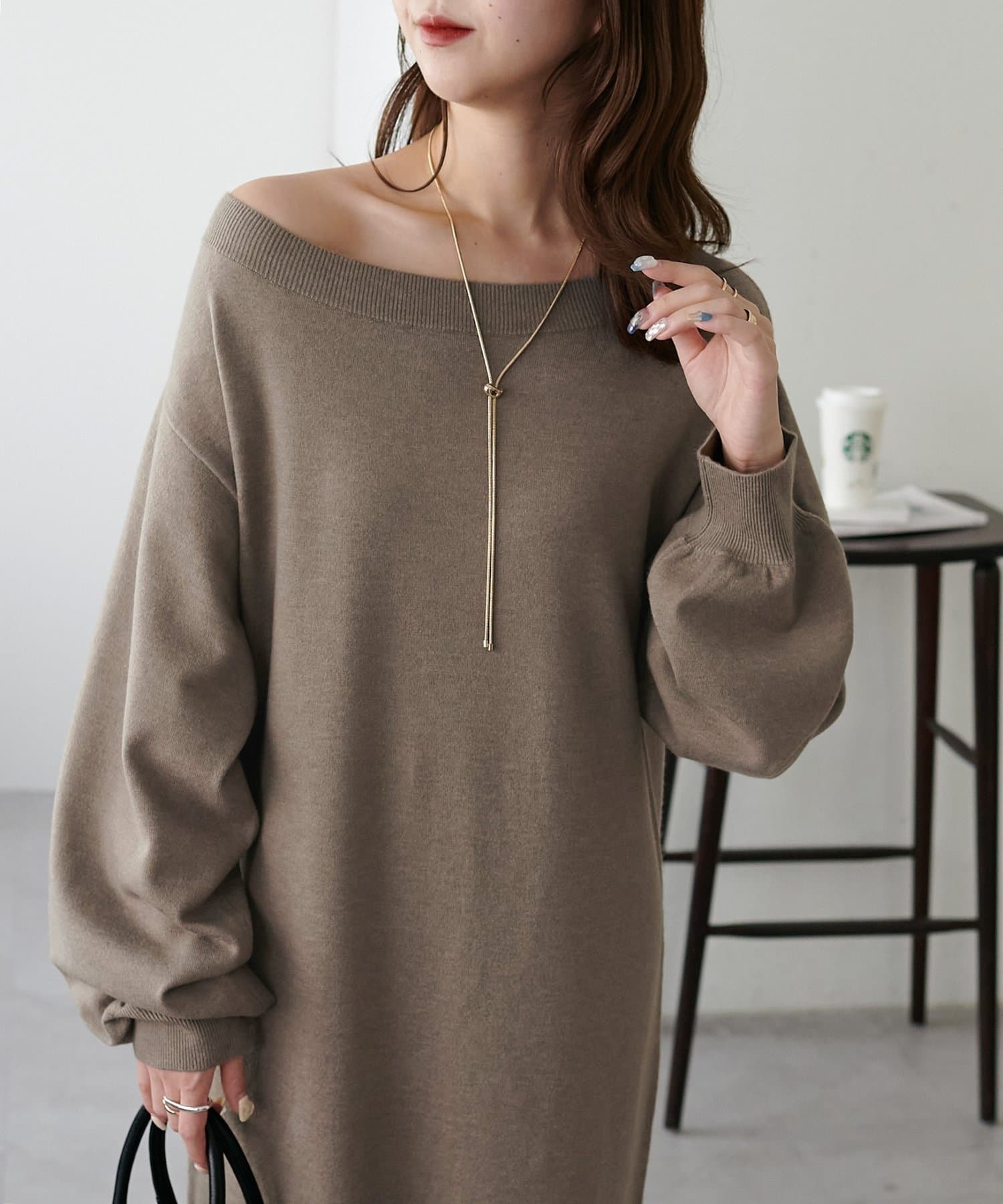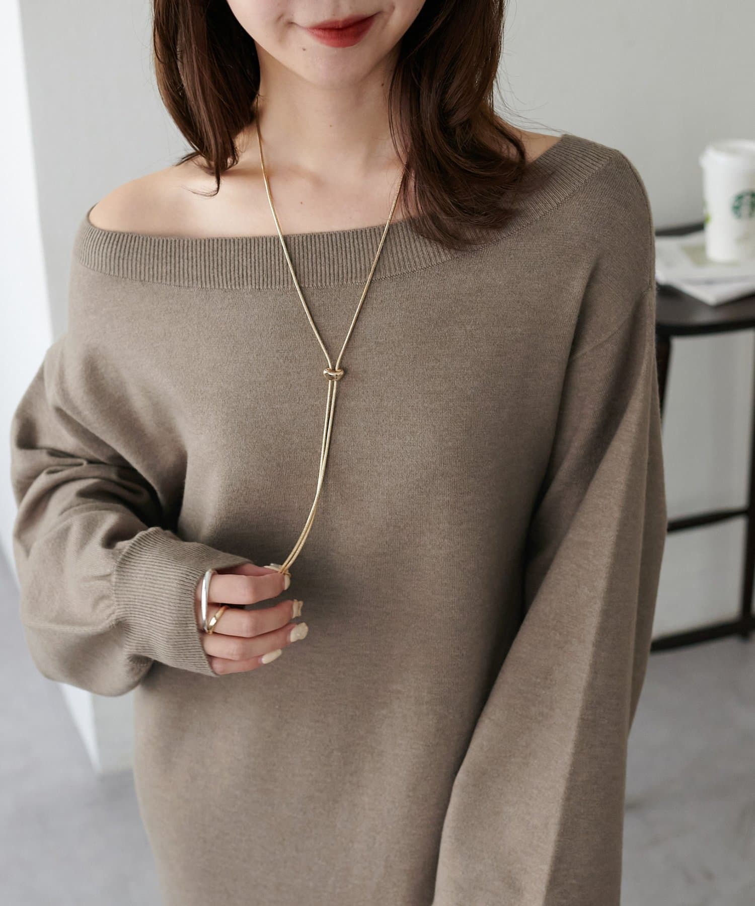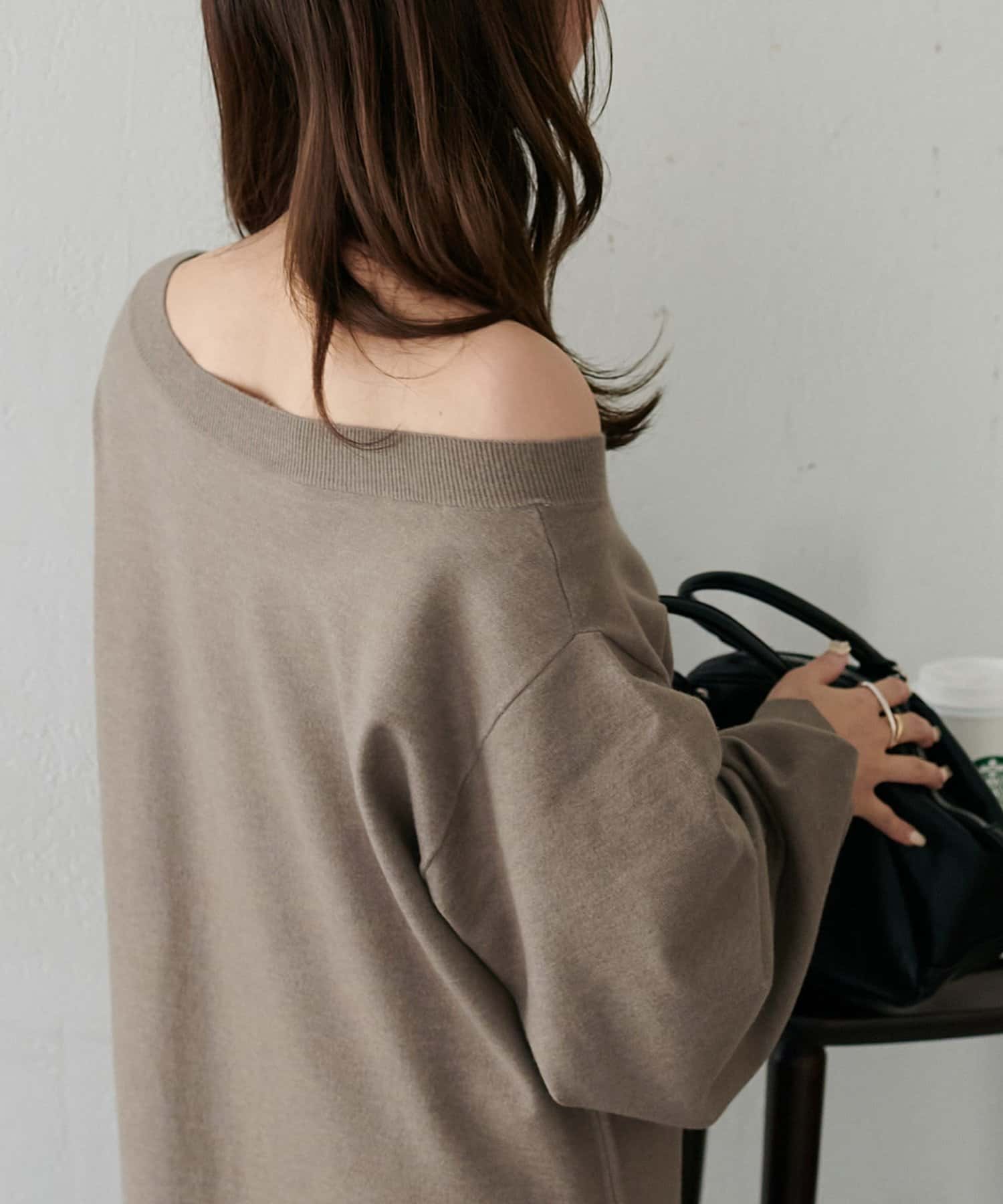 肩を少し落として着られる絶妙な開き具合のワンショルデザインで、女性らしい抜け感をプラスします。