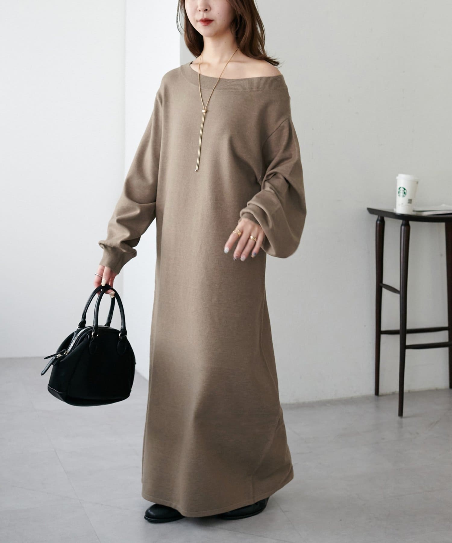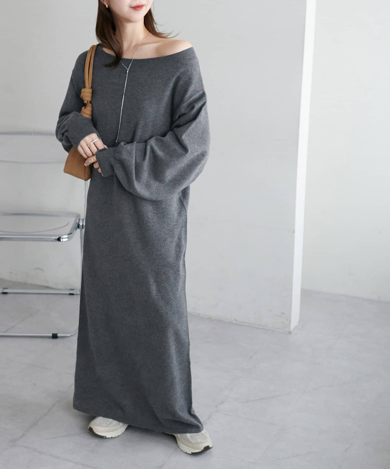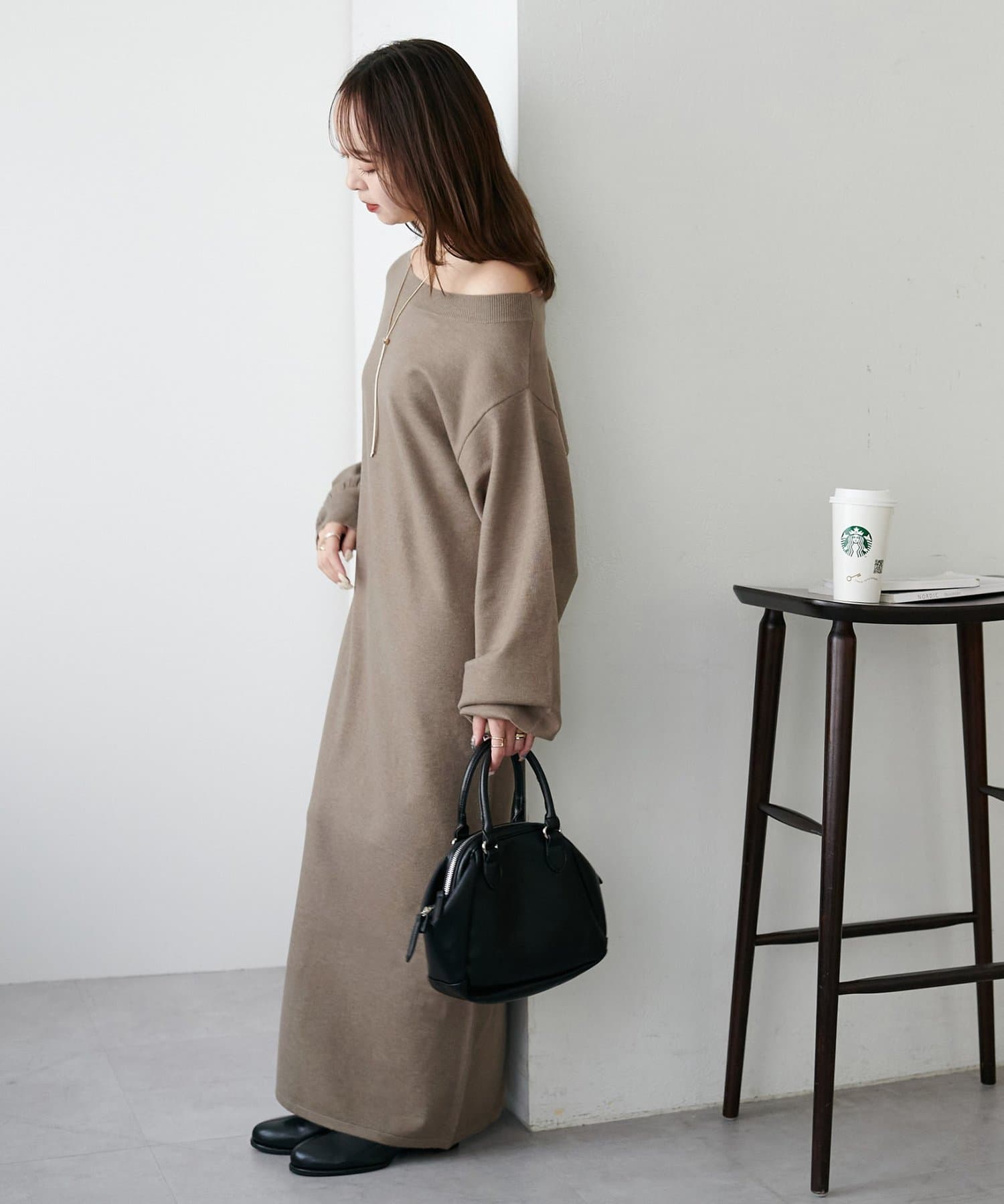 肩を少し落として着られる絶妙な開き具合のワンショルデザインで、女性らしい抜け感をプラスします。
