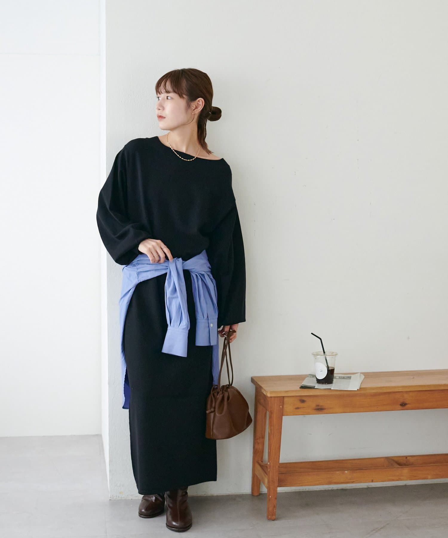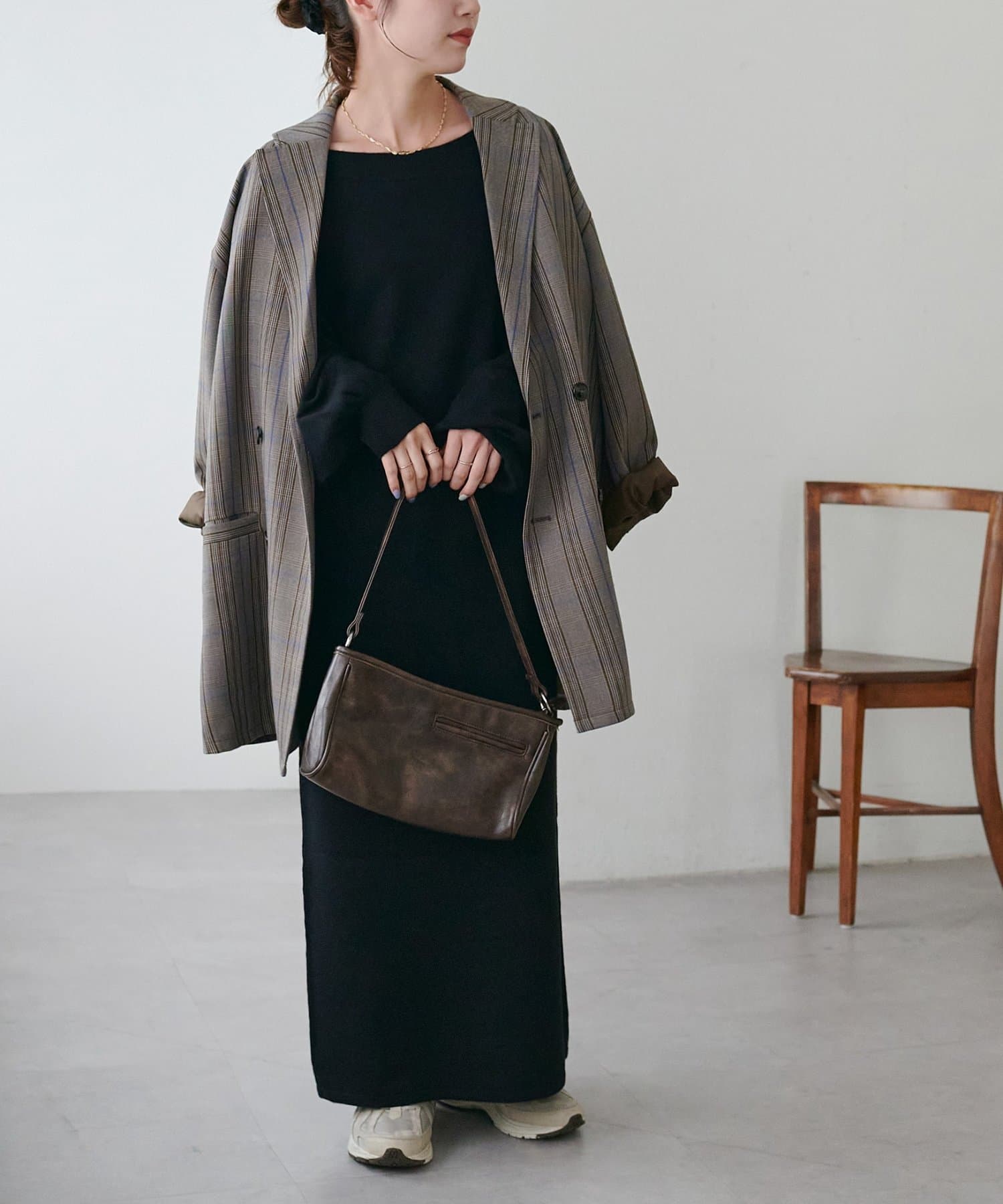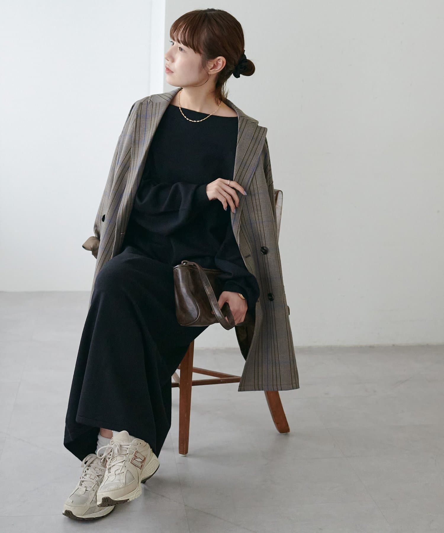ストンと落ちるIラインシルエットで、全体的にゆとりを持たせつつも、体に沿いすぎない絶妙なバランス。