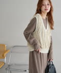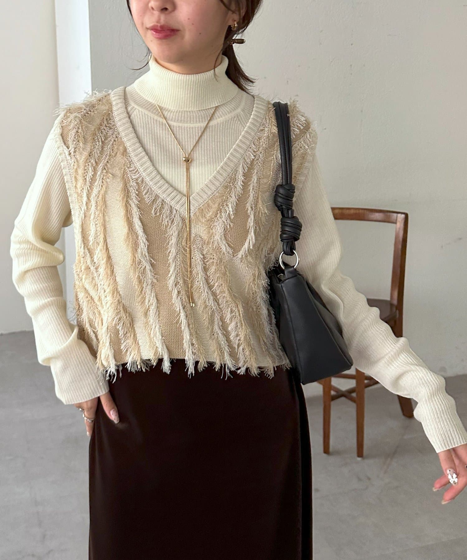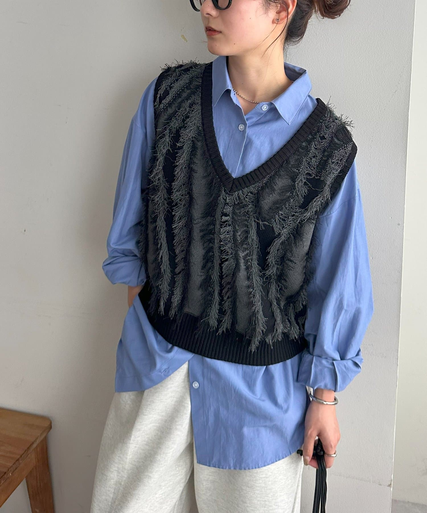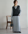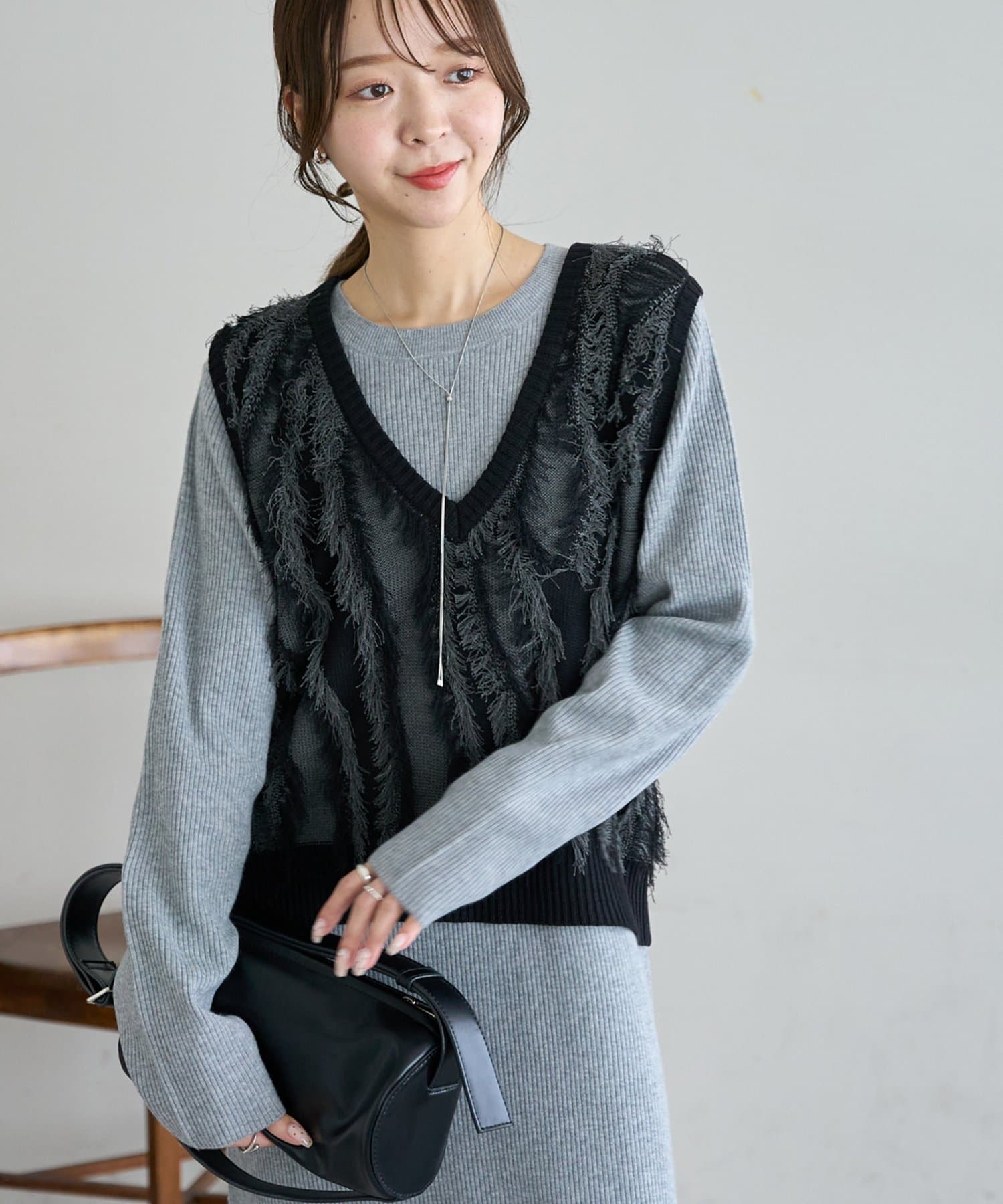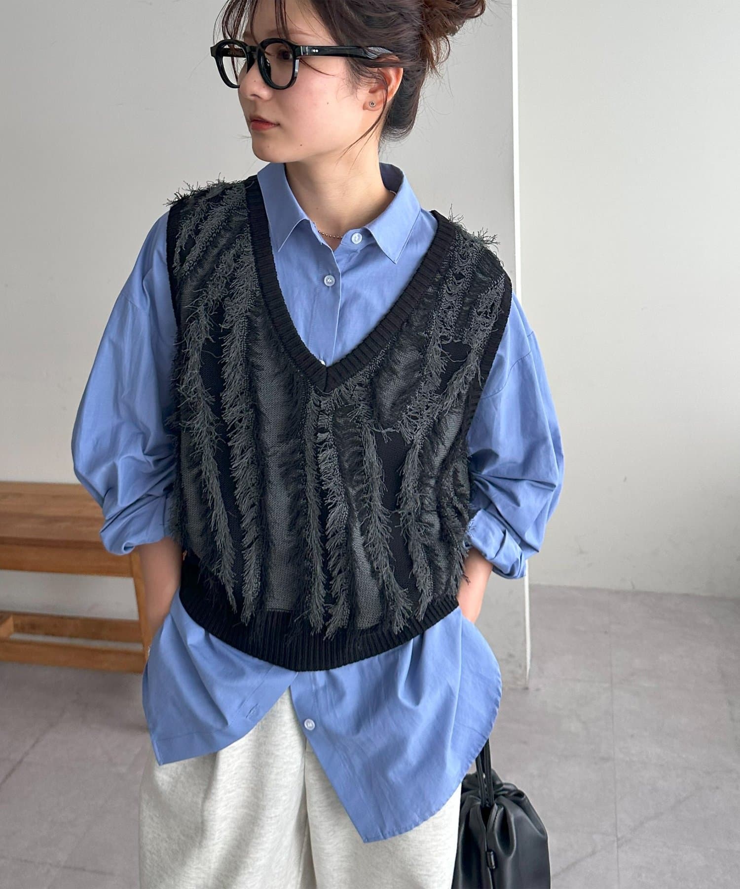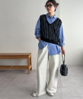 ベストはvネックなので、レイヤードしても顔回りがスッキリとした印象になりメリハリが出ます○