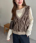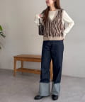 ベストは表情のある柄がコーデを華やかに仕上げます。