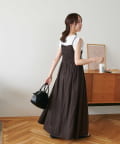 162cmスタッフ:胸下の切り替え位置が高めで、スタイルアップ効果◎Aラインシルエットでウエストまわりを気にせずリラックスして着られます。