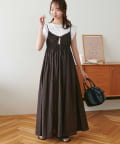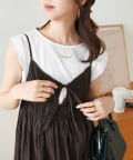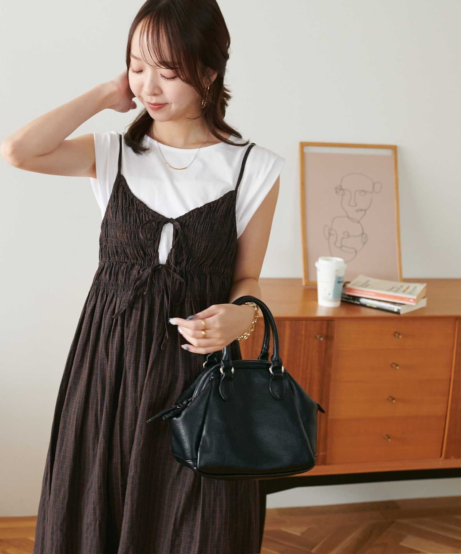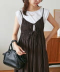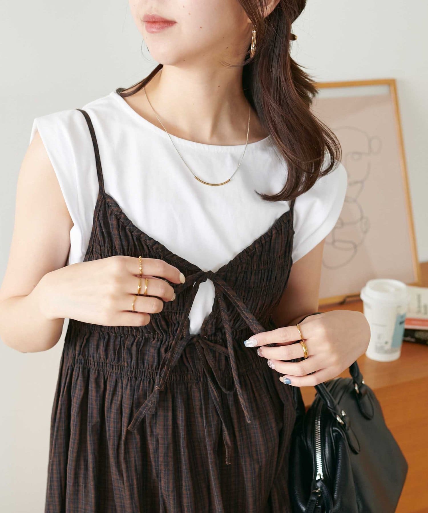 157cmスタッフ:胸元のギャザーが自然にフィットし、締め付け感なく着用できます。肩紐で長さ調節ができるのも嬉しいポイント◎