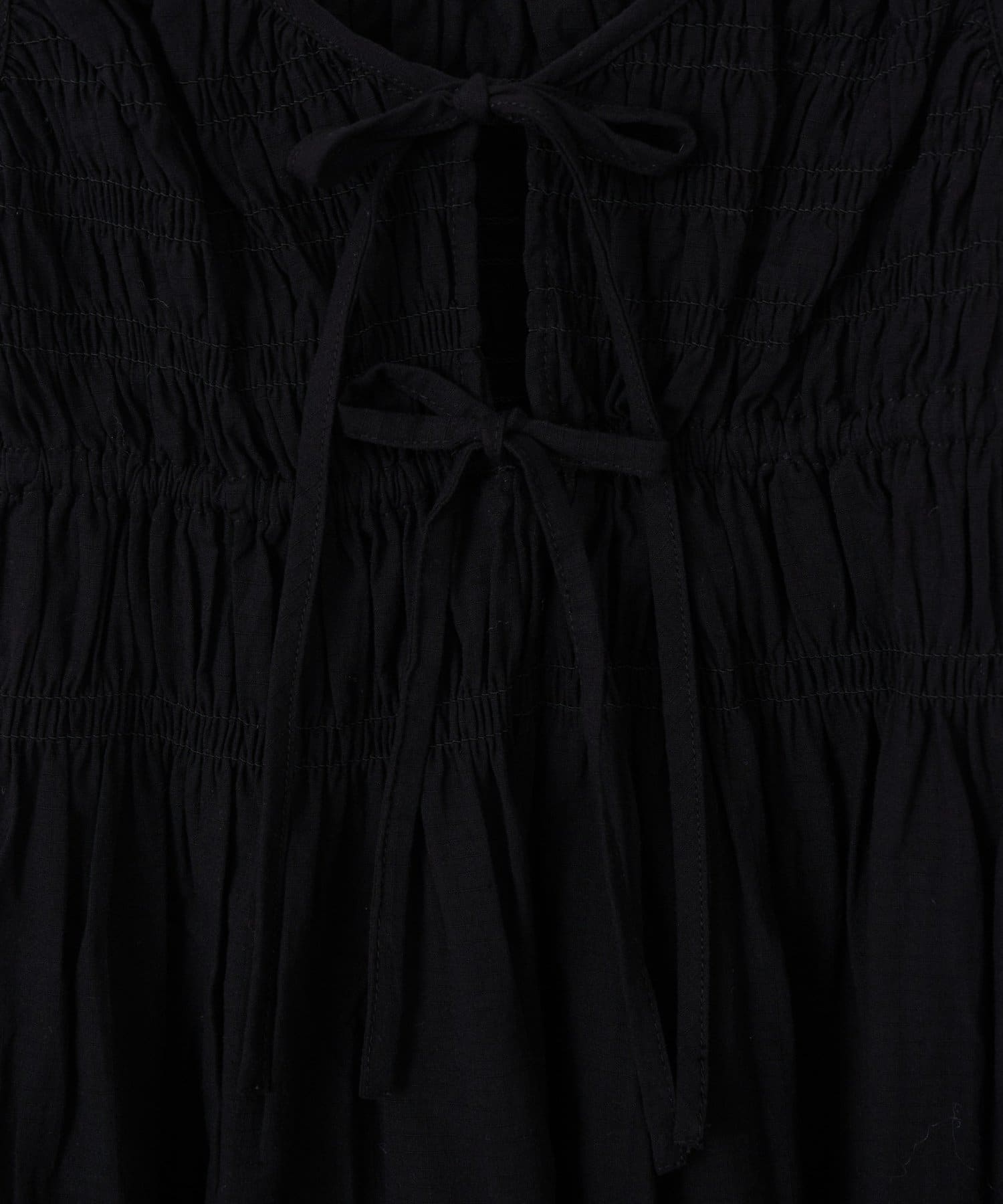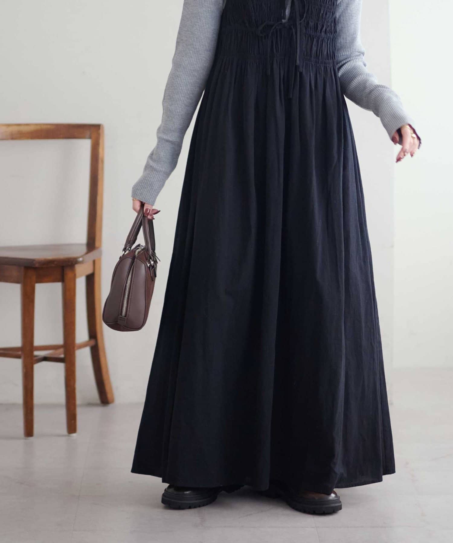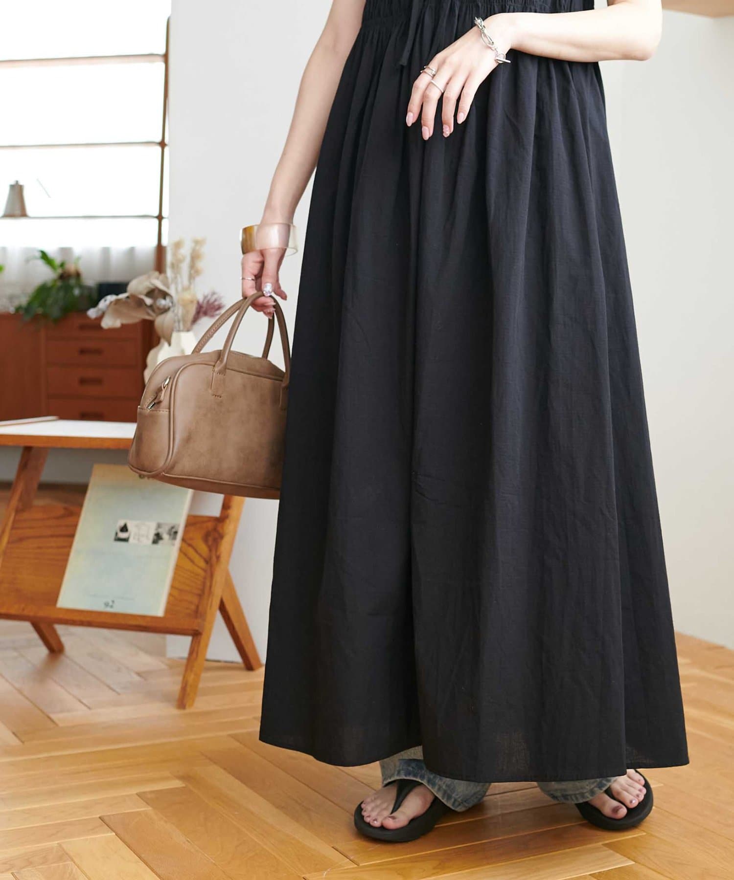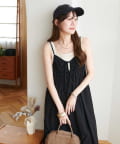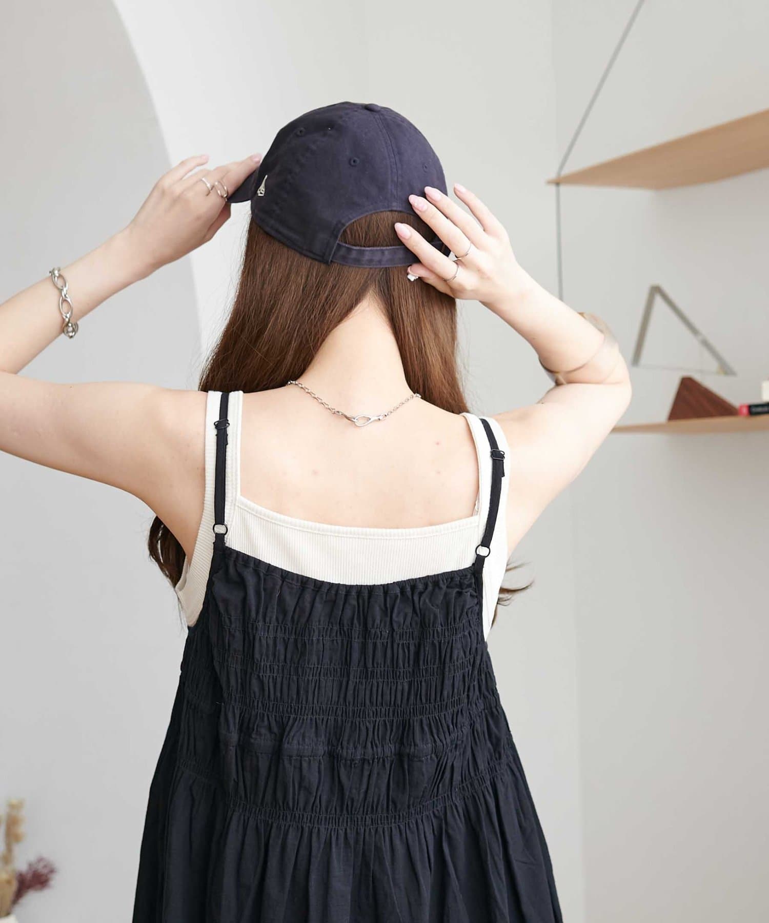 胸元にたっぷりと入ったシャーリングが印象的なキャミワンピース