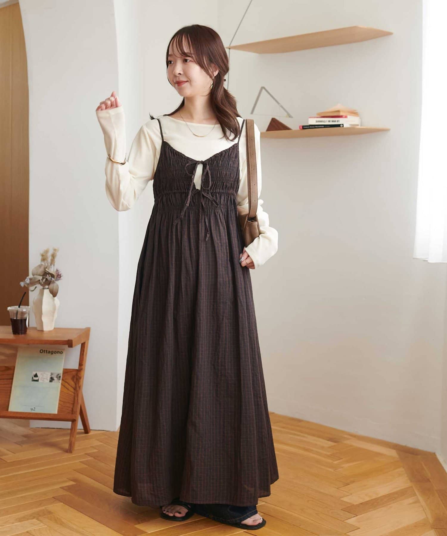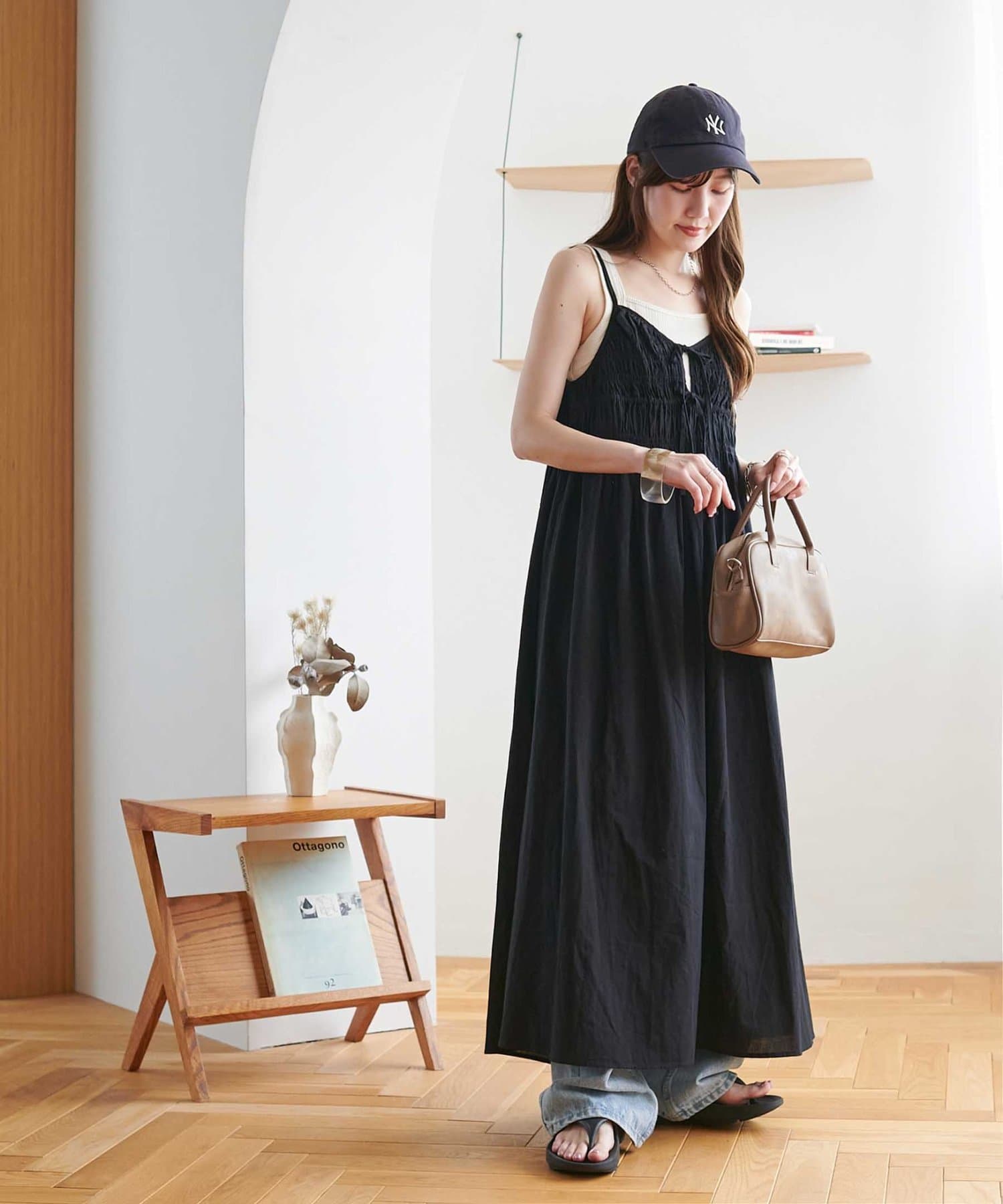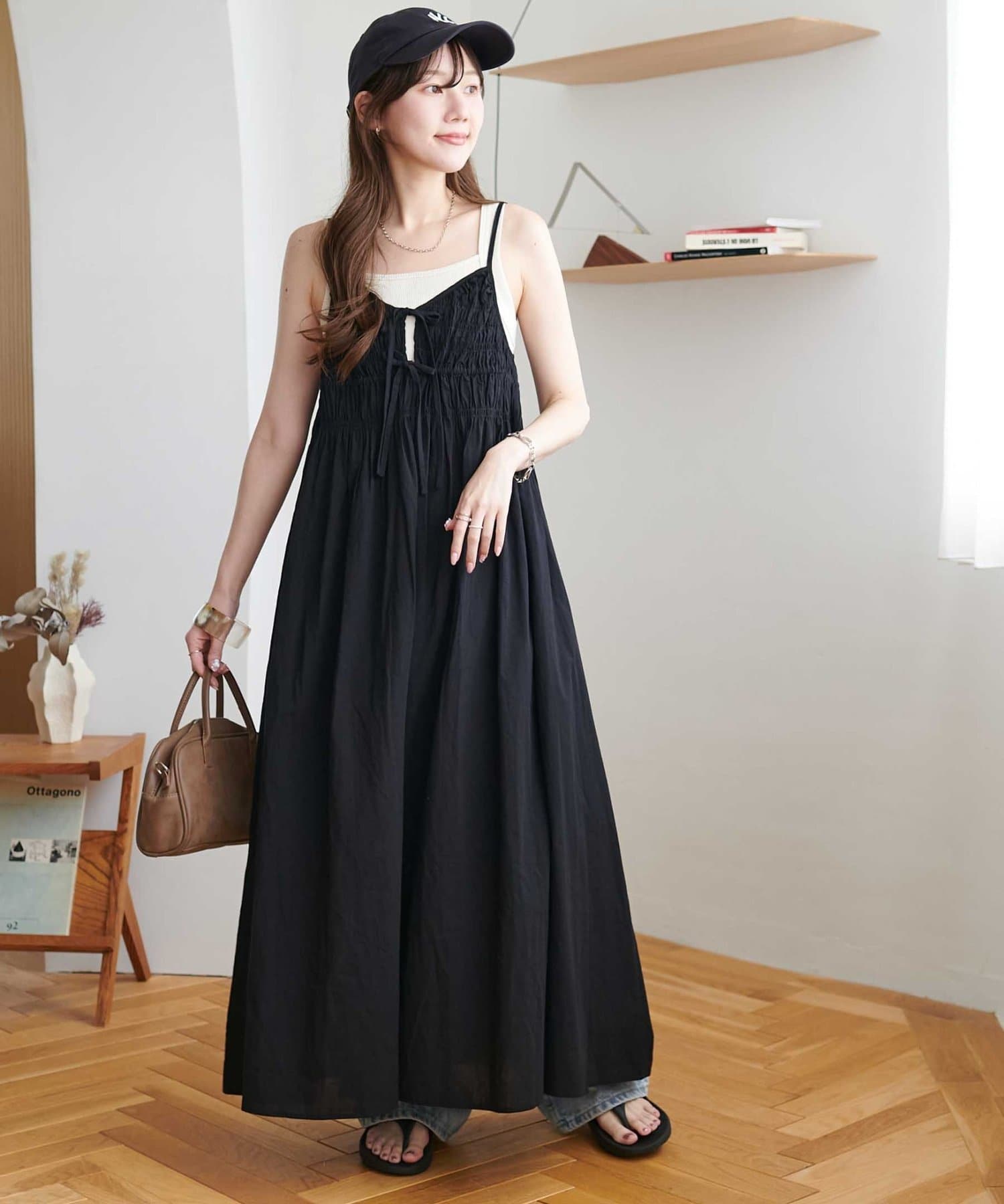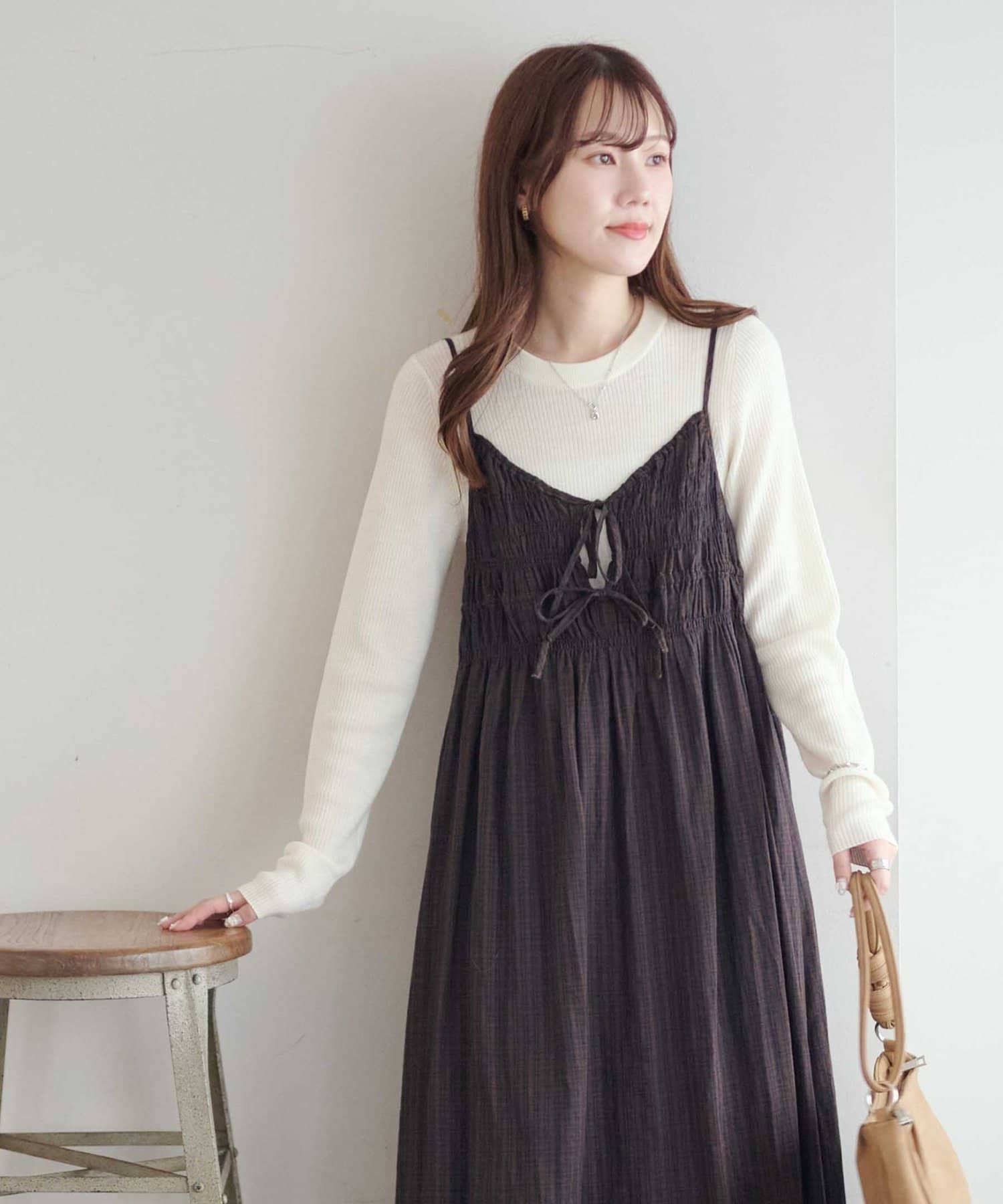 レイヤードを楽しめるキャミワンピースは、季節やシーンに応じた幅広い着こなしが可能。