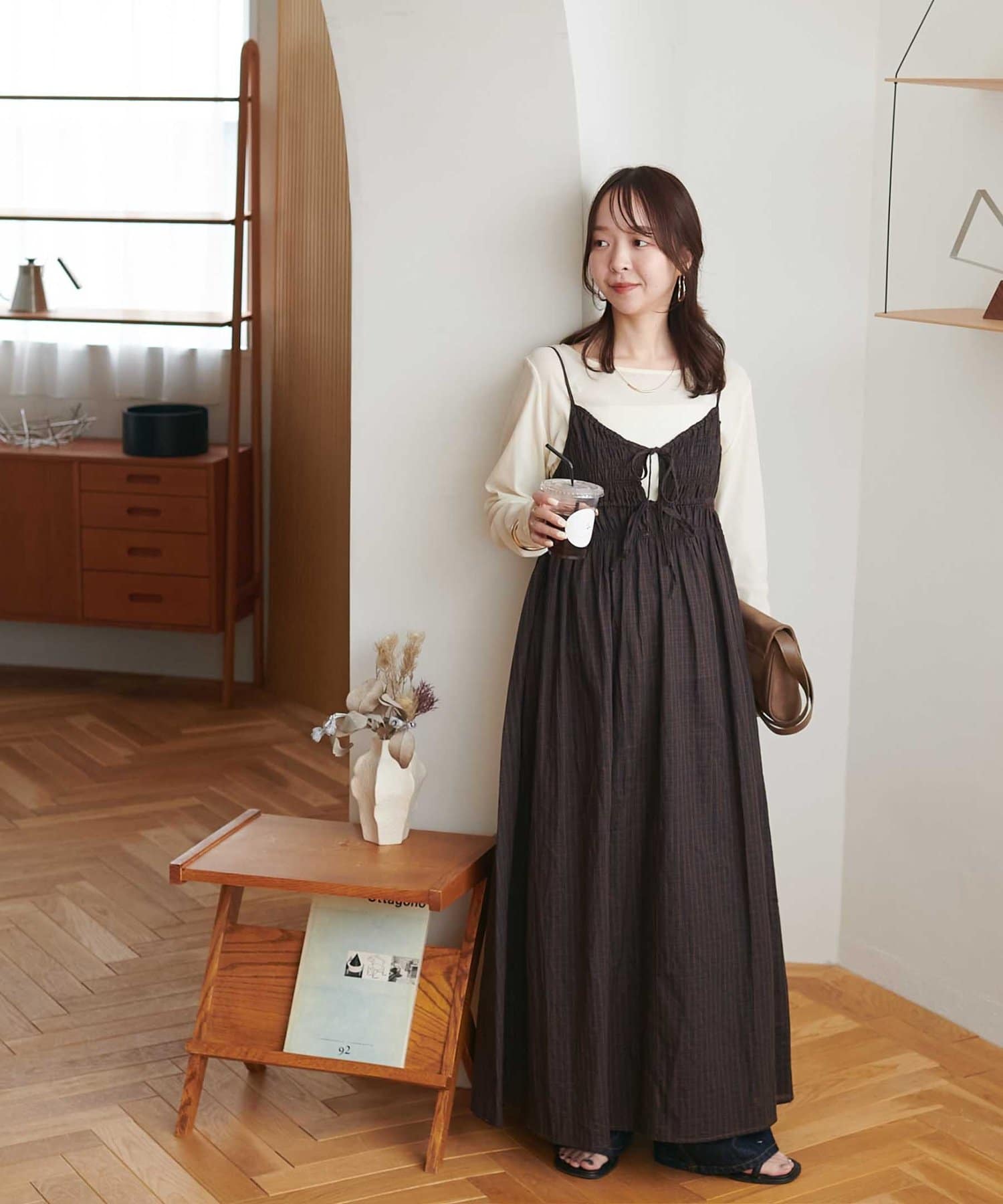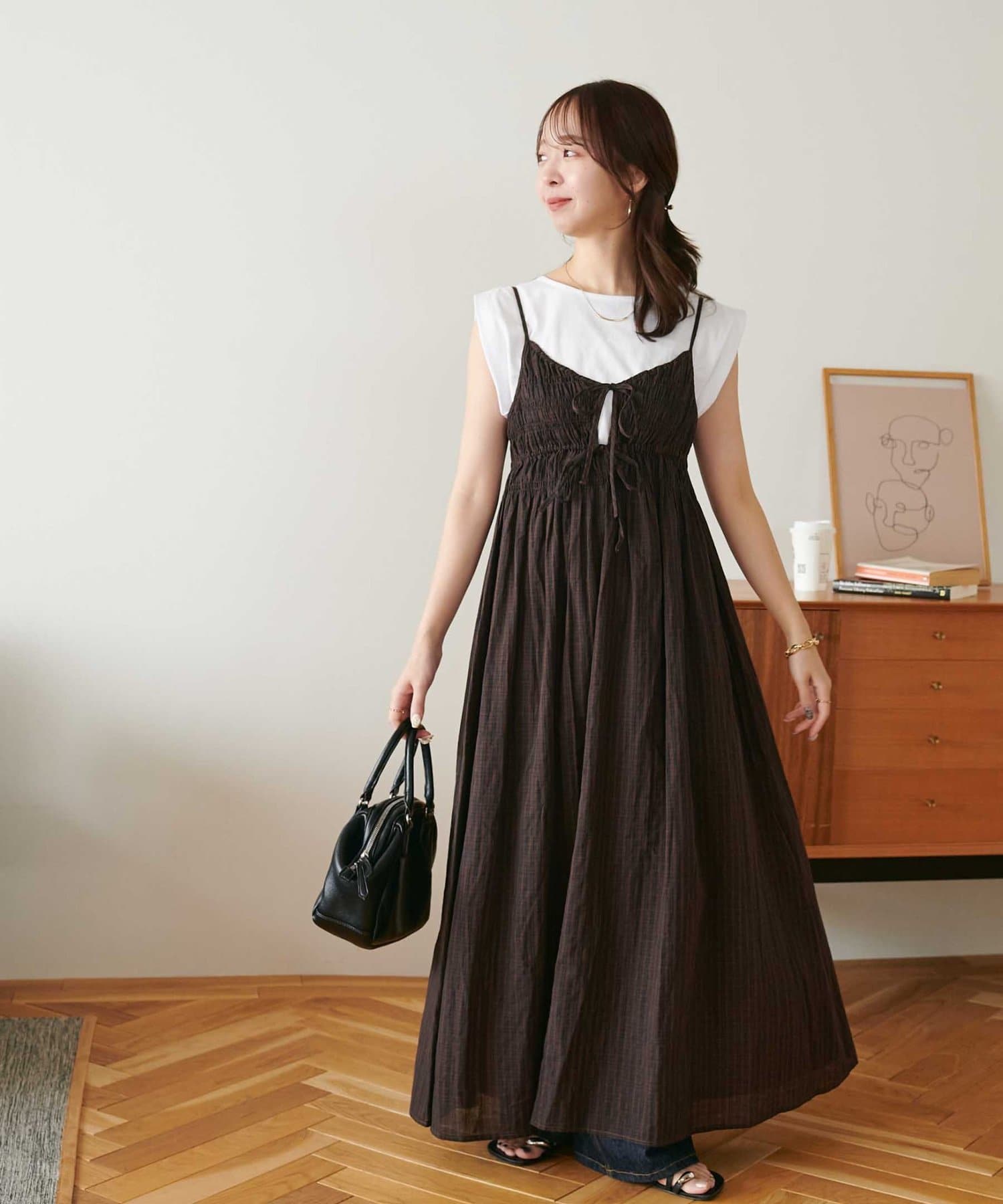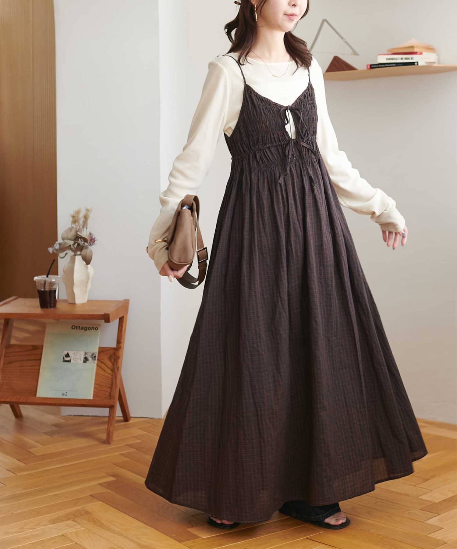 レイヤードを楽しめるキャミワンピースは、季節やシーンに応じた幅広い着こなしが可能。