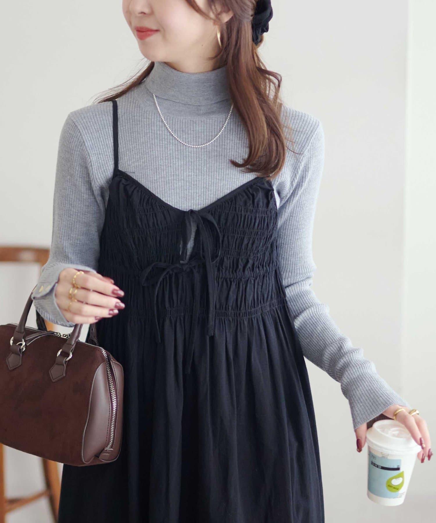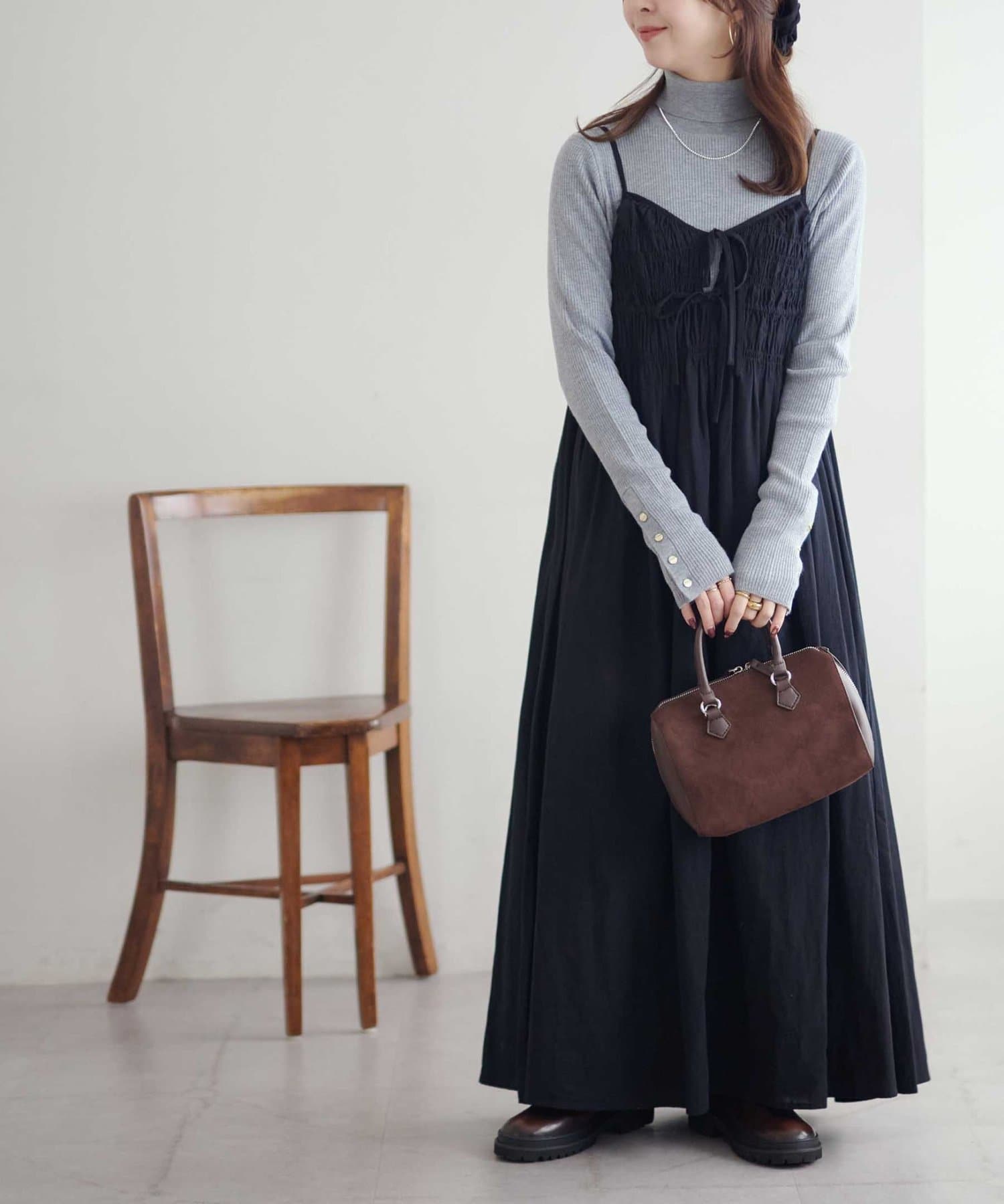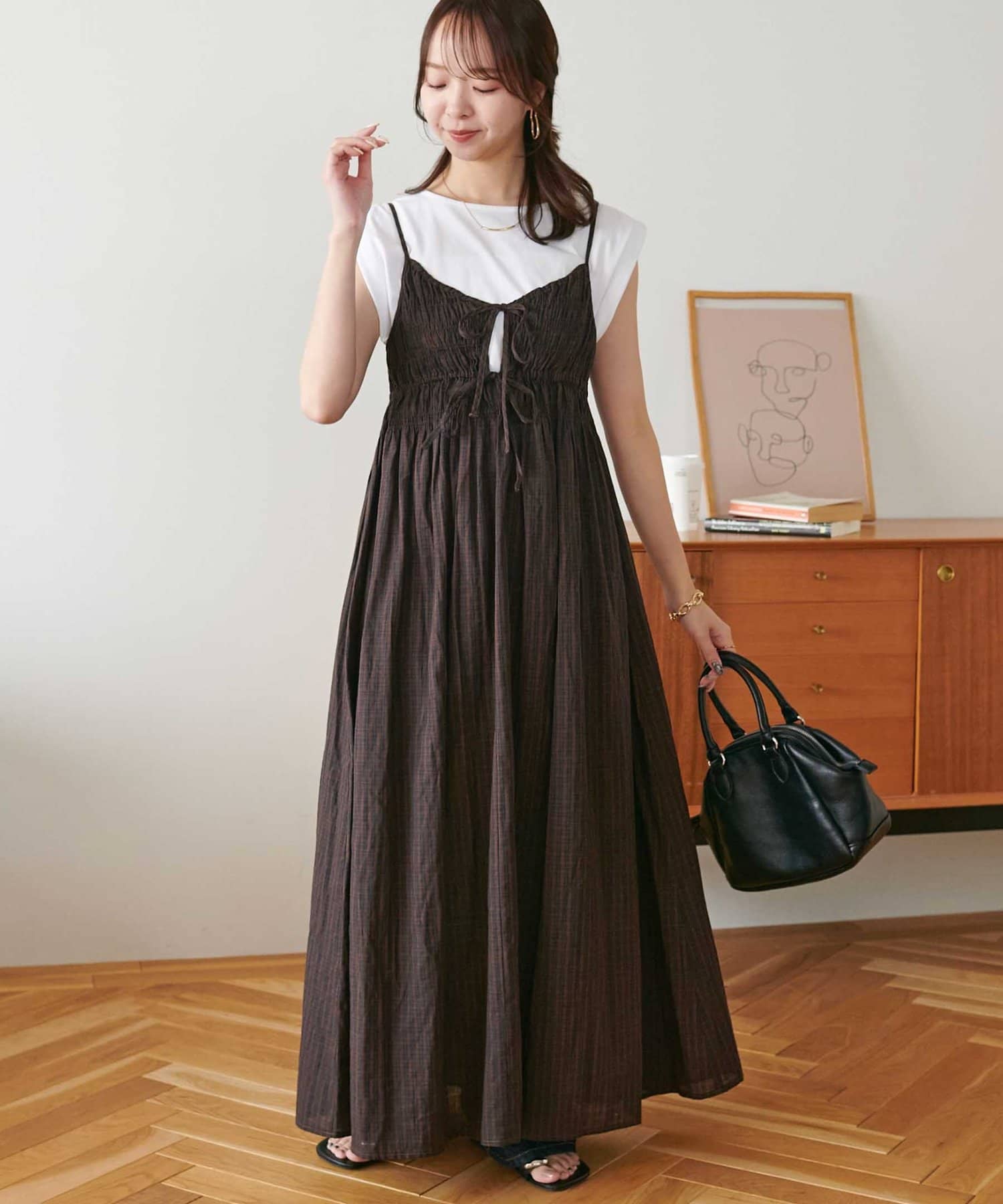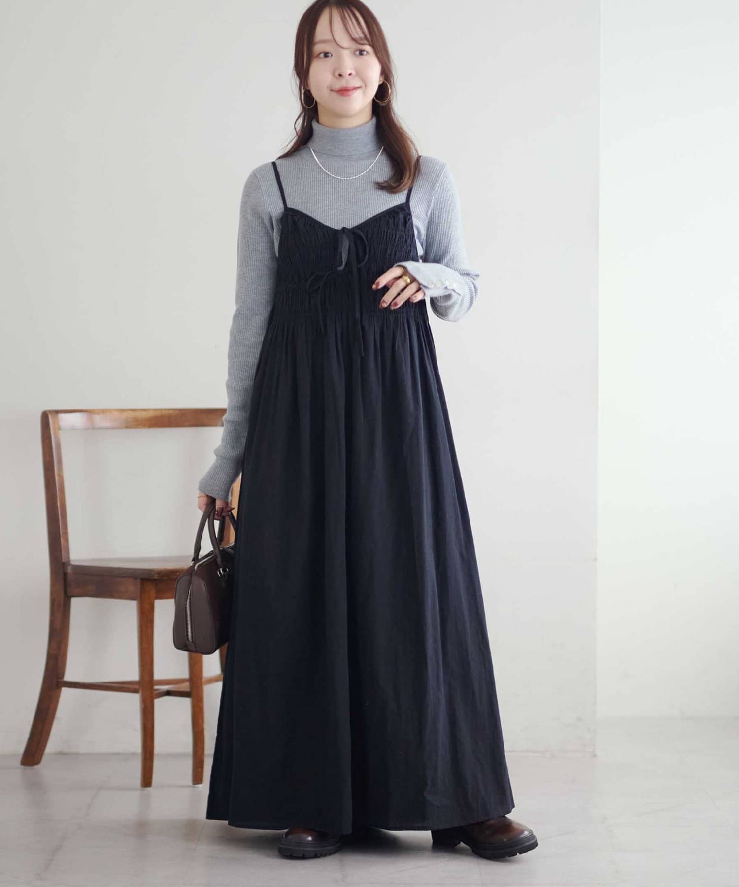 レイヤードを楽しめるキャミワンピースは、季節やシーンに応じた幅広い着こなしが可能。
