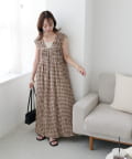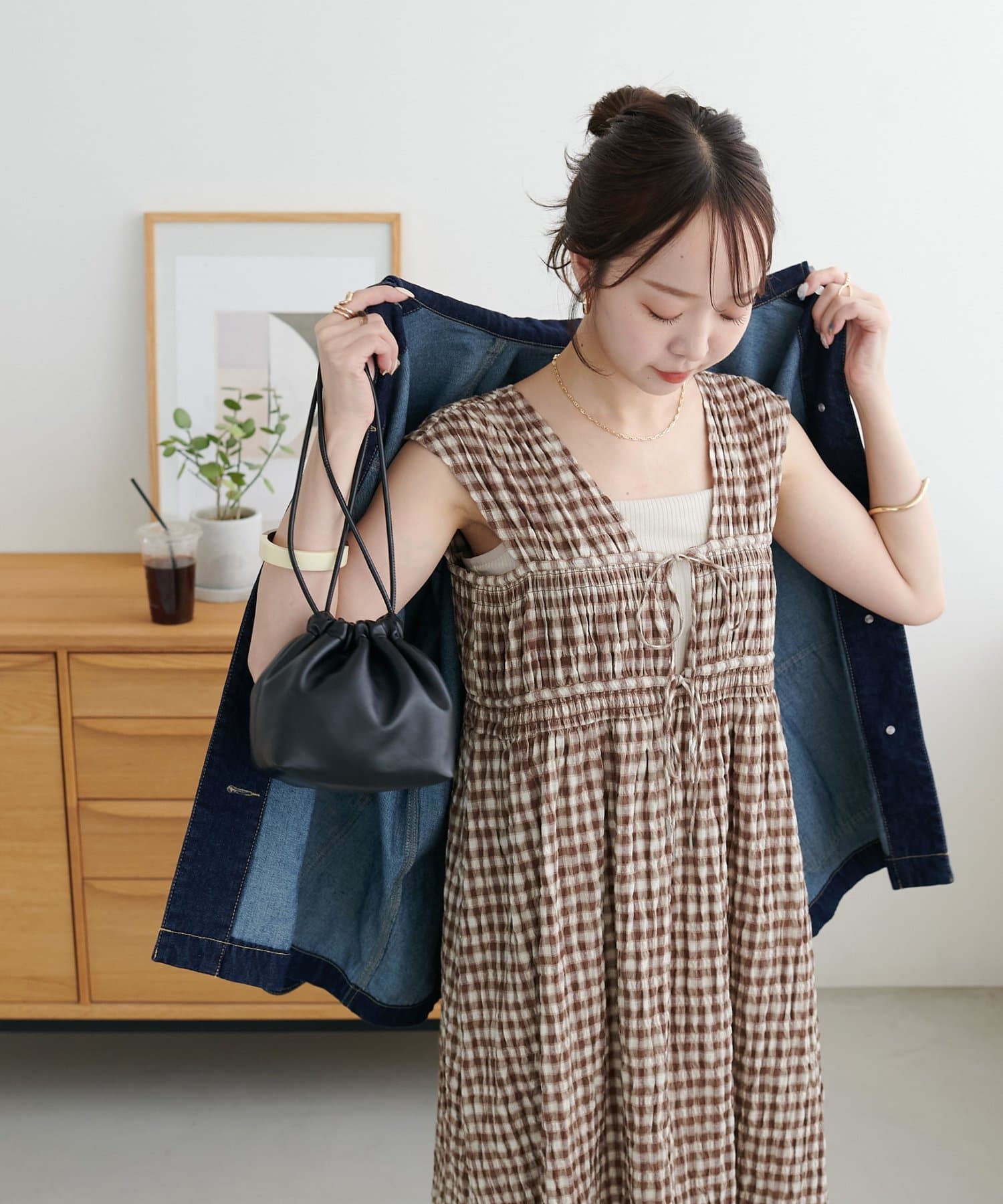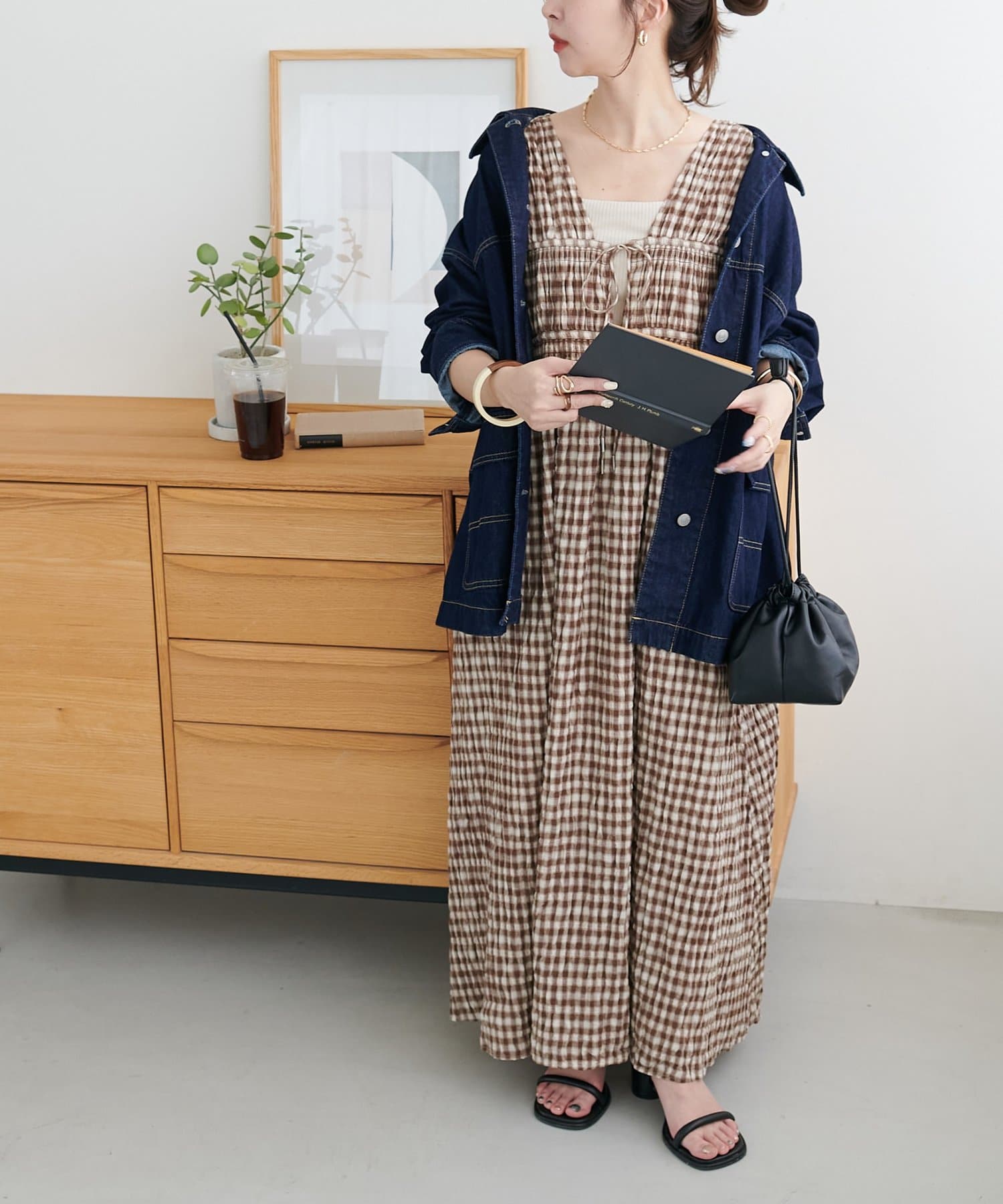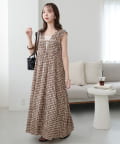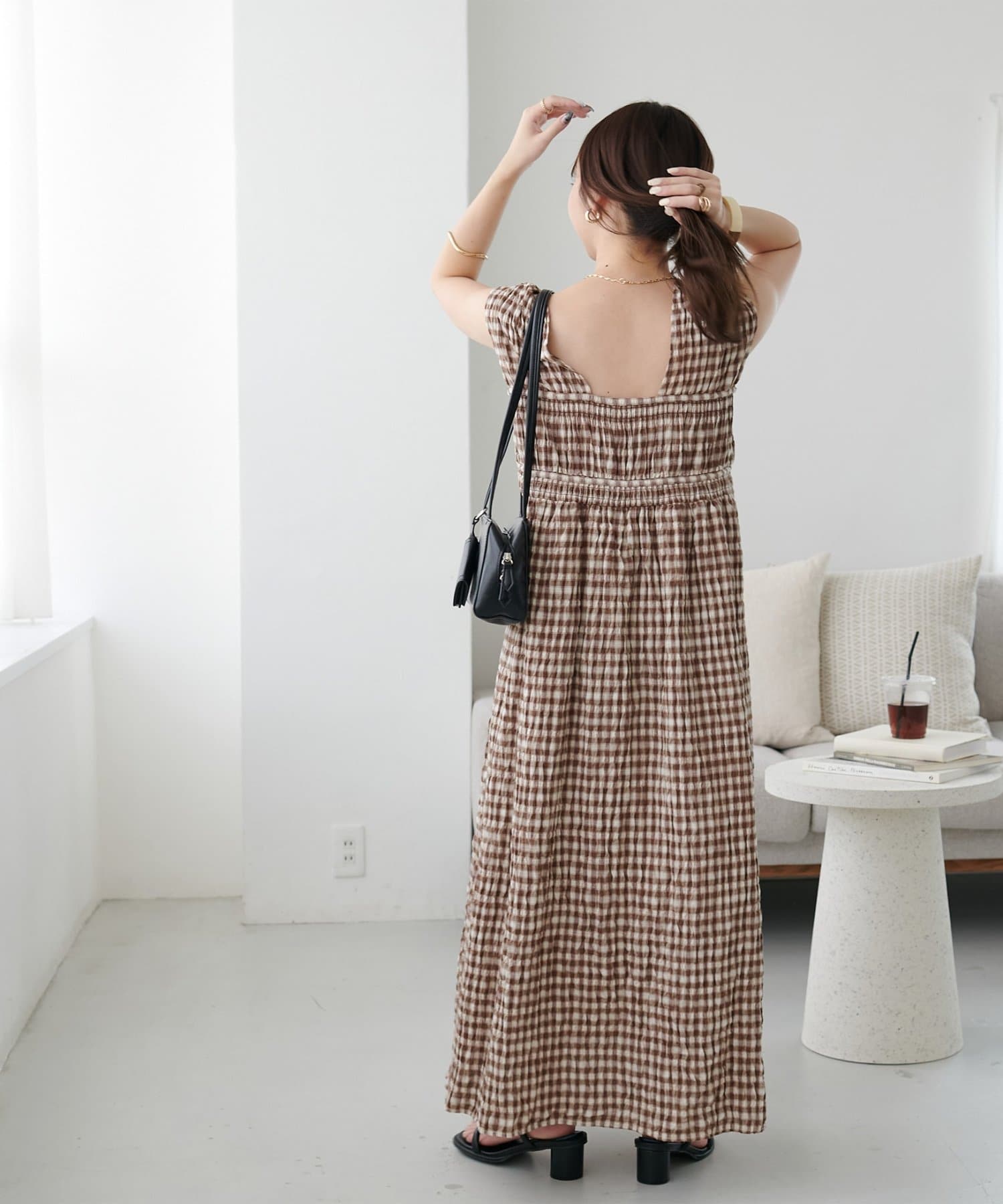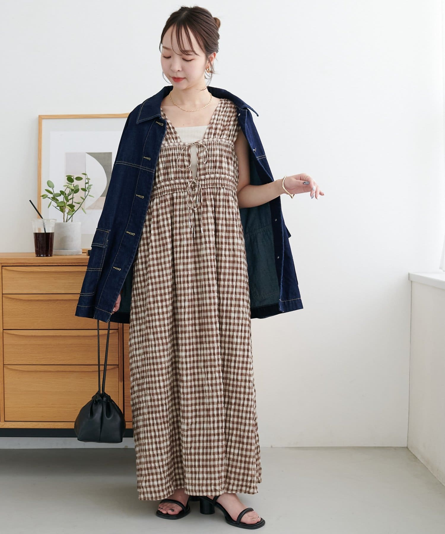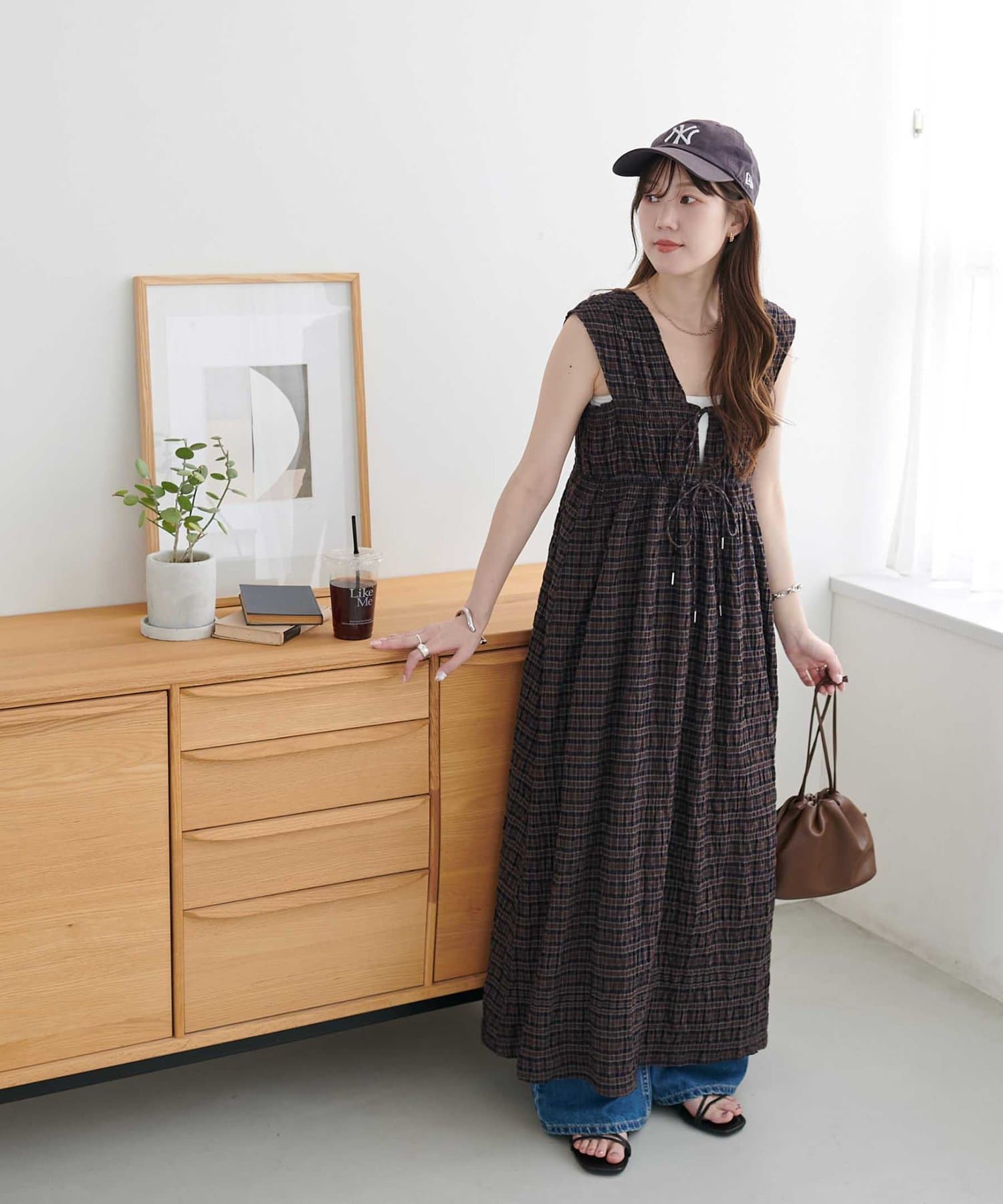シャーリングチェックノースリワンピース