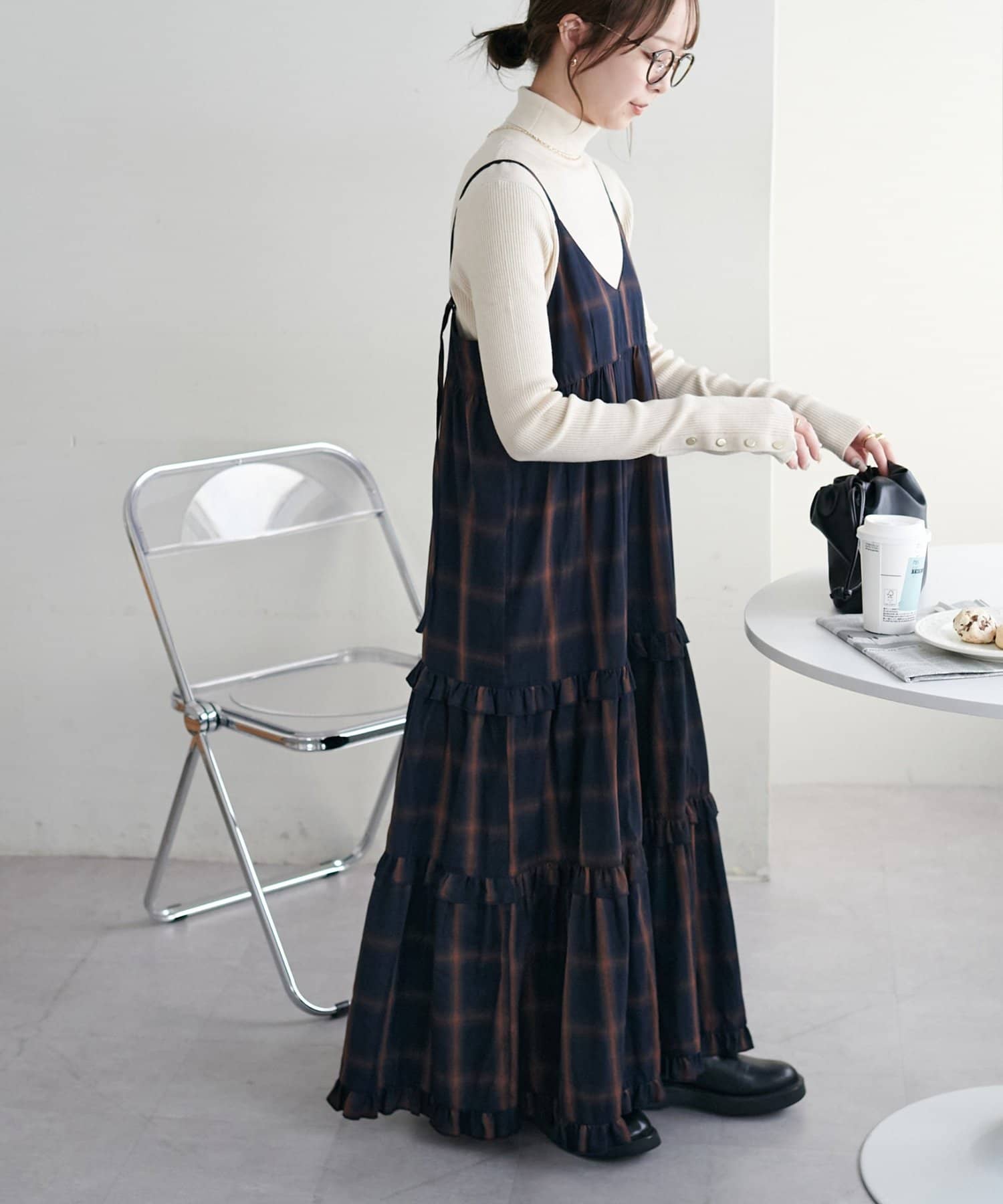 【WEB限定】チェックティアードキャミワンピ