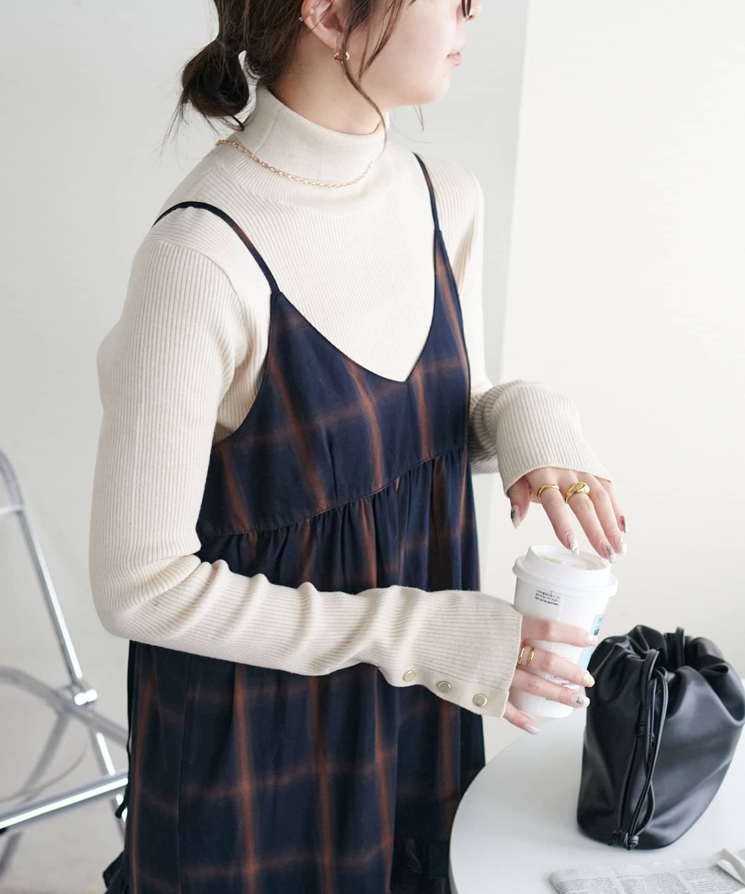 タートルネックやハイネックと合わせた秋冬コーデ