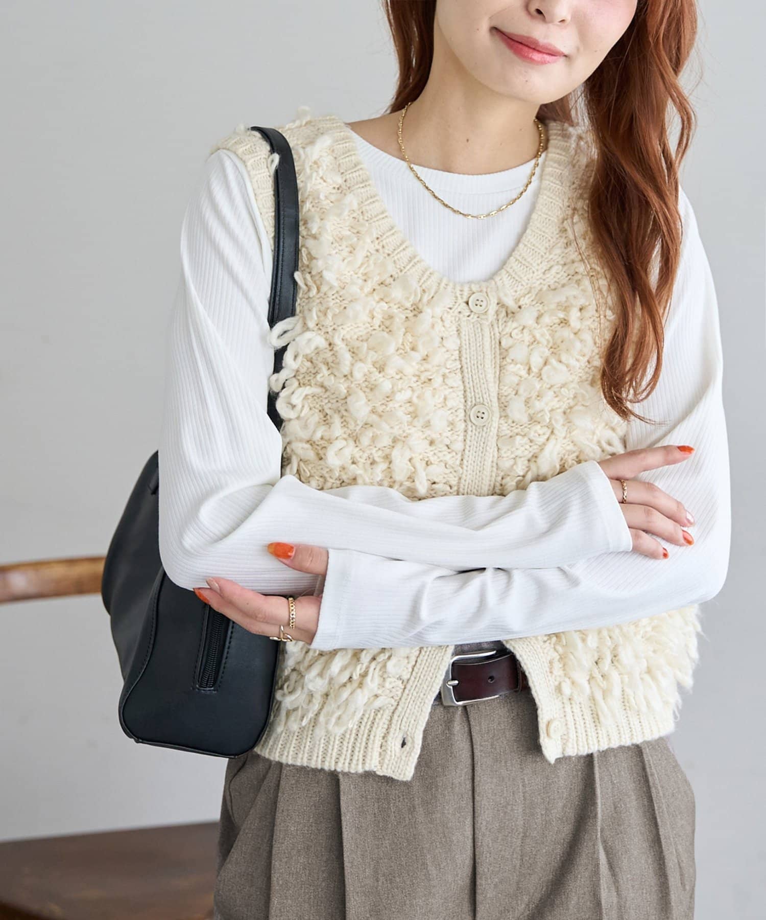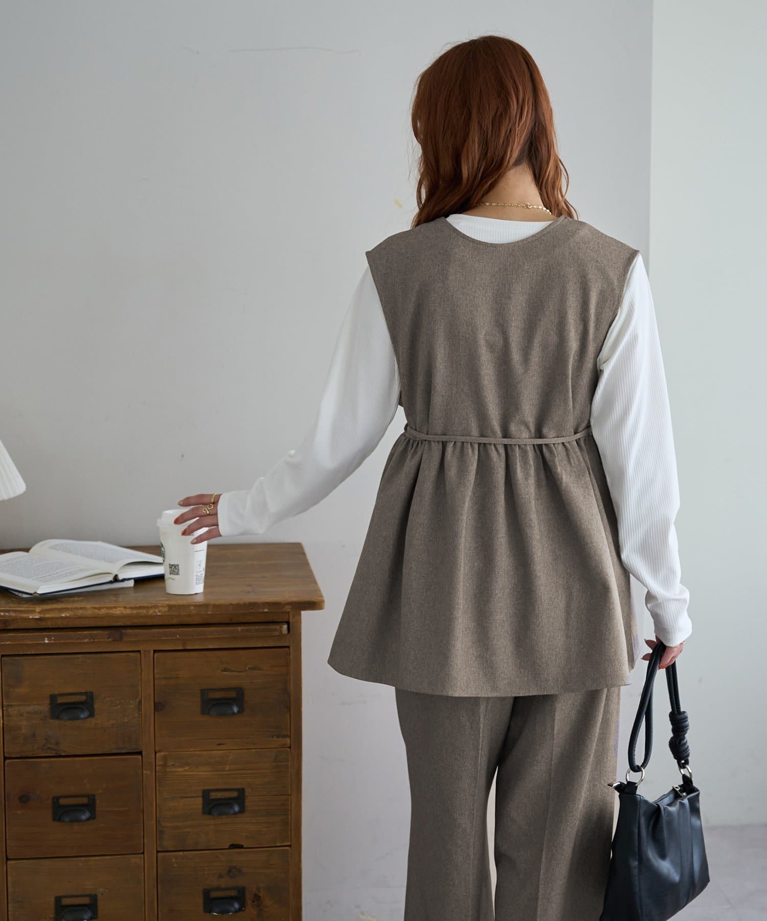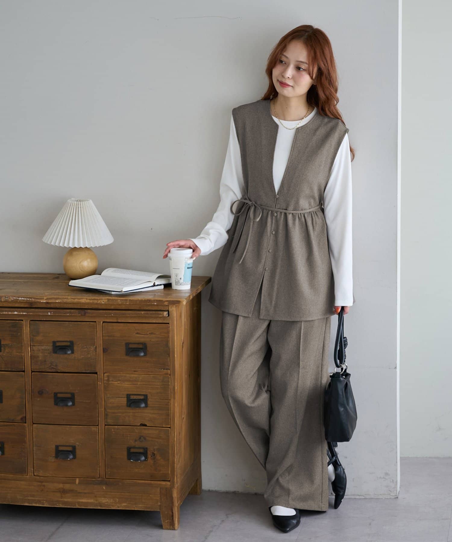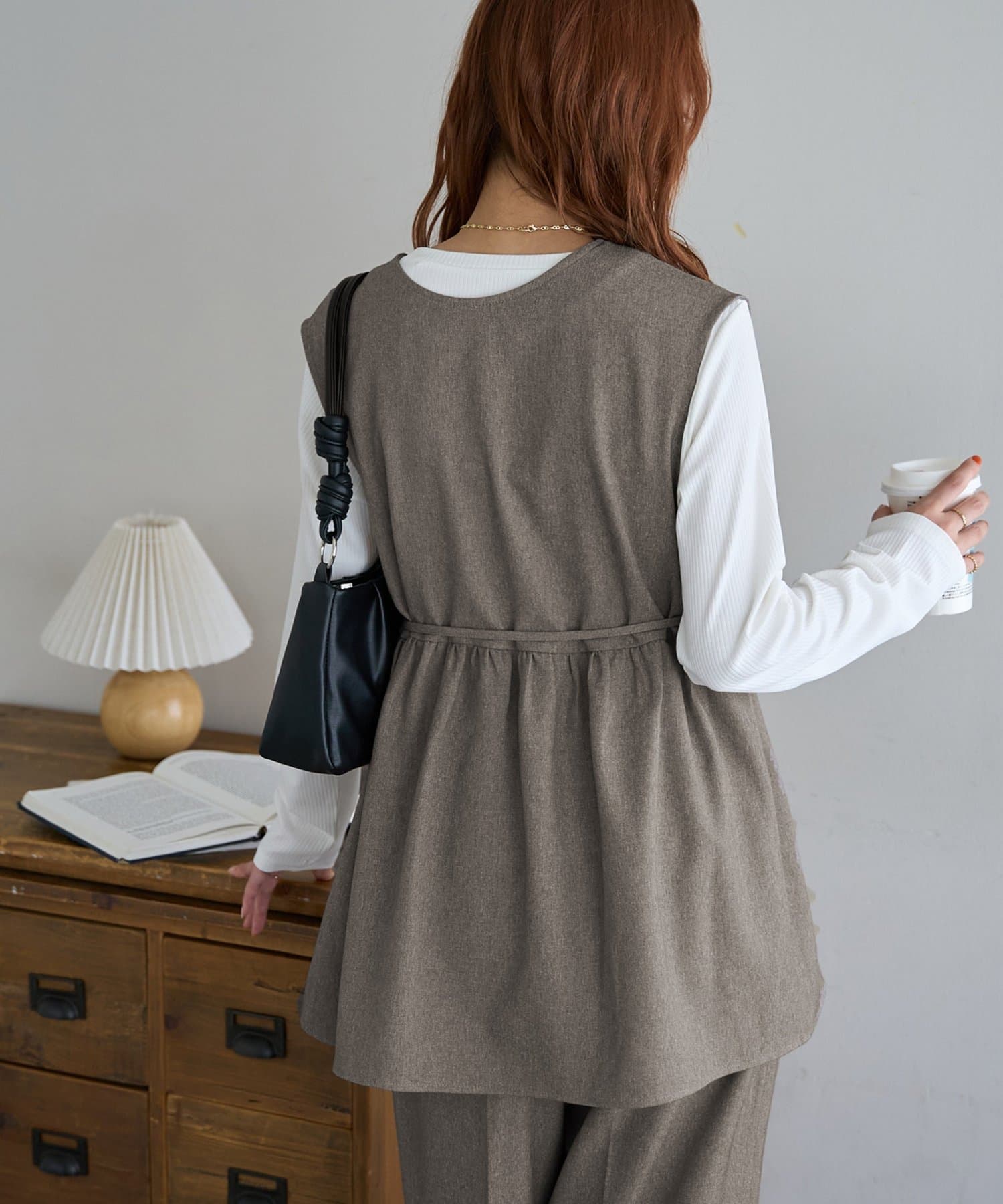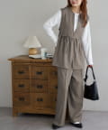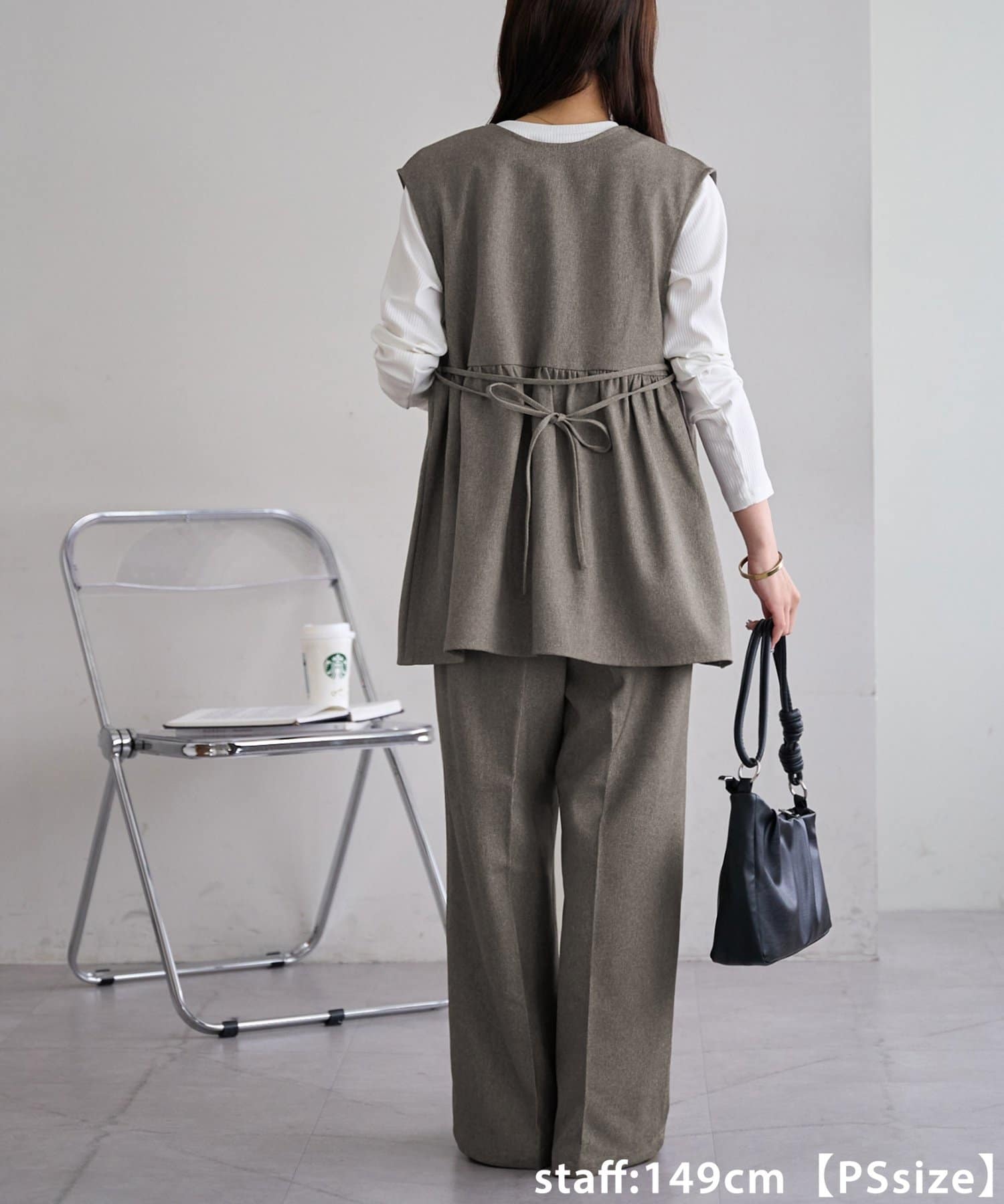 149cmスタッフ(PSサイズ着用):これ一つでコーデが完成するのが嬉しい!ジレは気になる腰周りを自然にカバーしてくて、体型問わず着やすいアイテムです。