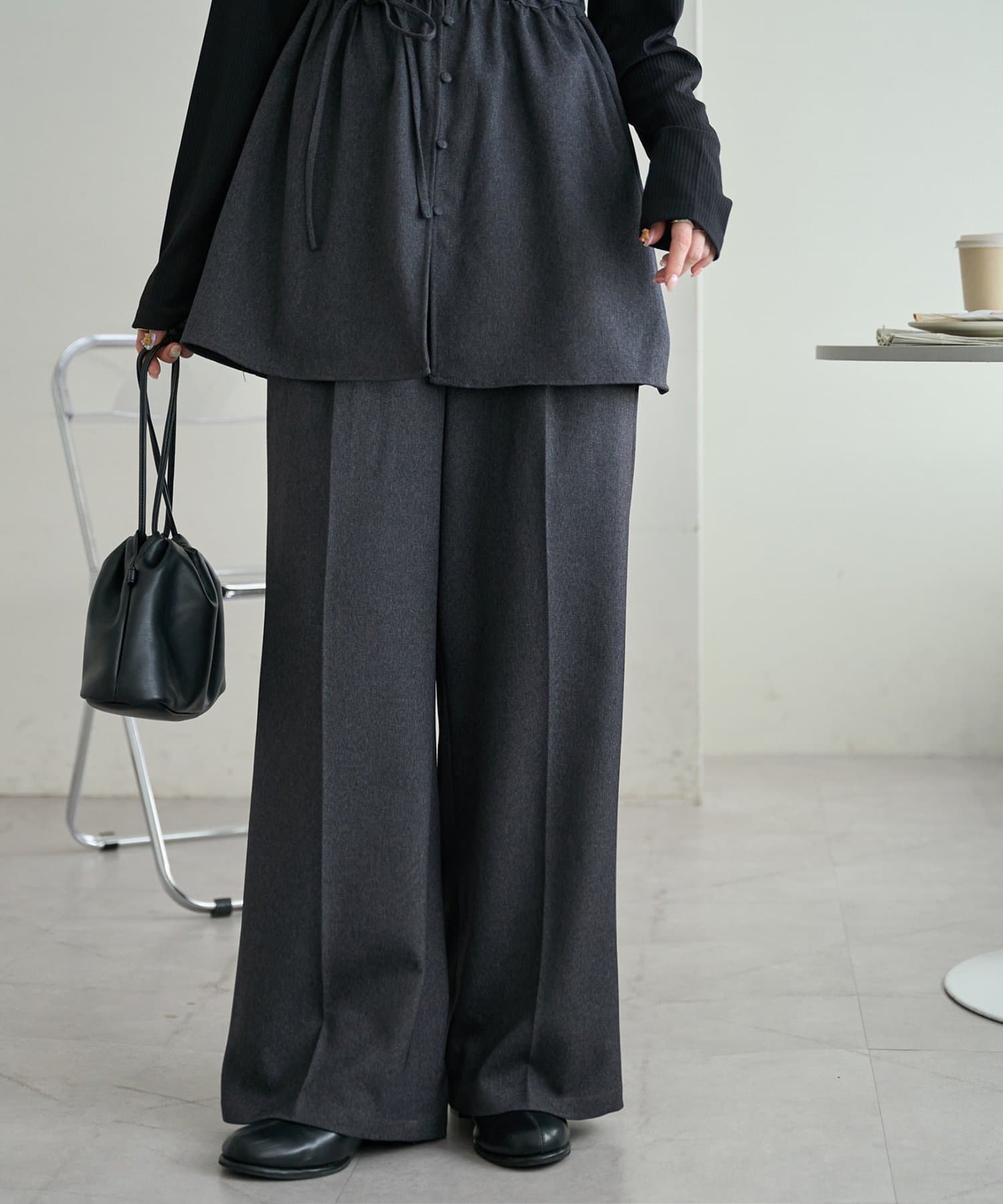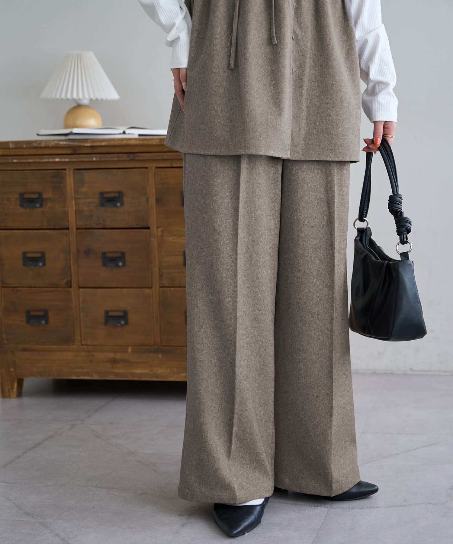 センタープレス入りで縦のラインを強調しすっきりとした印象に。タックを施すことで立体感のある美シルエットに仕上がりました。