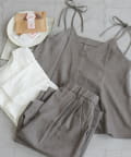 キャミソールとパンツはポリエステル100%でしわになりにくい素材。