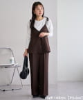 149cmスタッフ(PSサイズ着用):3点ともバランスよく着られました!ロンTは伸びがよくフィット感があるので、1枚でも着やすいし、上にビスチェを重ねてもすっきり着こなせました♪