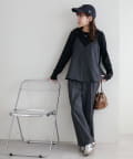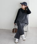 160cmスタッフ(Mサイズ着用):パンツは足首が隠れるちょうどいい丈感で、フラットシューズでももたつきませんでした。ロンTはぴたっとしすぎず、程よいフィット感で着心地も抜群。