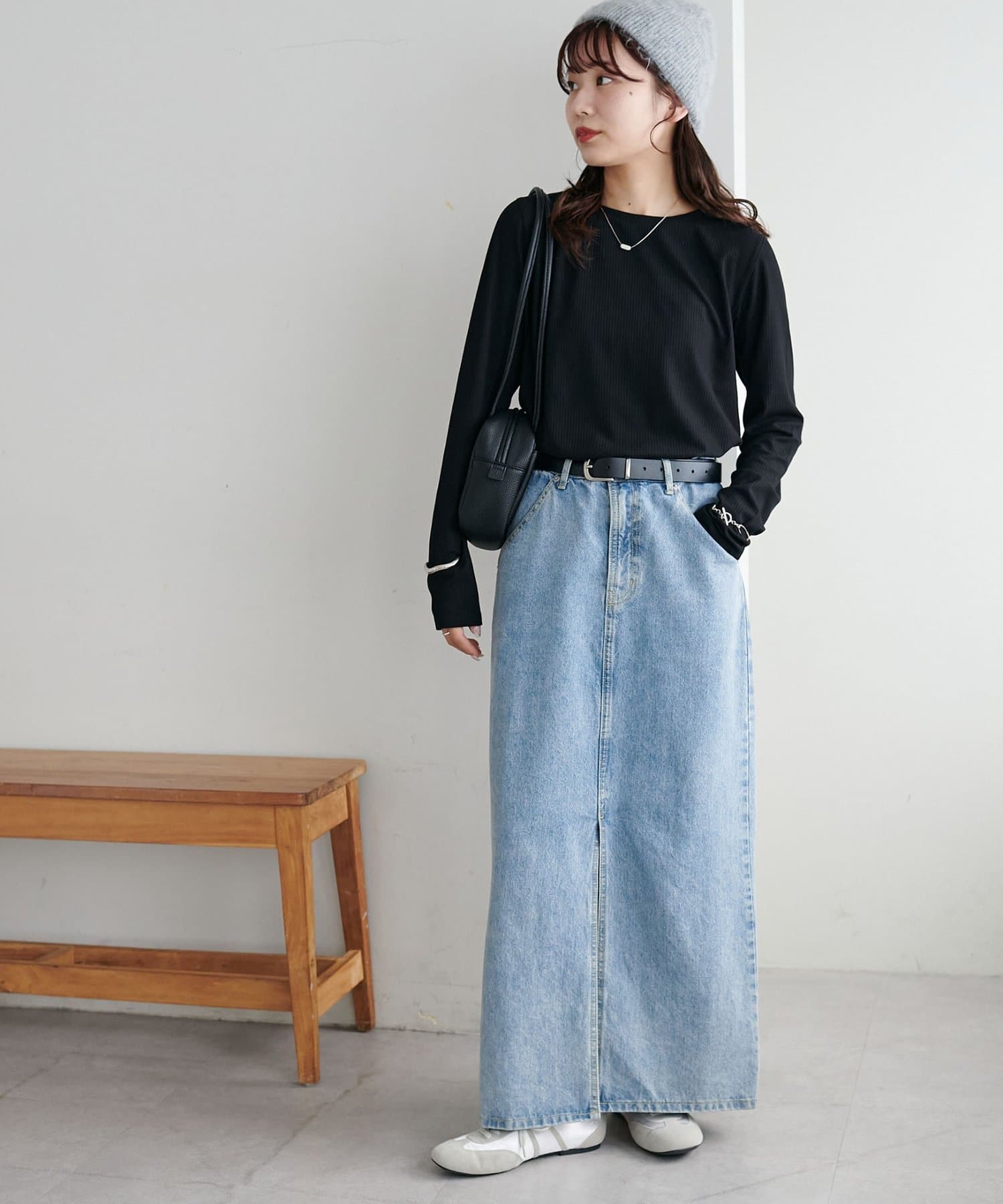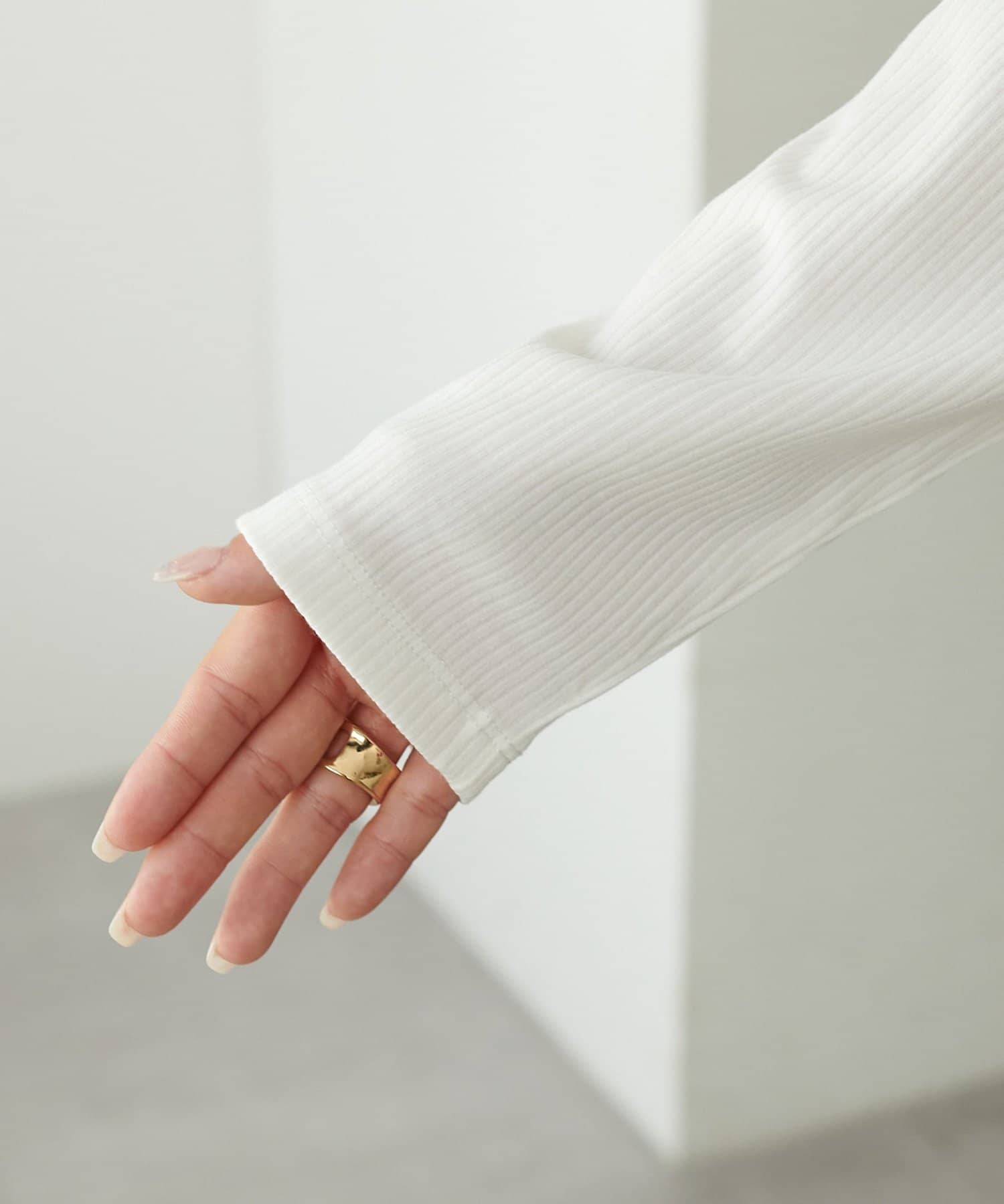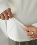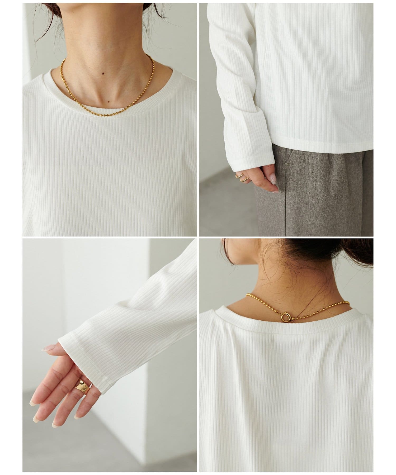 程よく体にフィットしつつもぴたっとしすぎず、レイヤードスタイルにもぴったりな絶妙なシルエットです。インナーとしてはもちろん、季節の変わり目には主役トップスとしても活躍します!