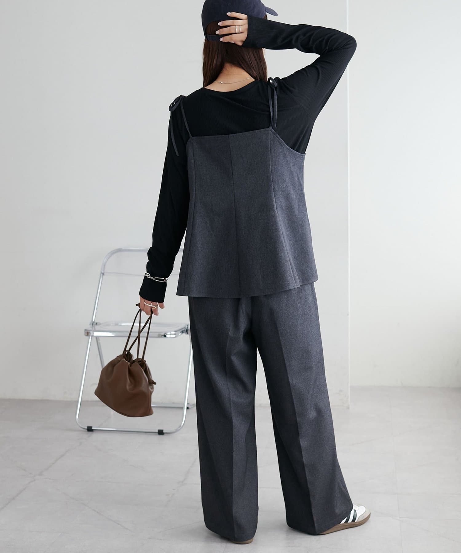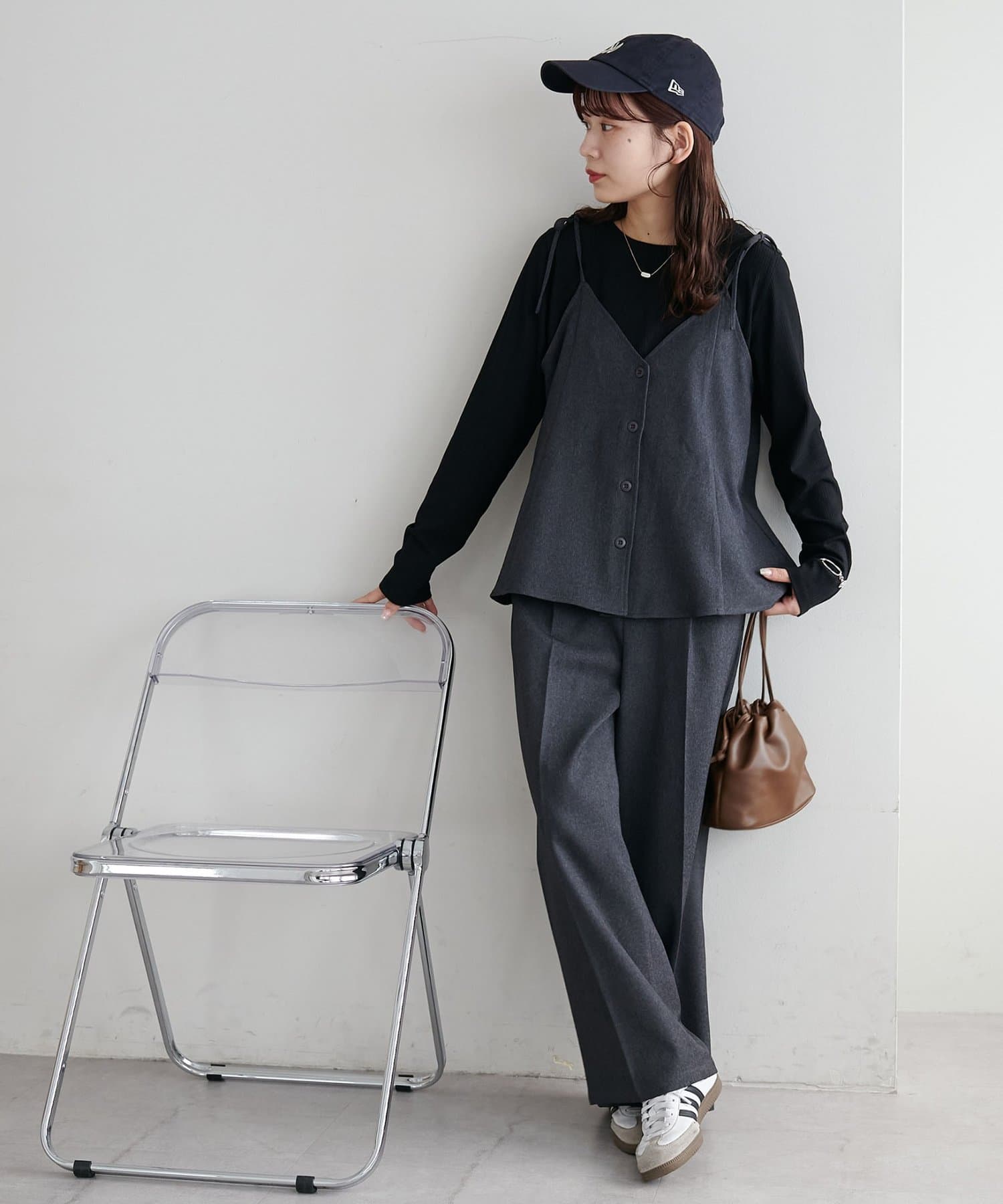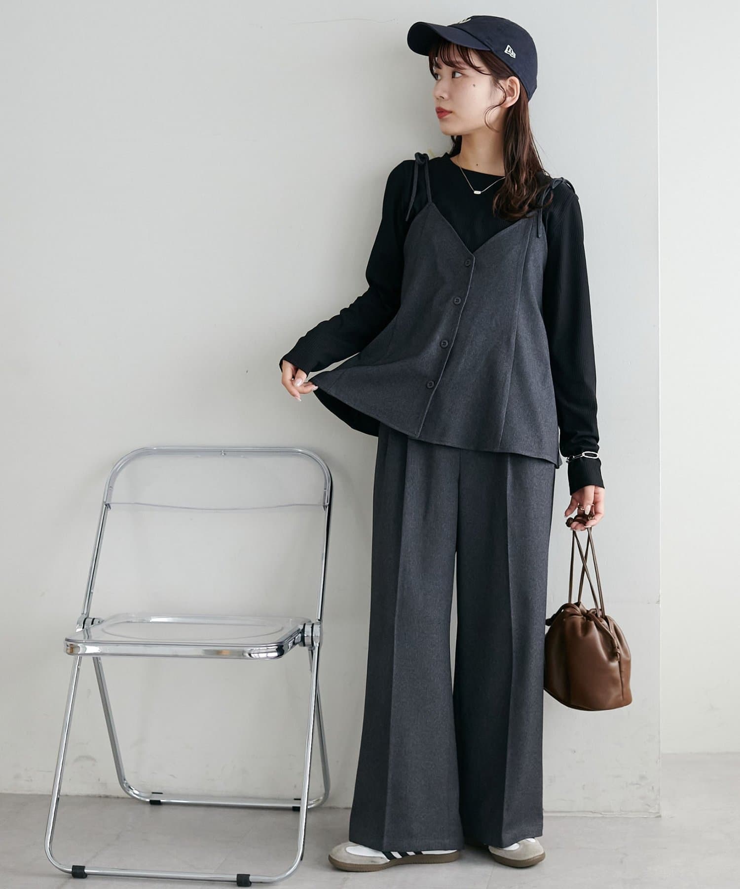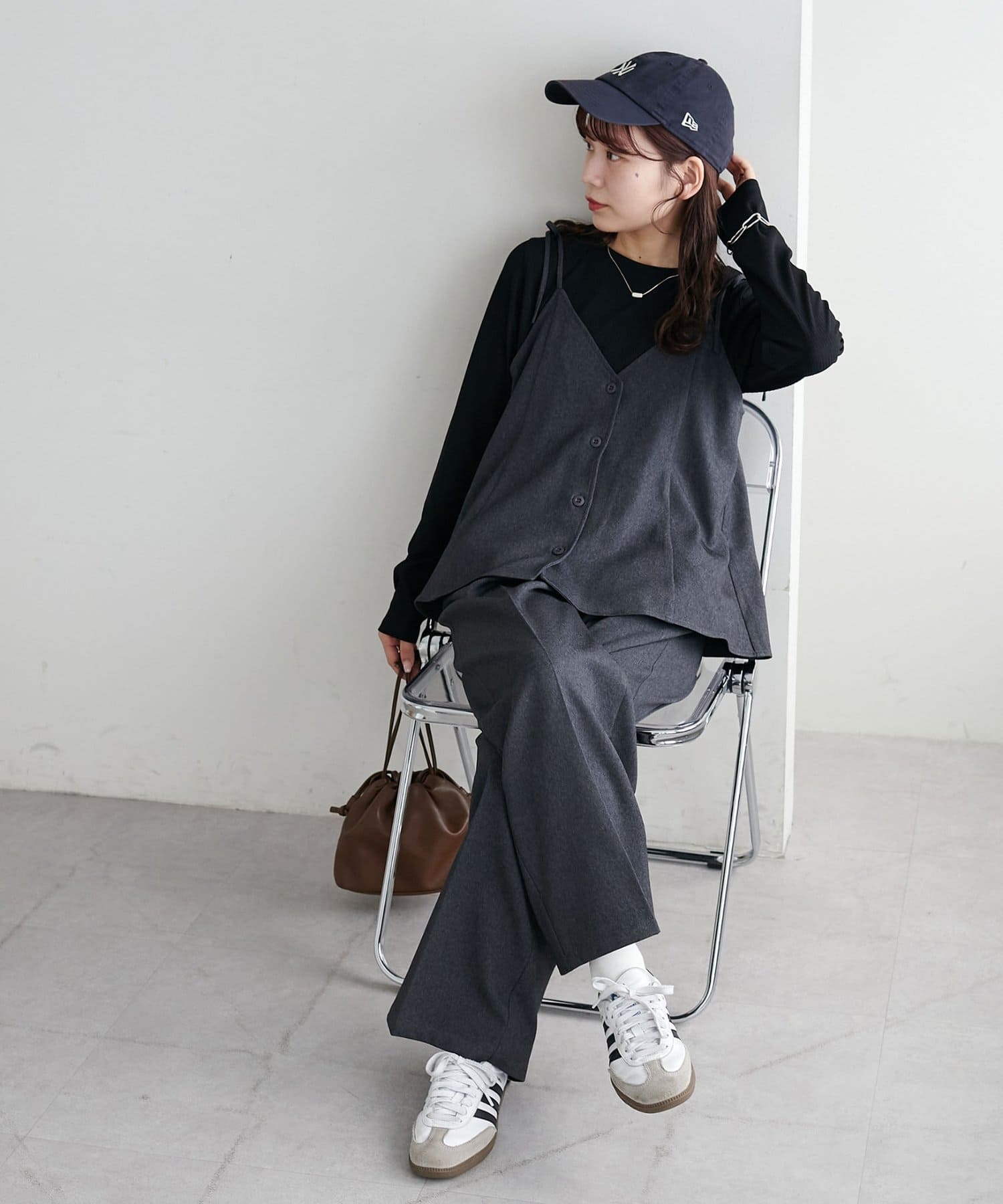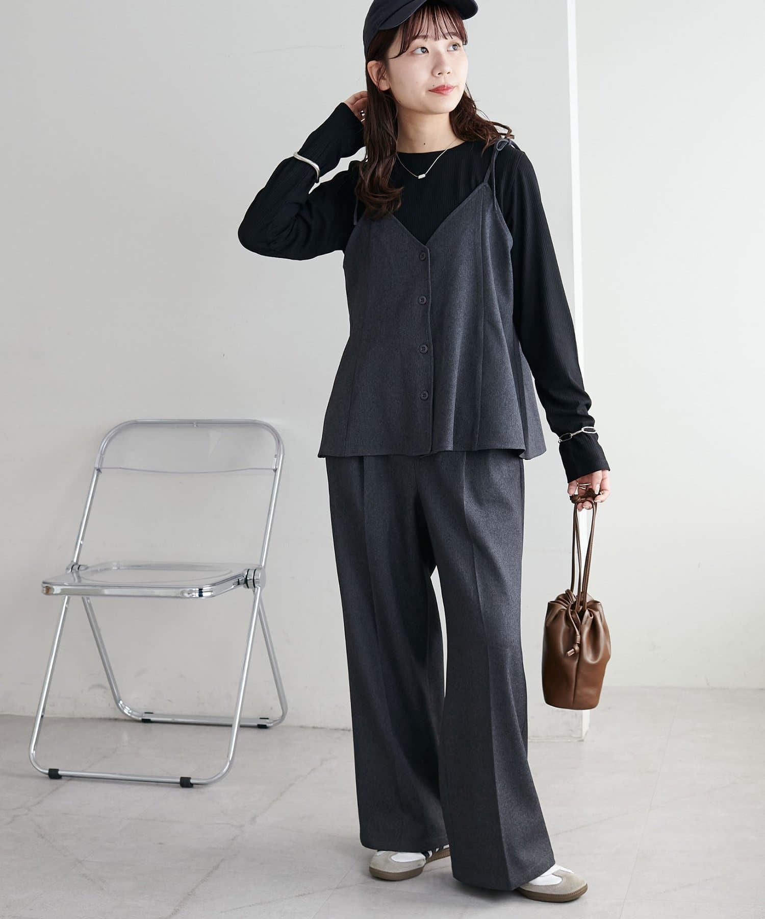 忙しい朝でもコーデに迷わない、嬉しいロンT・ビスチェ・パンツの3点セット。