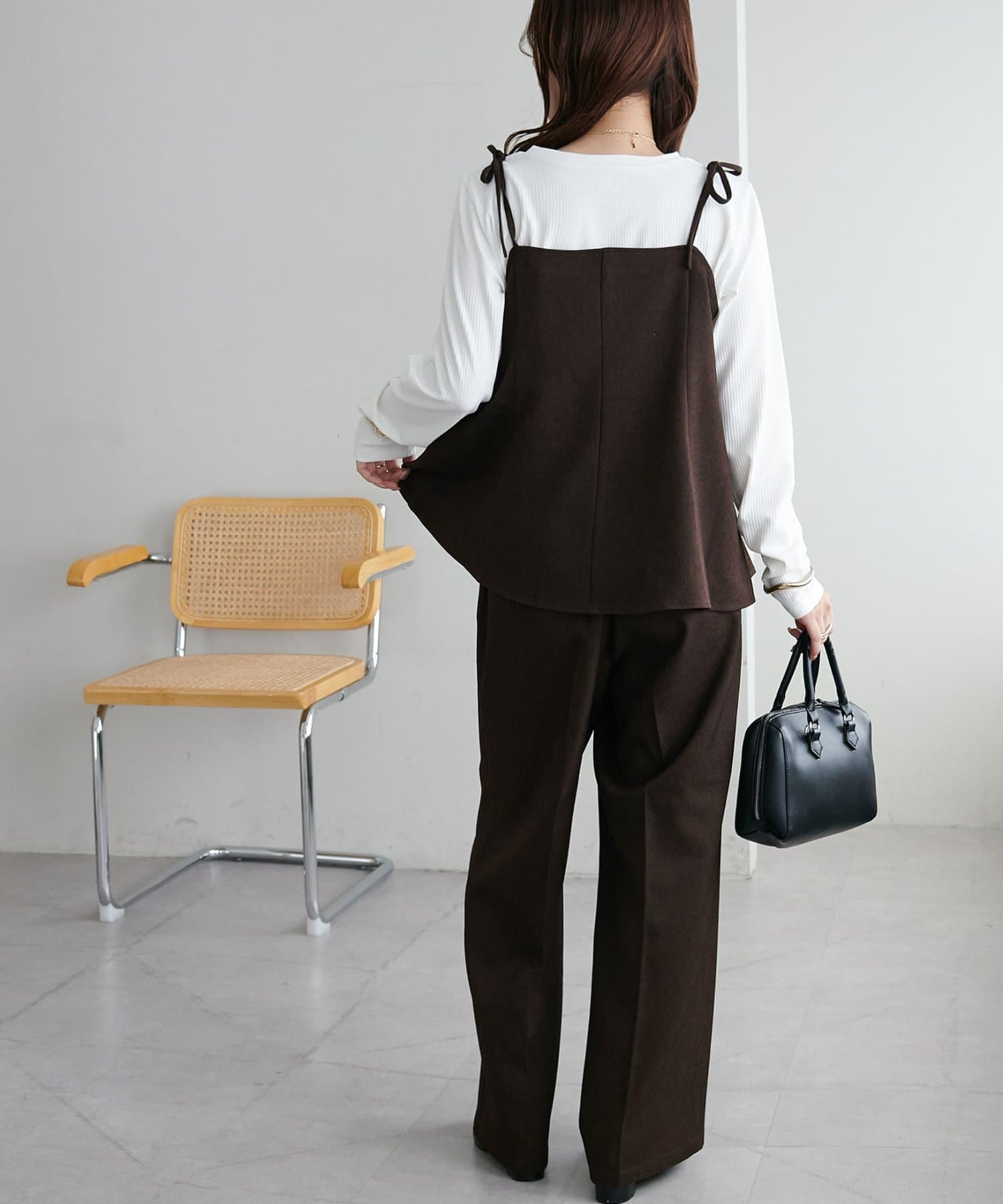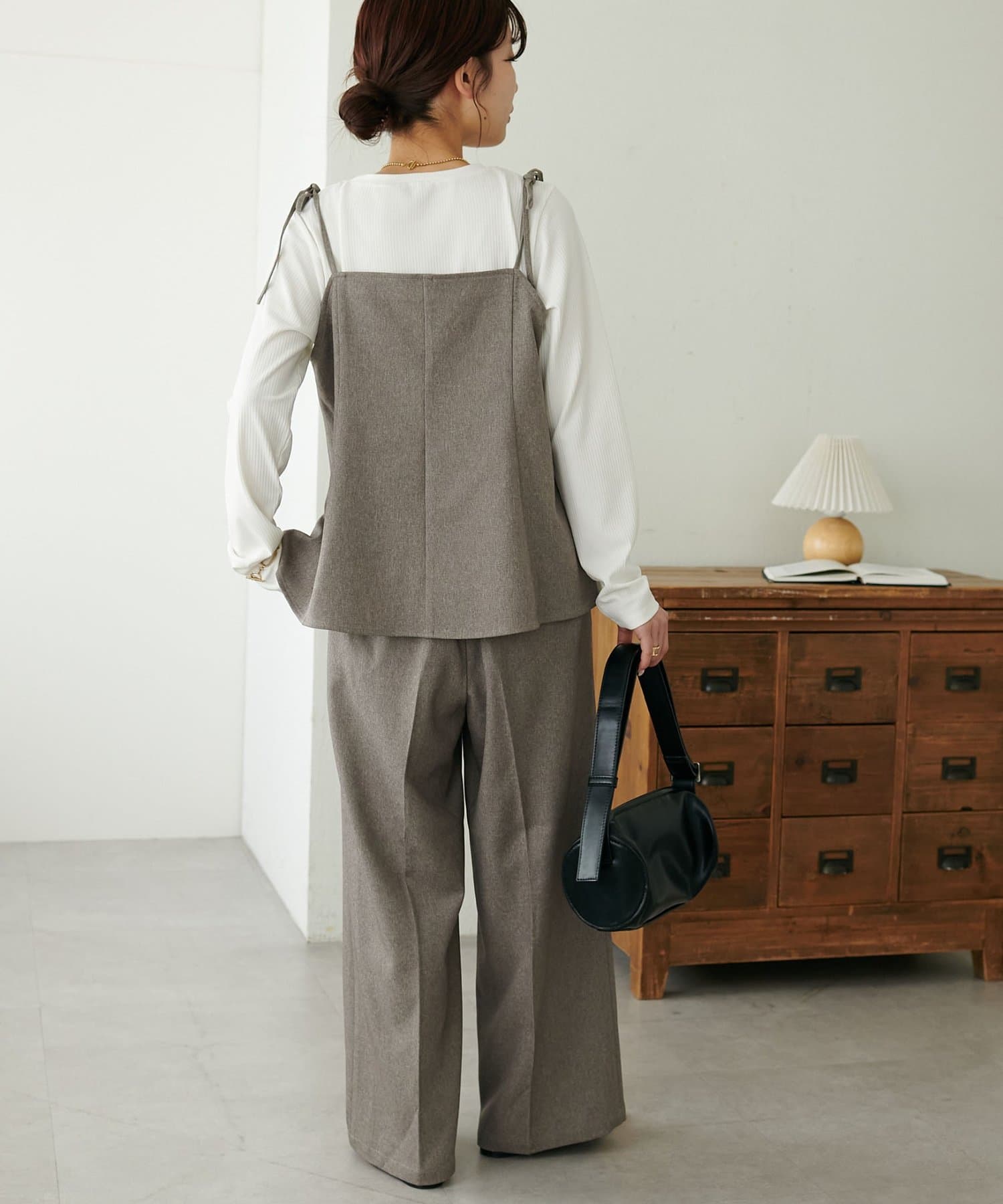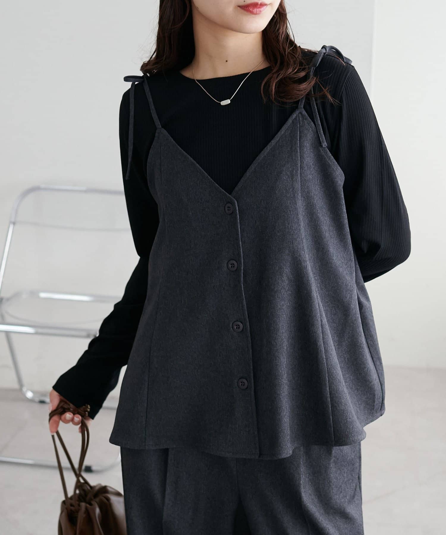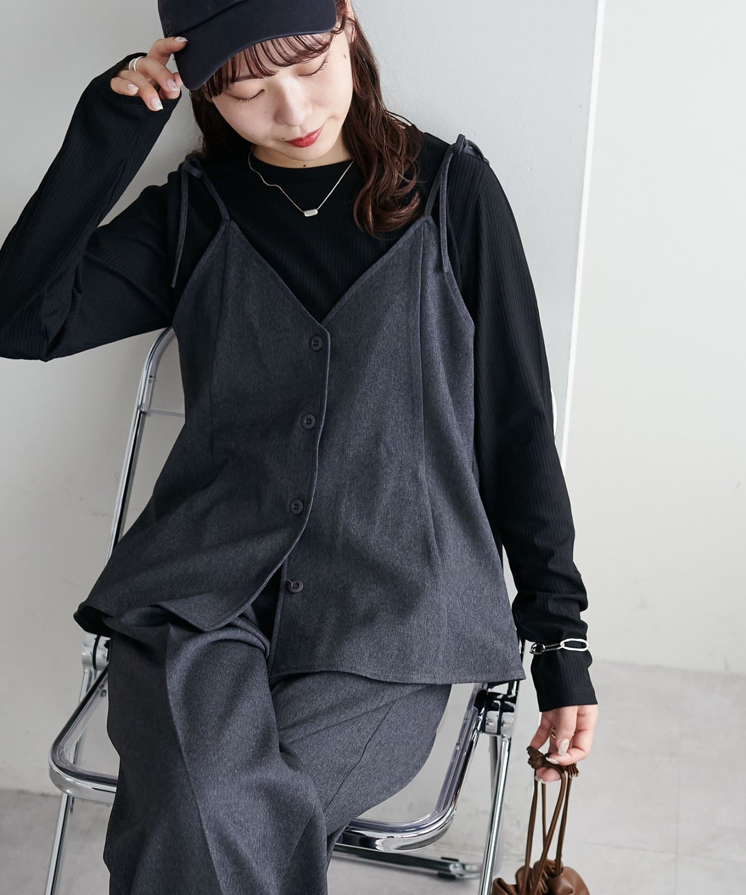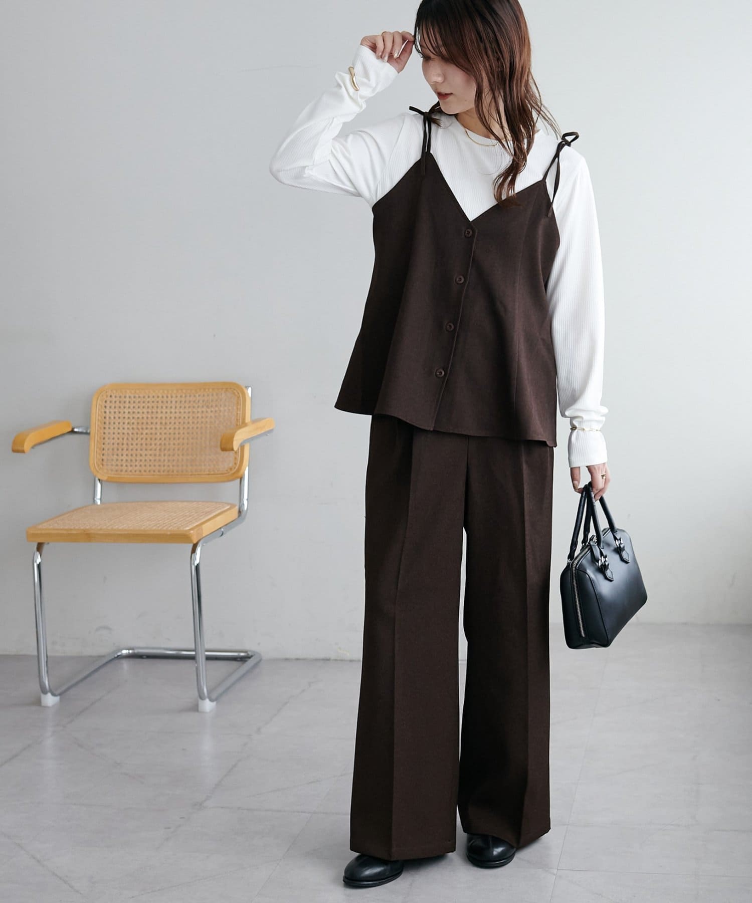 忙しい朝でもコーデに迷わない、嬉しいロンT・ビスチェ・パンツの3点セット。