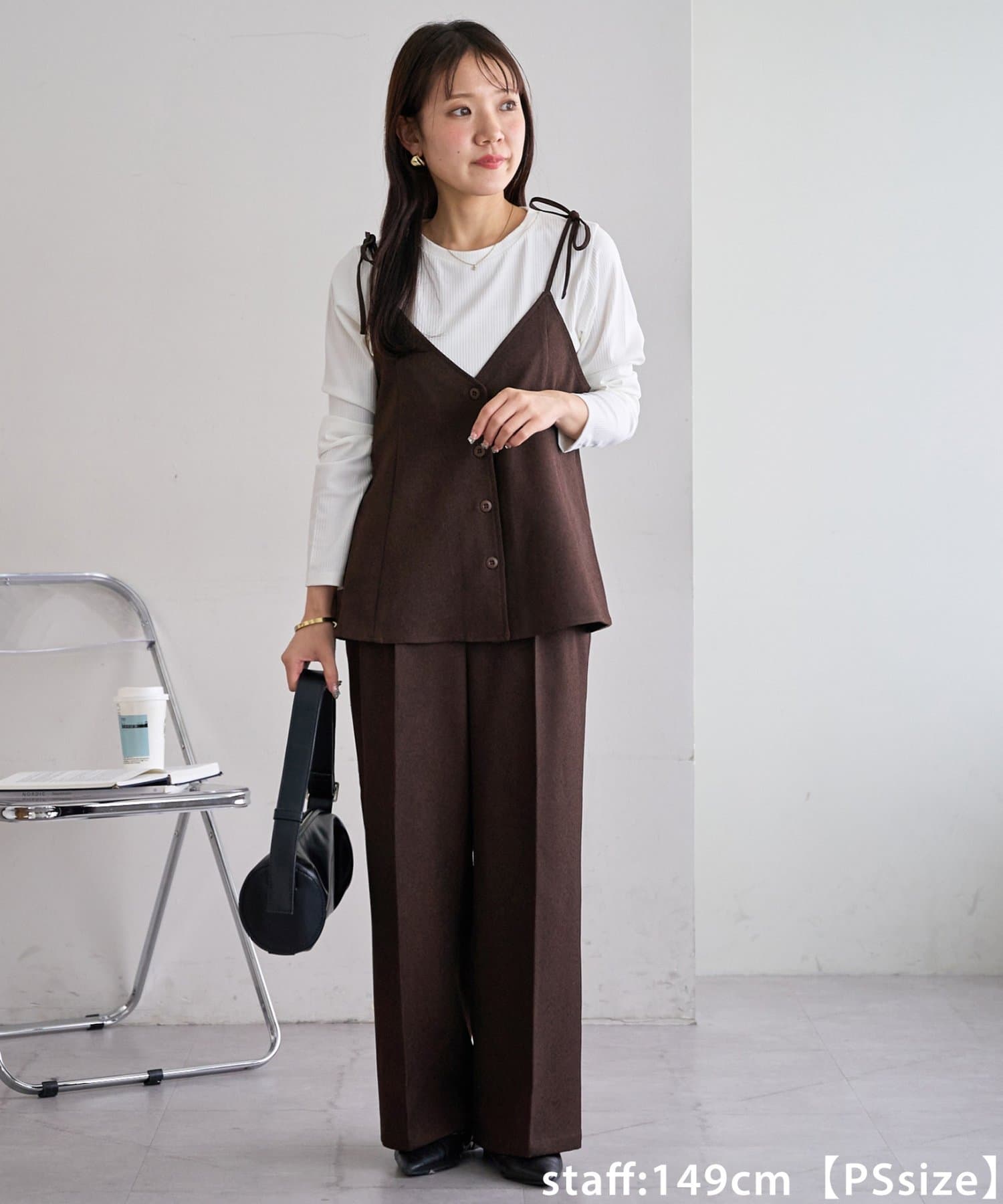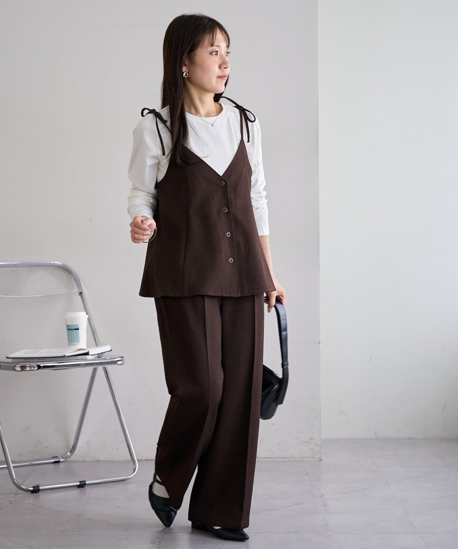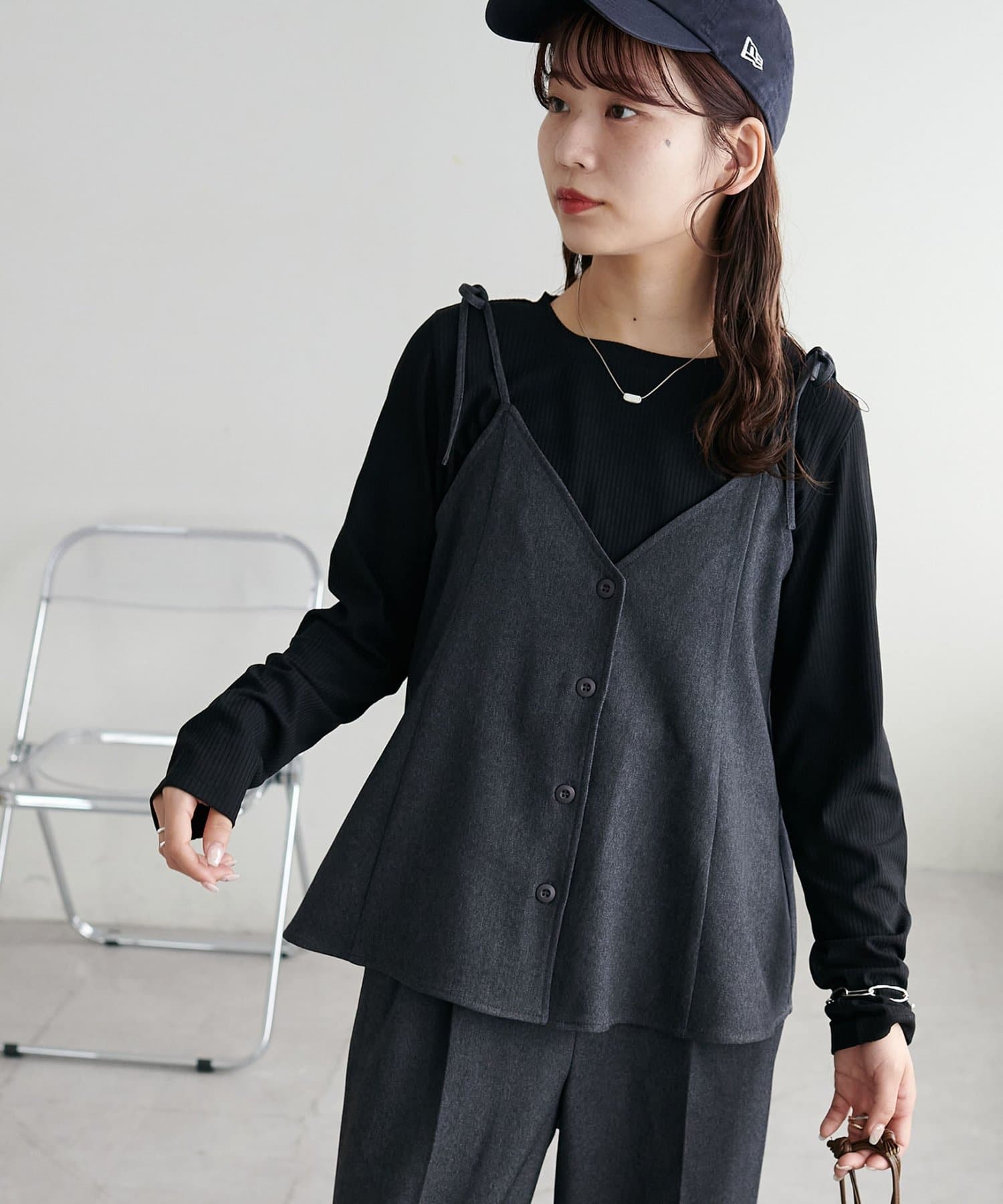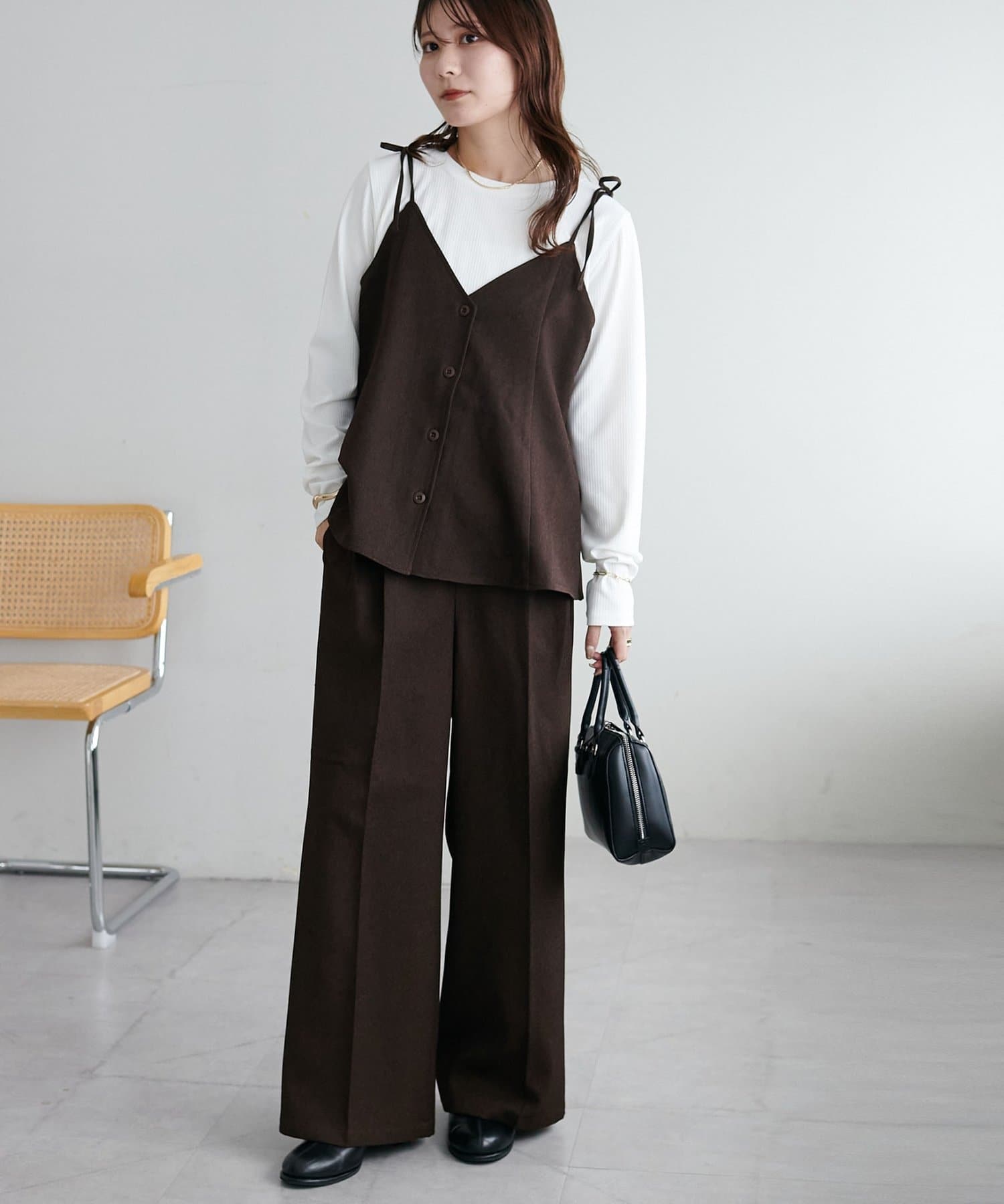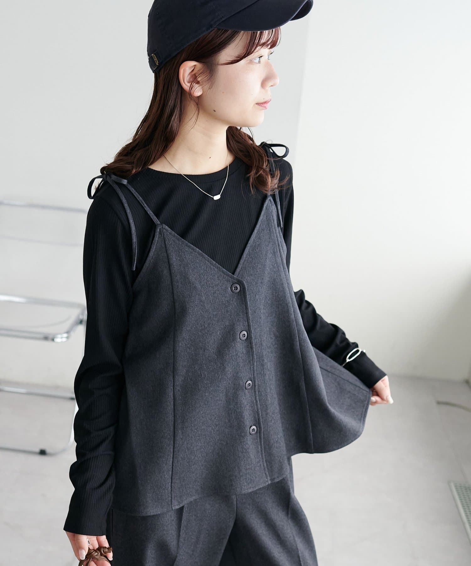 忙しい朝でもコーデに迷わない、嬉しいロンT・ビスチェ・パンツの3点セット。
